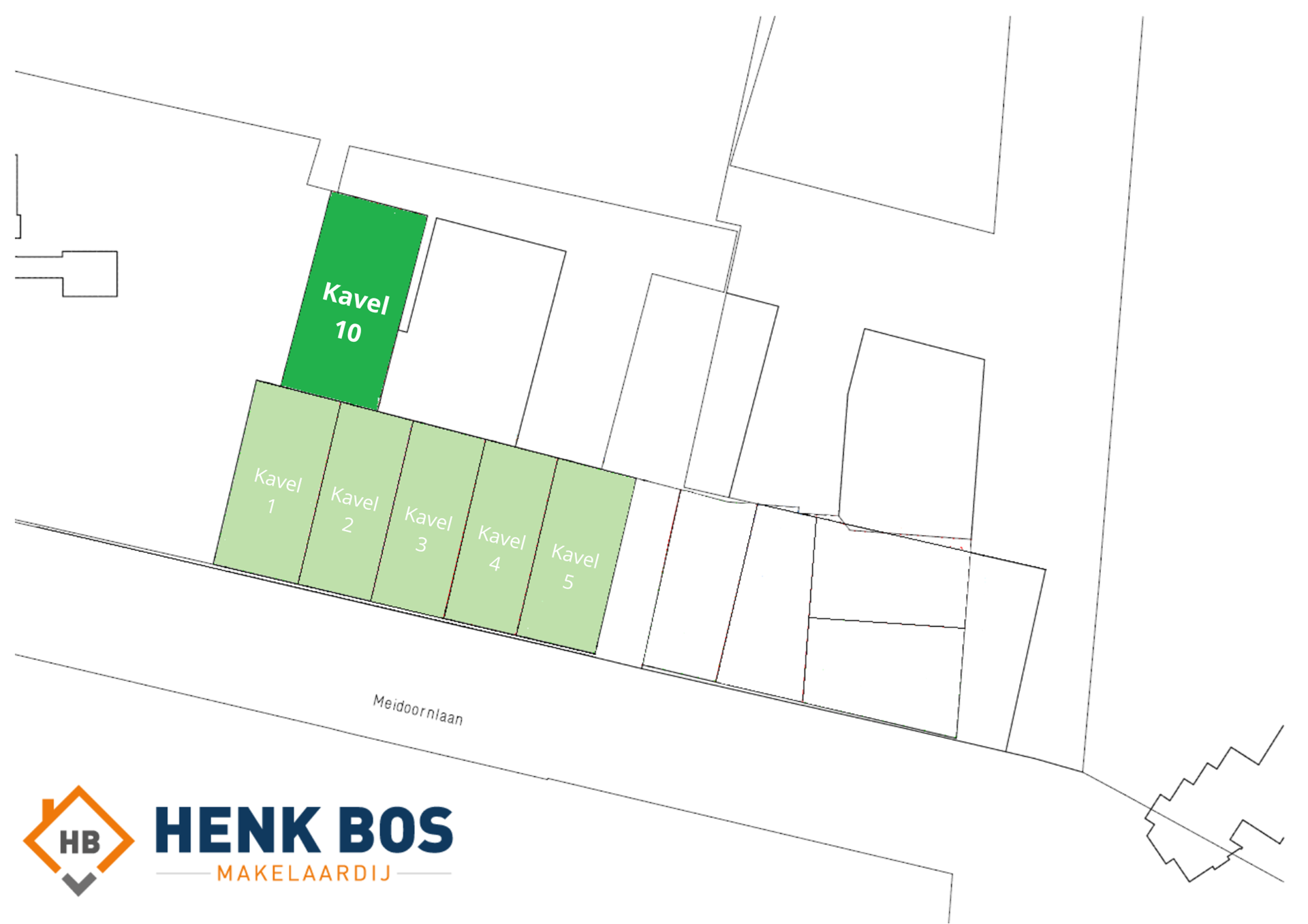 • Toegang tot de kavel via de Meidoornlaan (bouwnummers 1 t/m 5) en Pinksterbloemweide (bouwnummer 10)