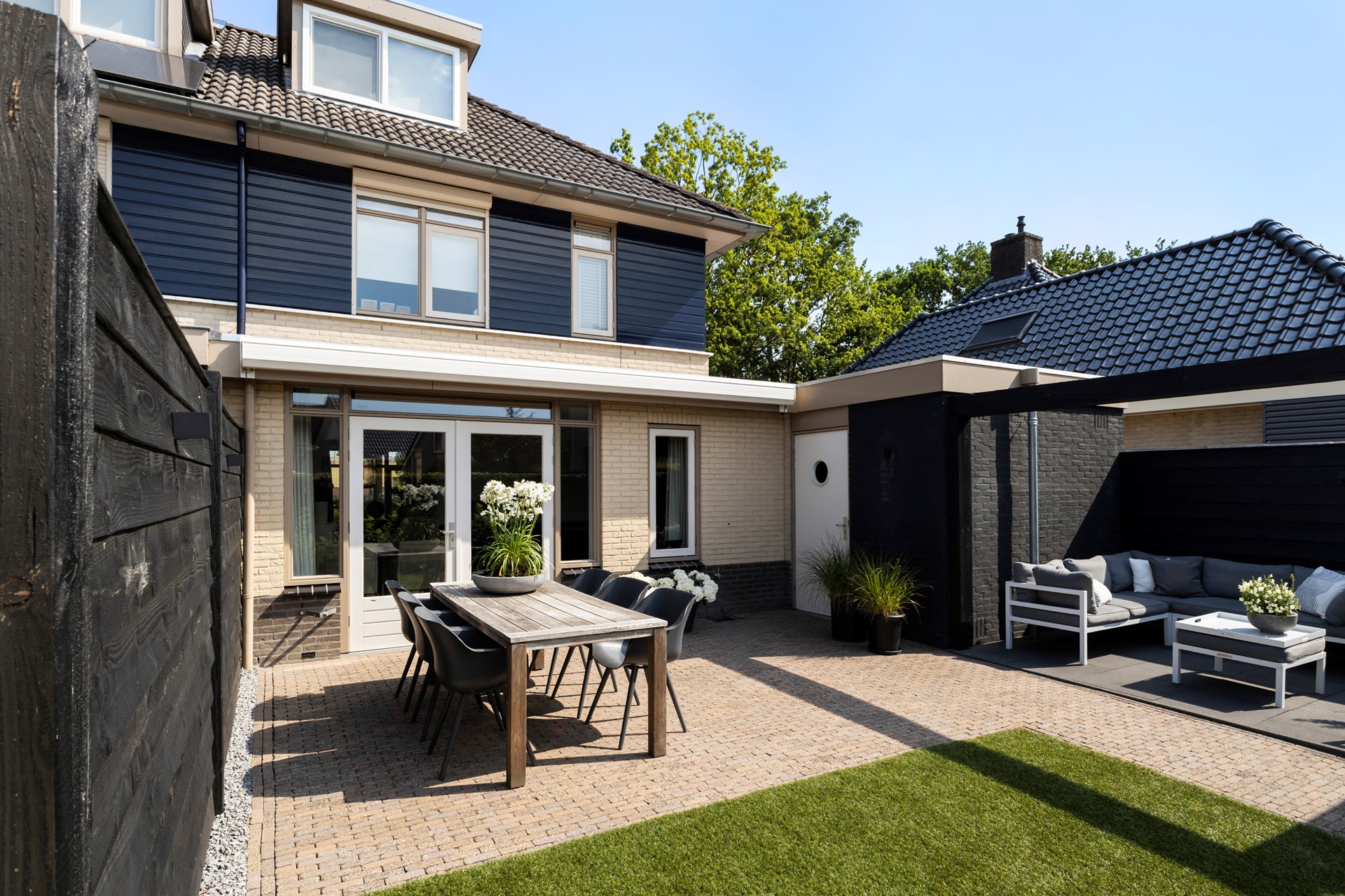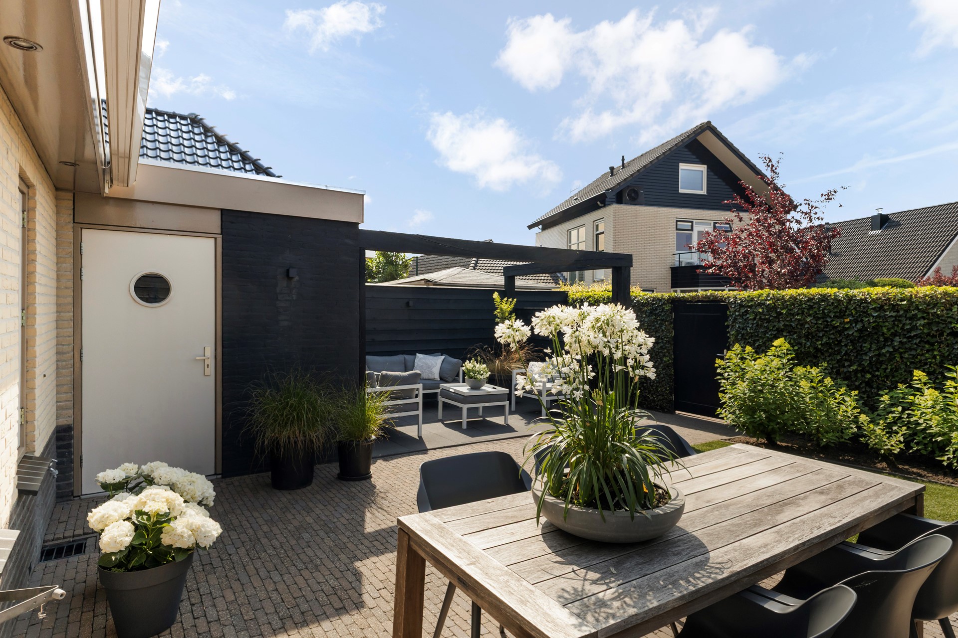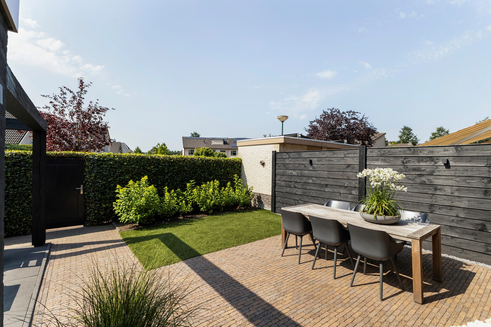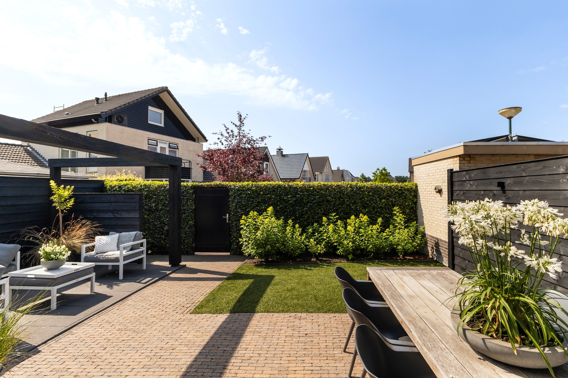 De fraai aangelegde achtertuin is bereikbaar via de openslaande deuren vanuit de keuken, de garage of de achterom. Dankzij de ligging op het zuiden geniet je hier volop van de zon. De tuin is ingericht met een ruim terras, een verzorgd gazon, groene borders en voldoende ruimte voor een comfortabele lounge set – een heerlijke plek om buiten te ontspannen. De aangebouwde garage is een waardevolle toevoeging voor o.a. het bergen van fietsen en op de oprit parkeer je je auto gewoon op eigen terrein. Kortom, een woning die comfort, ruimte en een fijne ligging perfect combineert.