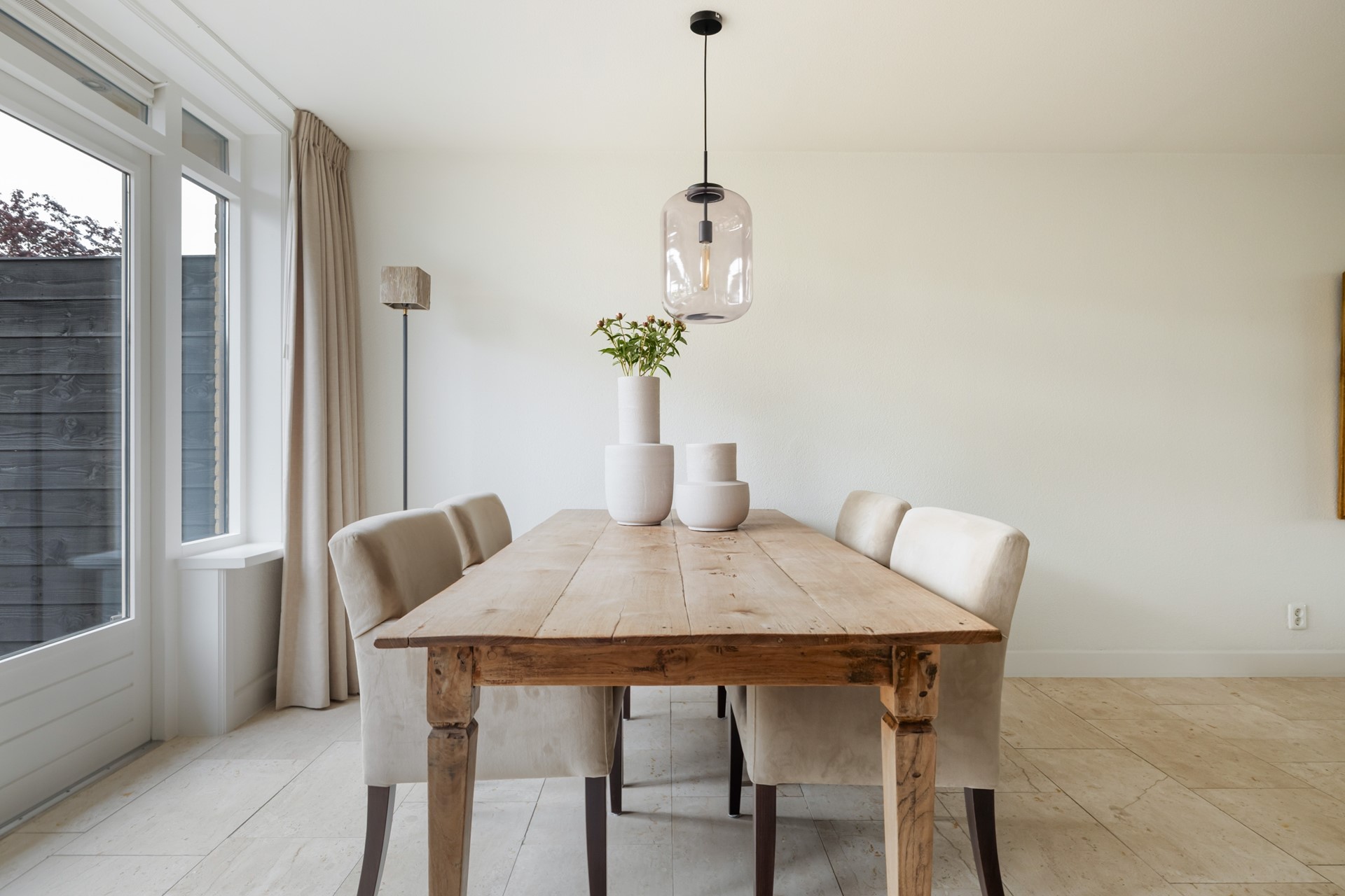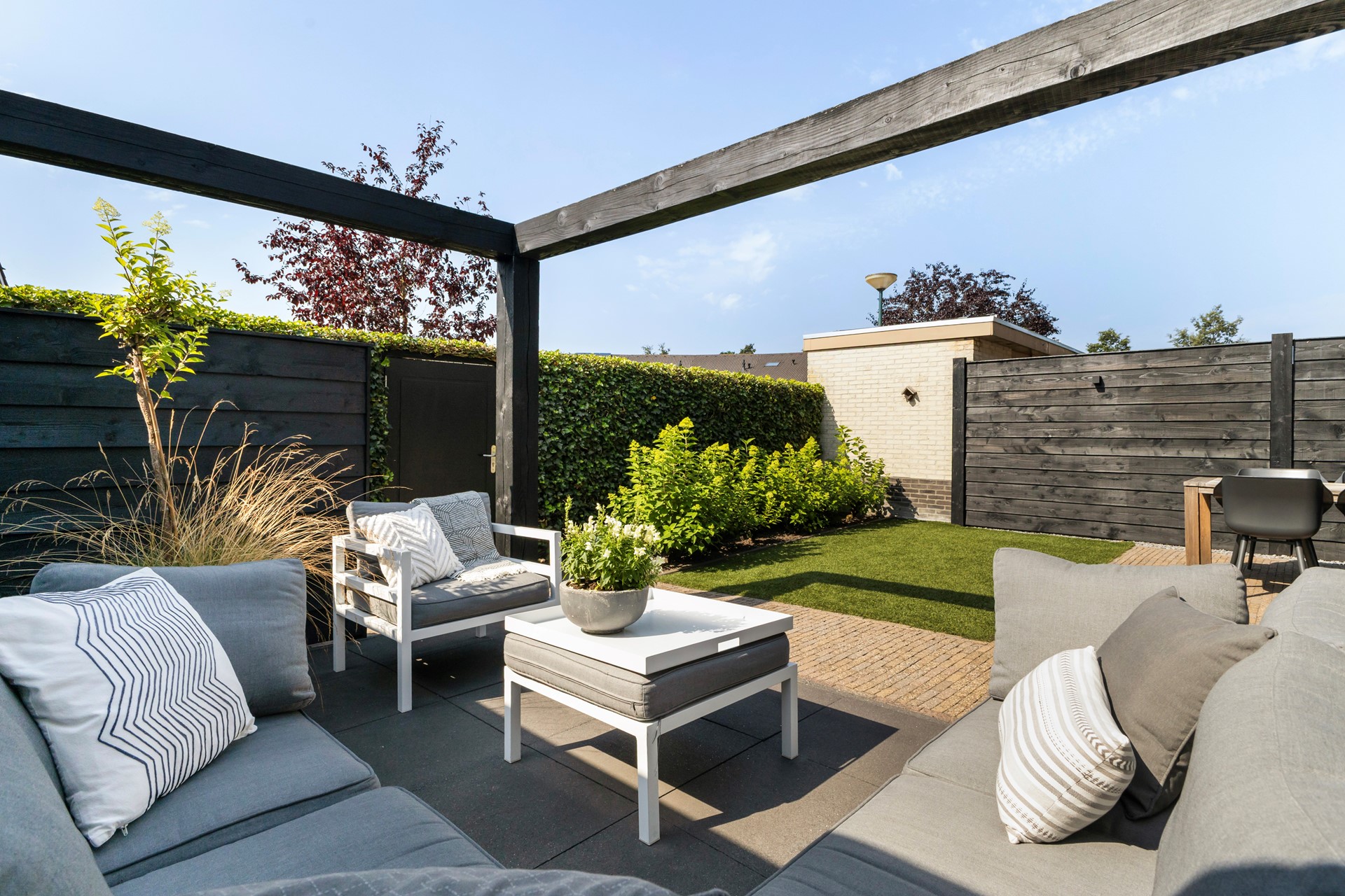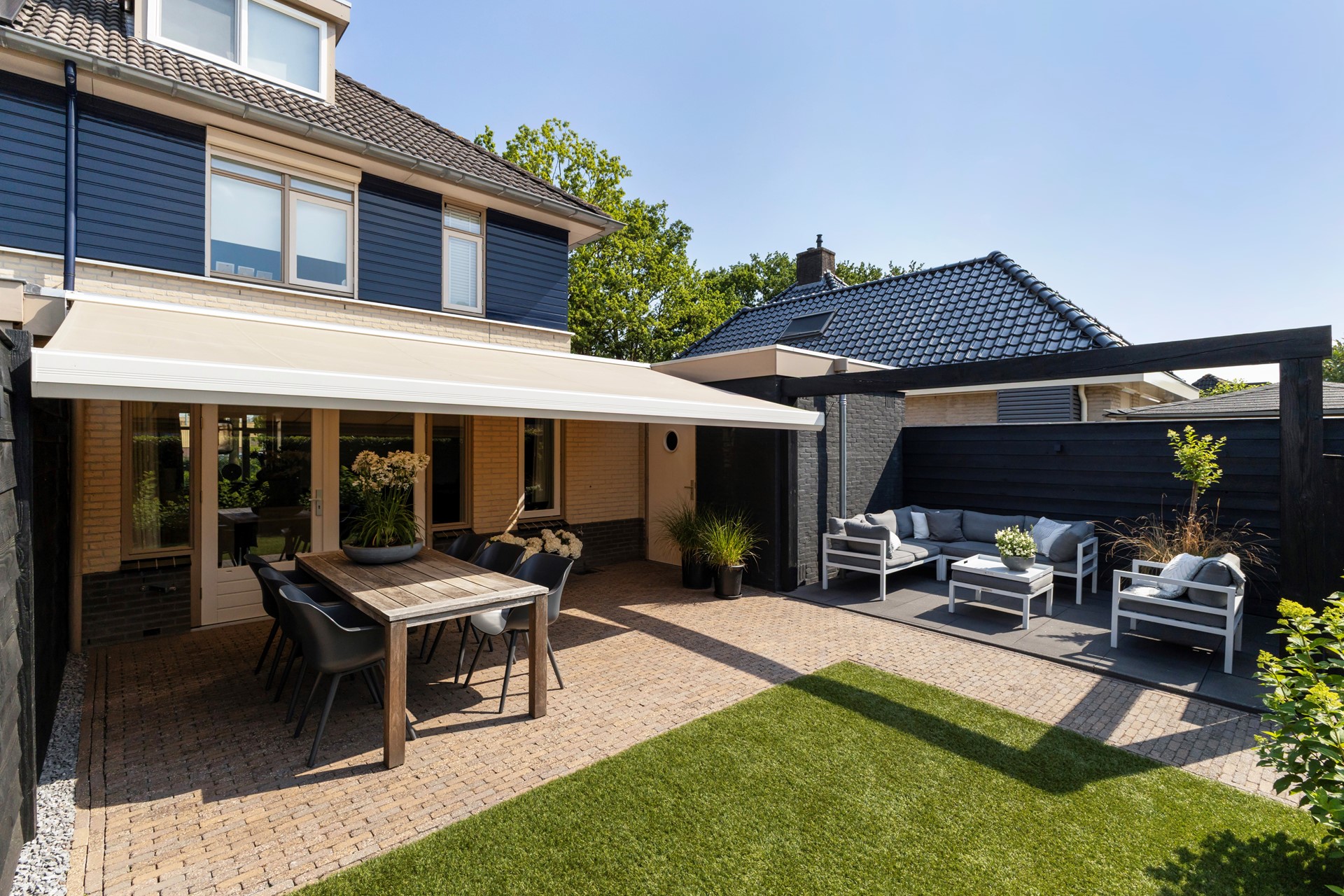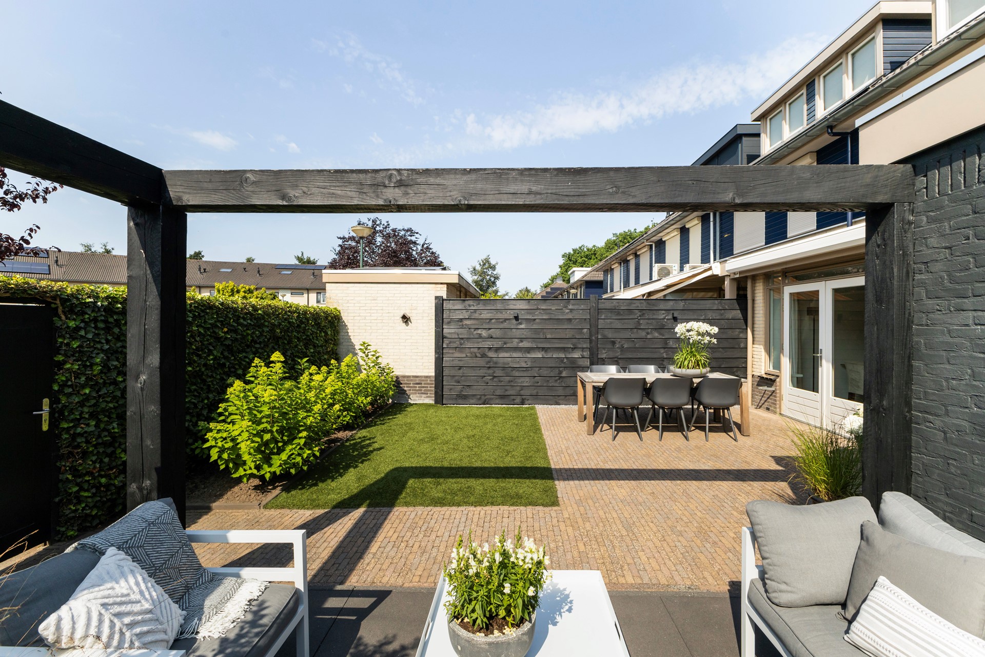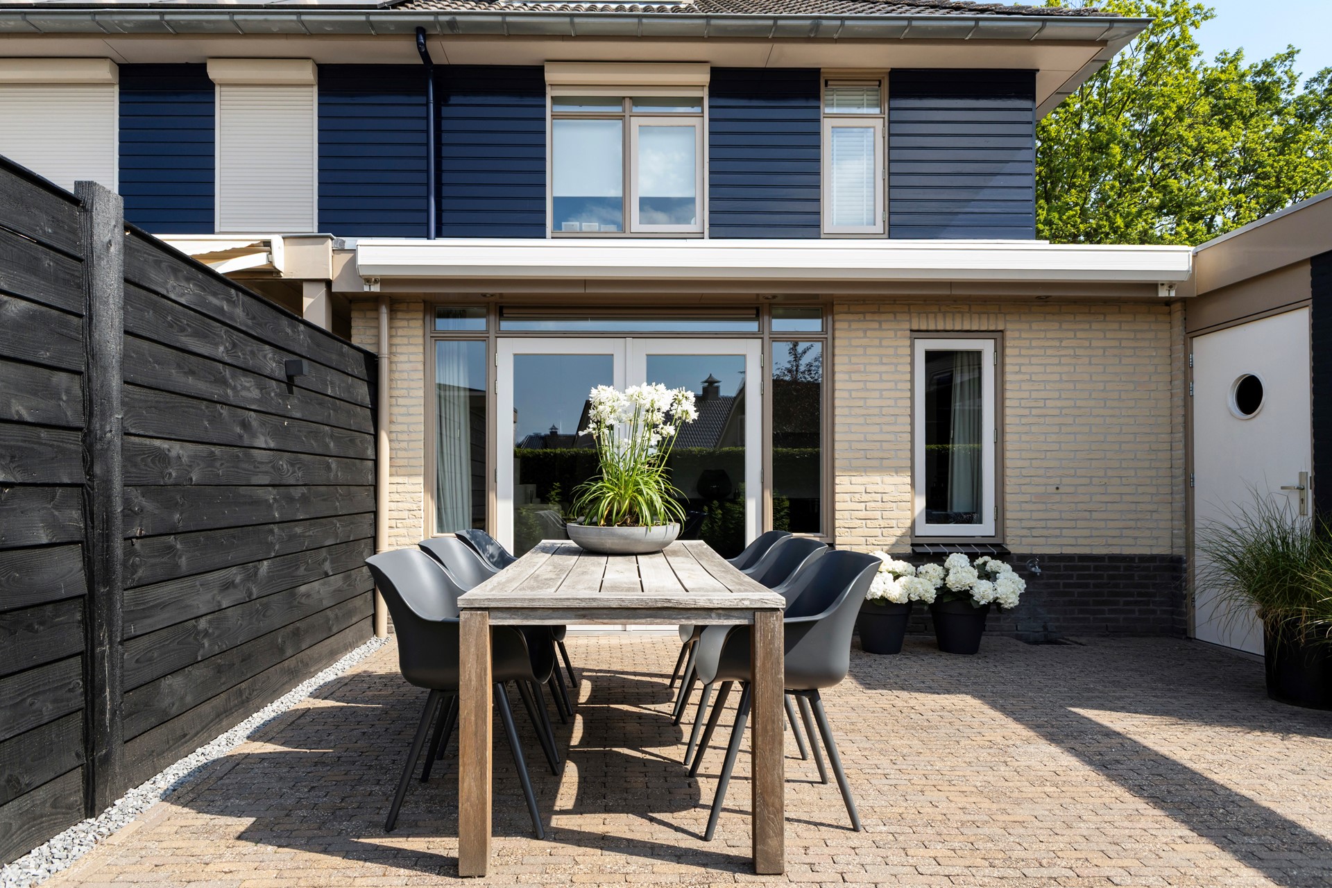 De fraai aangelegde achtertuin is bereikbaar via de openslaande deuren vanuit de keuken, de garage of de achterom. Dankzij de ligging op het zuiden geniet je hier volop van de zon. De tuin is ingericht met een ruim terras, een verzorgd gazon, groene borders en voldoende ruimte voor een comfortabele lounge set – een heerlijke plek om buiten te ontspannen. De aangebouwde garage is een waardevolle toevoeging voor o.a. het bergen van fietsen en op de oprit parkeer je je auto gewoon op eigen terrein. Kortom, een woning die comfort, ruimte en een fijne ligging perfect combineert.