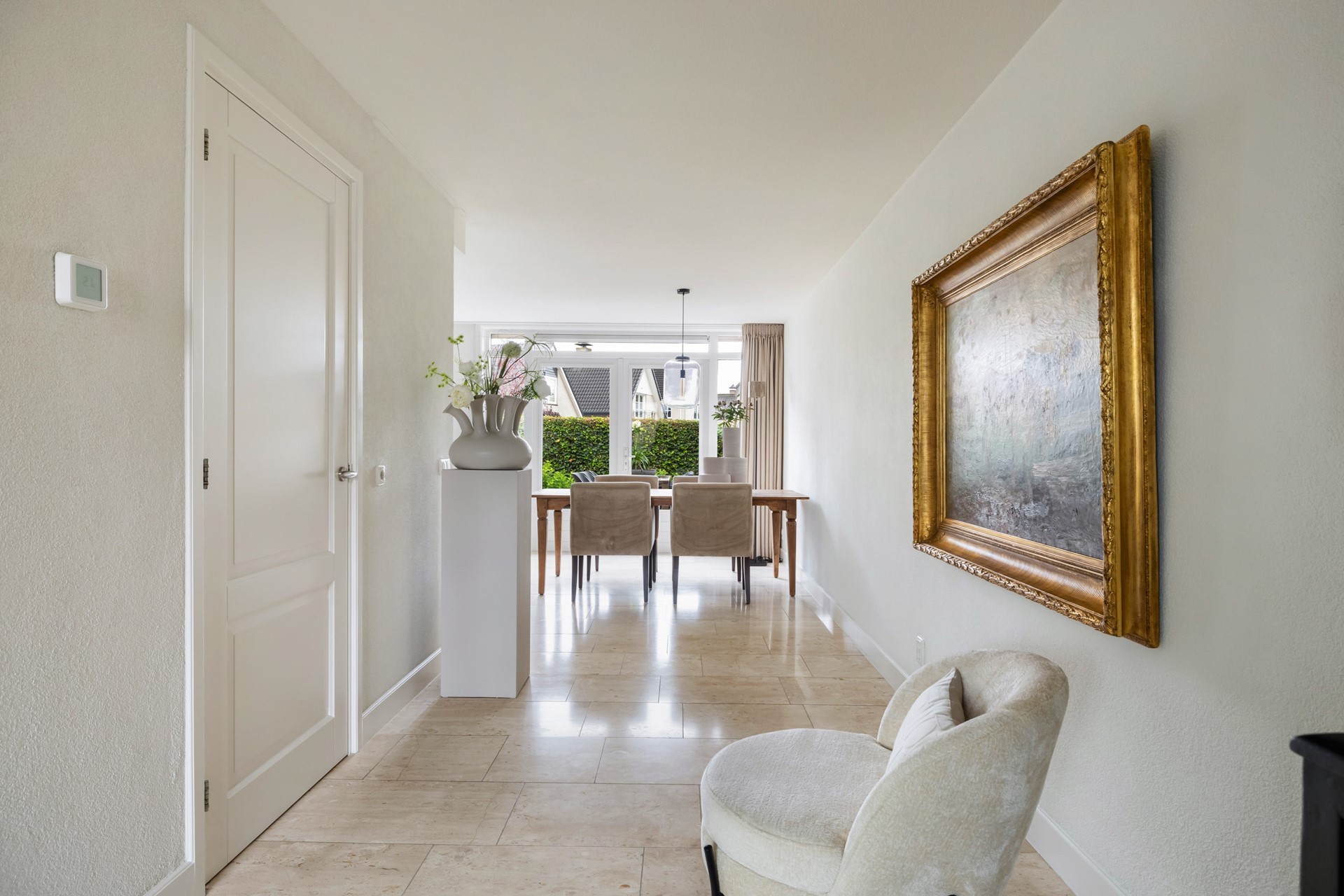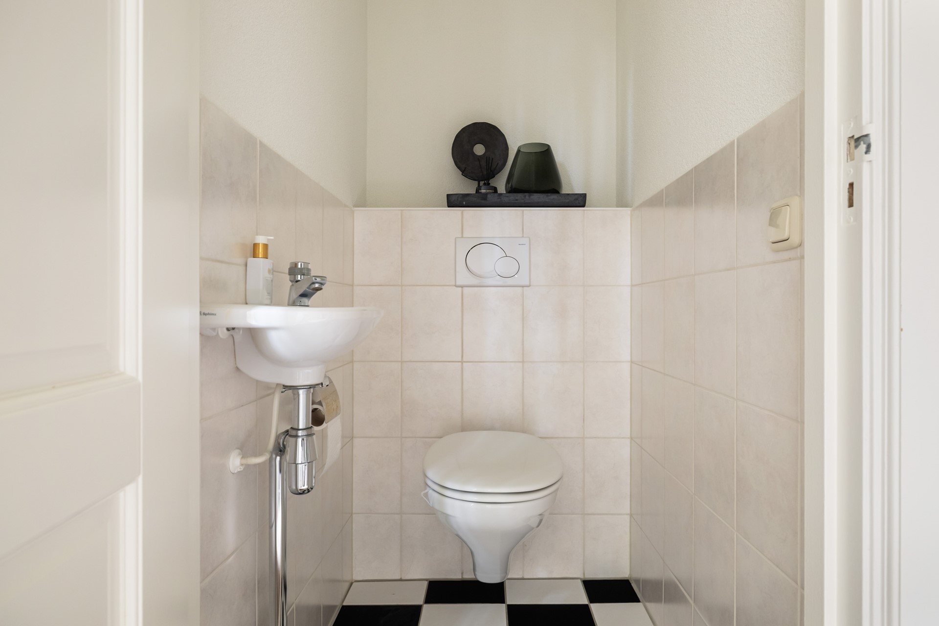 Via de overdekte entree kom je in de hal, die toegang geeft tot het toilet, trapopgang naar de 1e verdieping, praktische trapkast, meterkast (met glasvezelaansluiting) en de woonkamer. Aan de voorzijde van de woning bevindt zich de sfeervolle L-vormige woonkamer met een karakteristieke erker, waardoor je geniet van prettig lichtinval. De woning is in 2008 aan de achterzijde uitgebouwd, waar de moderne keuken (2020) is gesitueerd. De keuken is voorzien van een schiereiland en diverse inbouwapparatuur, waaronder een koelkast, combi-oven/magnetron, vaatwasser, inductiekookplaat, afzuigkap en Quooker. Er is voldoende ruimte voor een royale eethoek die naadloos aansluit op het terras, bereikbaar via openslaande deuren. Vanuit de keuken is ook de garage bereikbaar, waar een vaste schuifwand extra opbergruimte creëert. De gehele begane grond is afgewerkt met een plavuizenvloer en voorzien van comfortabele vloerverwarming.