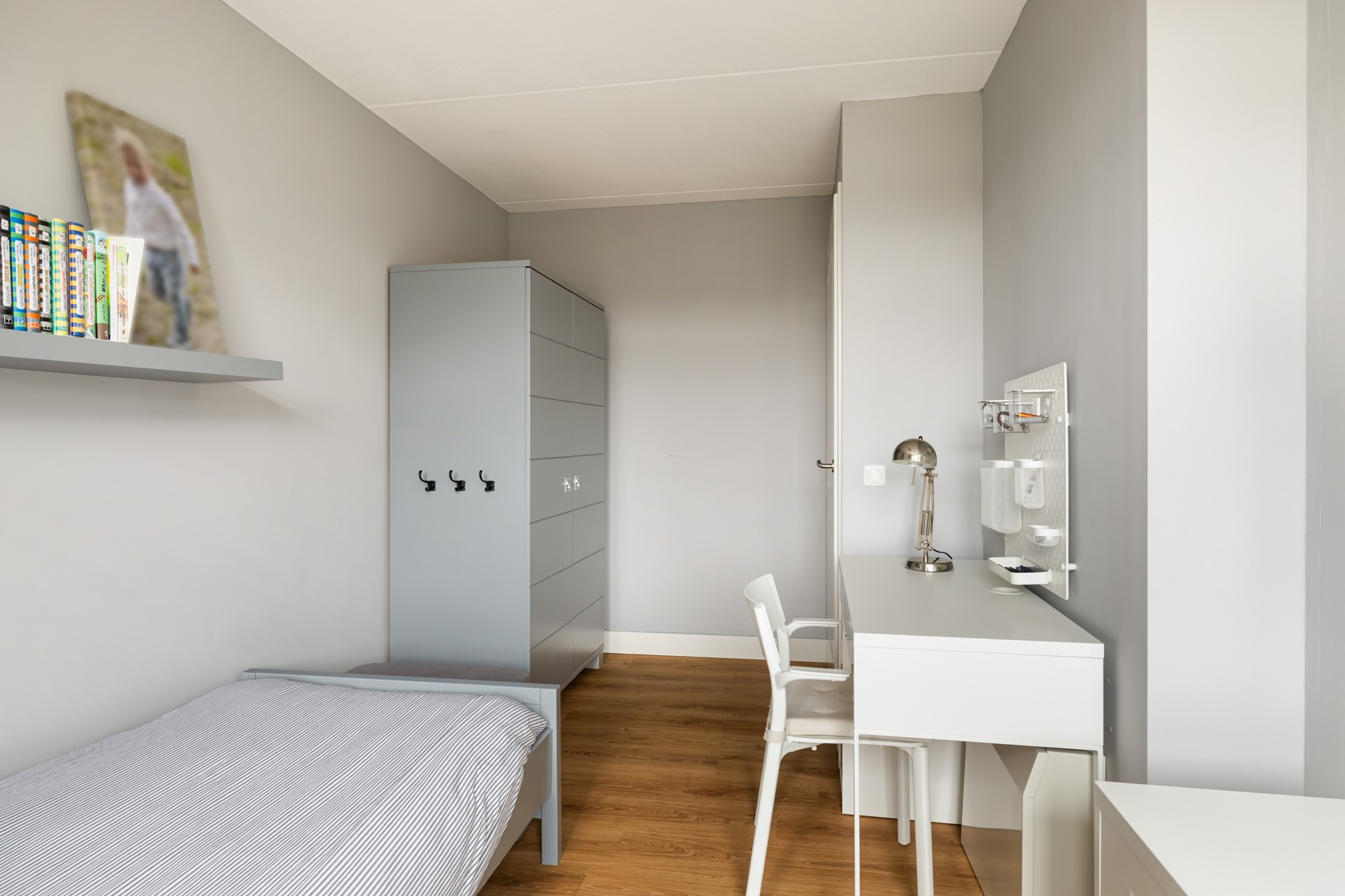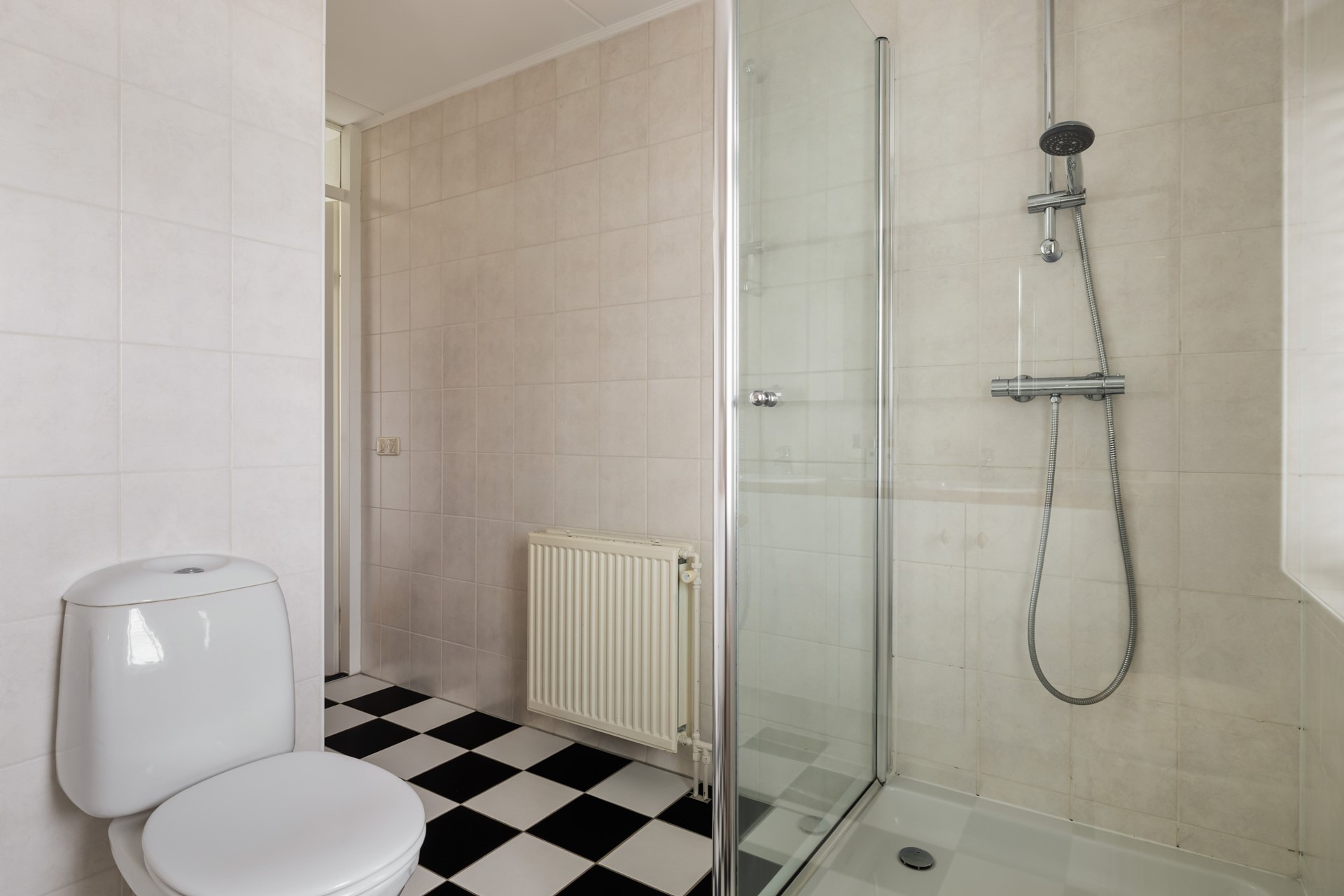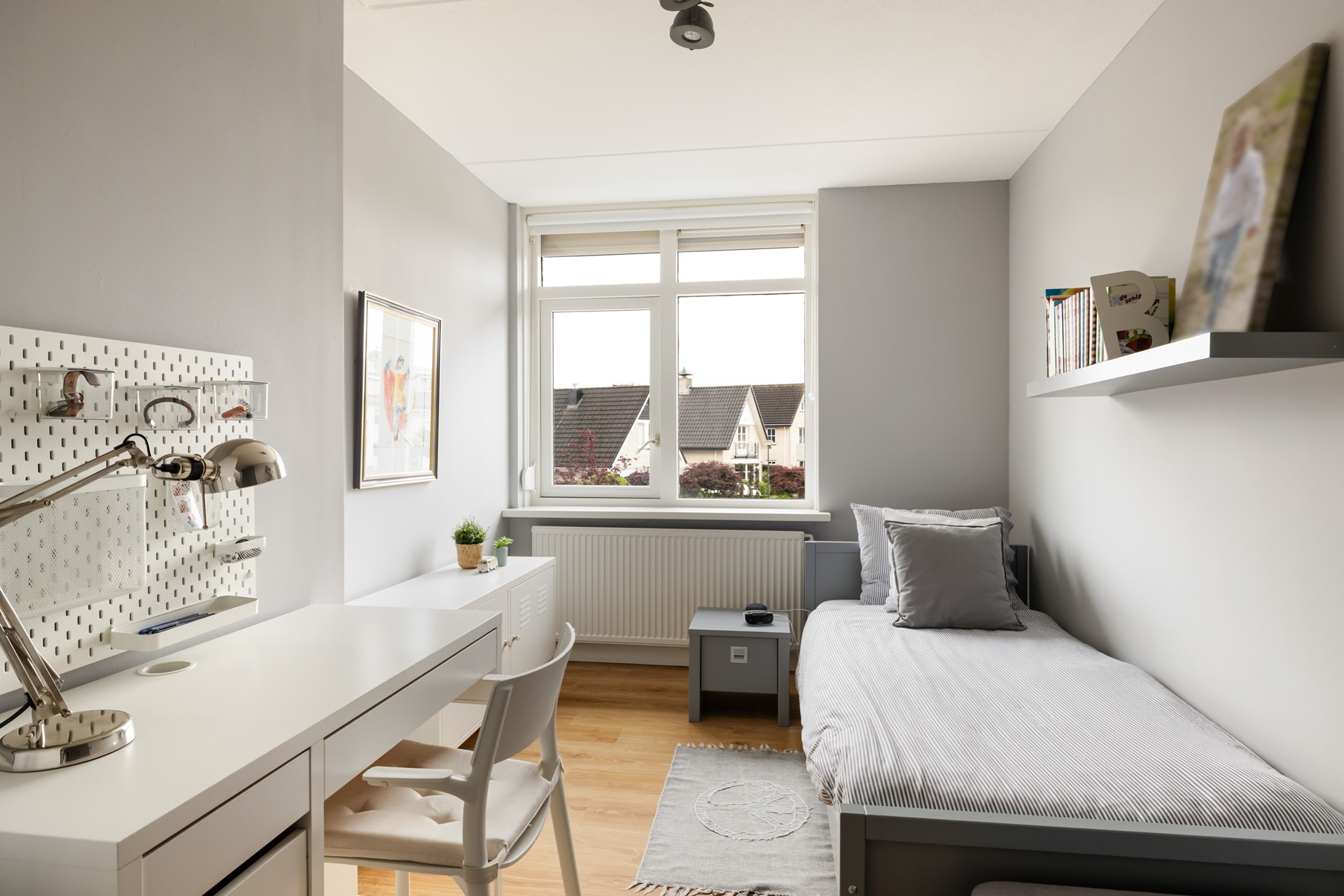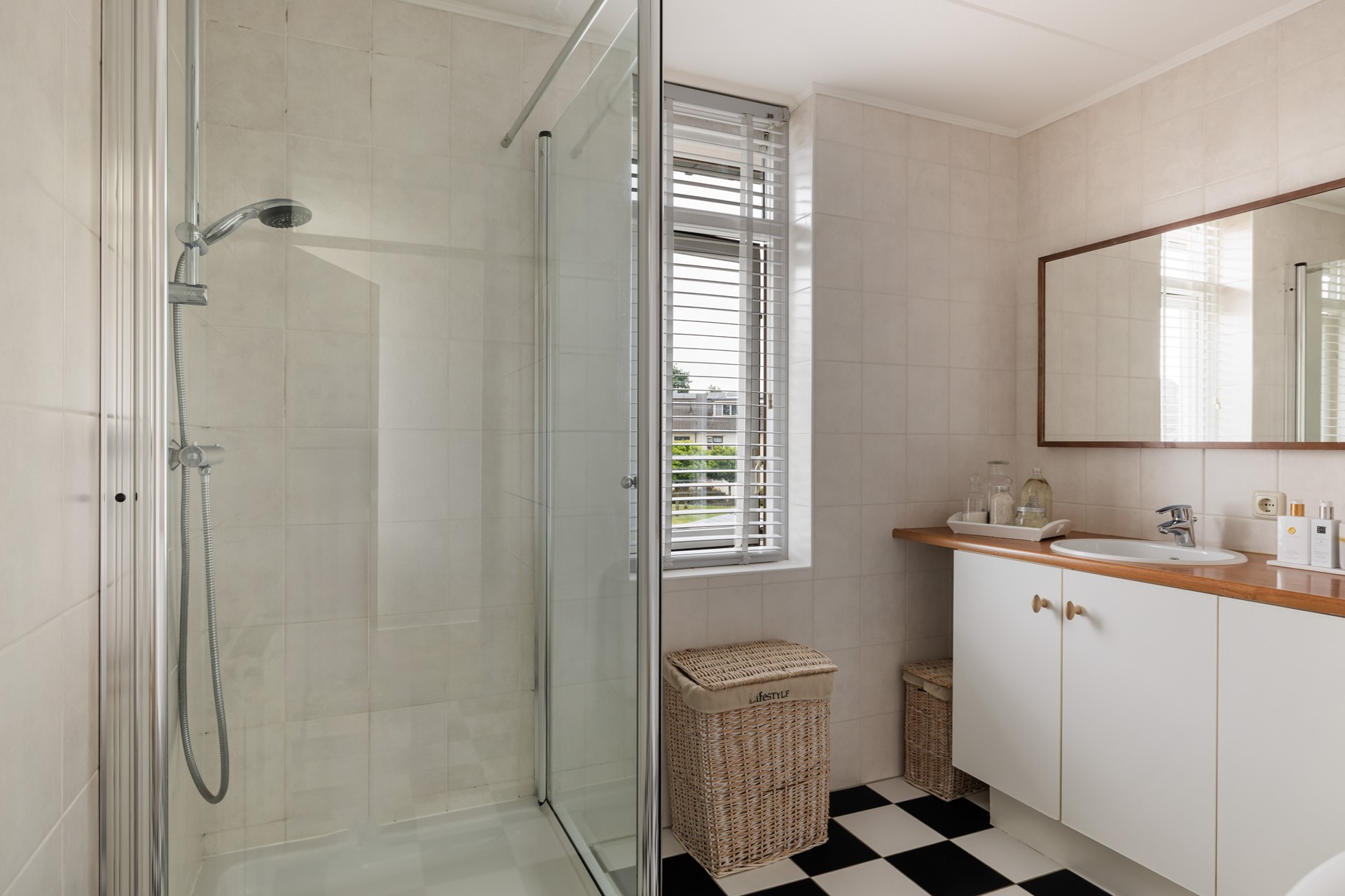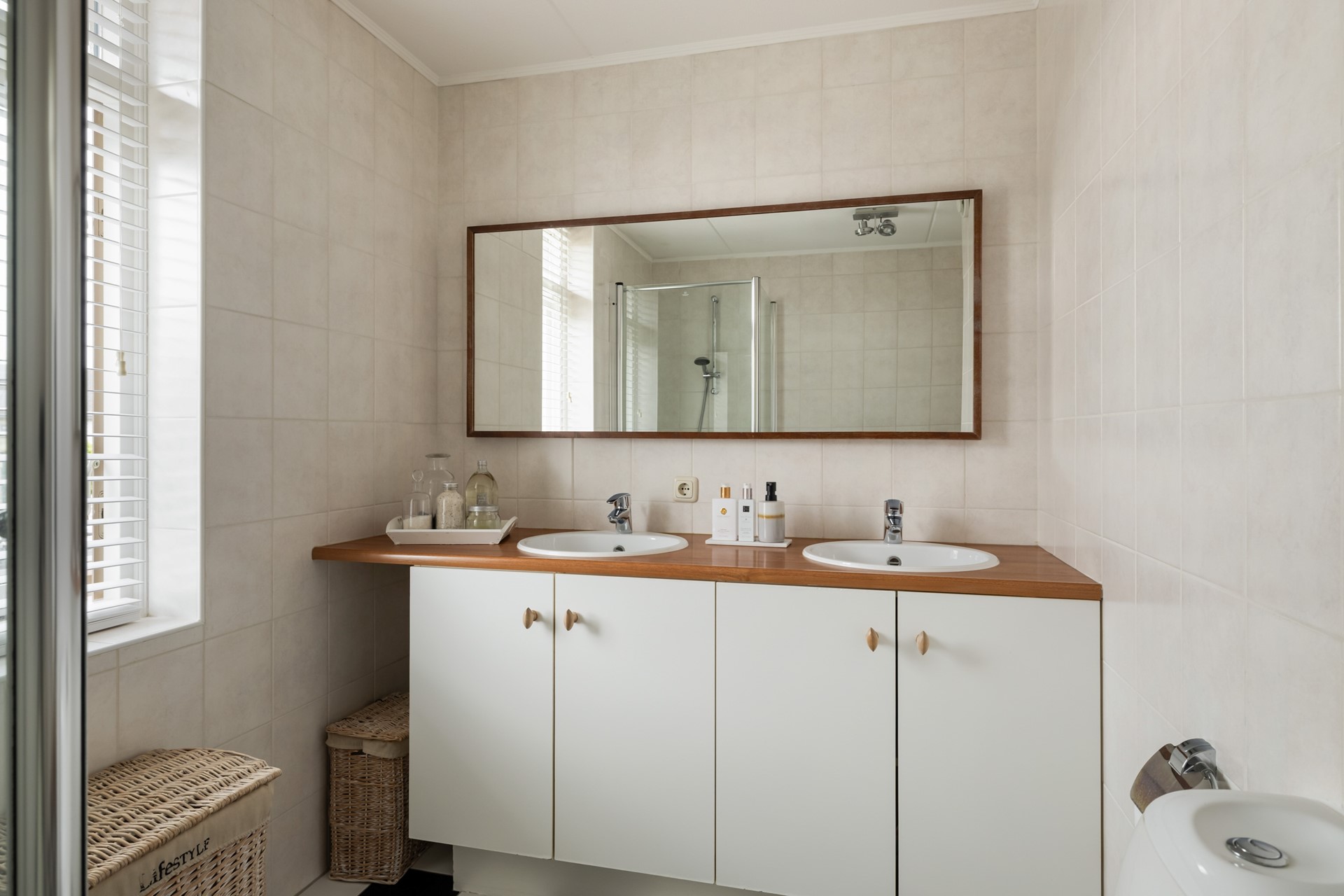 Via de vaste trap bereik je de overloop van de 1e verdieping. Vanuit hier heb je toegang tot drie keurig afgewerkte slaapkamers en de badkamer. De badkamer is uitgerust met douchecabine, dubbel wastafelmeubel, toilet en comfortabele vloerverwarming. Twee van de slaapkamers liggen aan de voorzijde van de woning, waarvan de ouderslaapkamer, en één aan de achterzijde. Alle kamers zijn voorzien van een nette laminaatvloer.