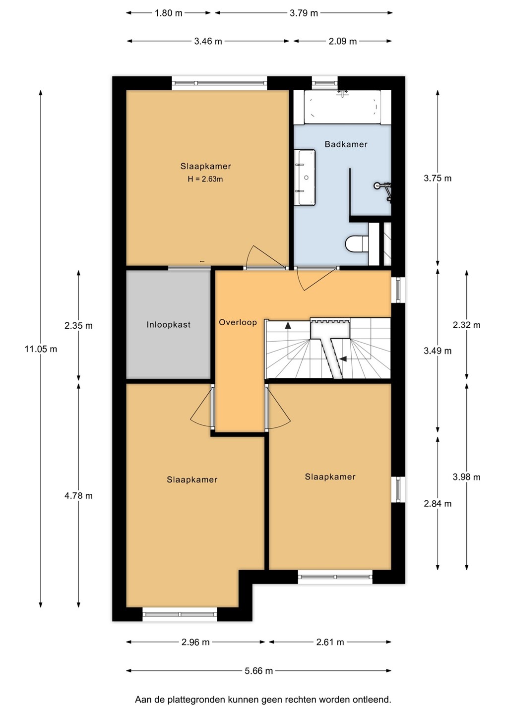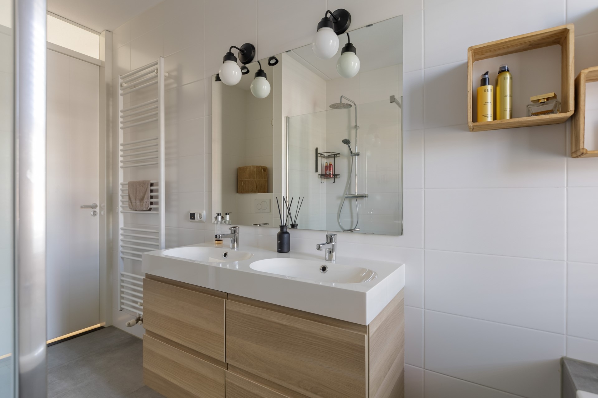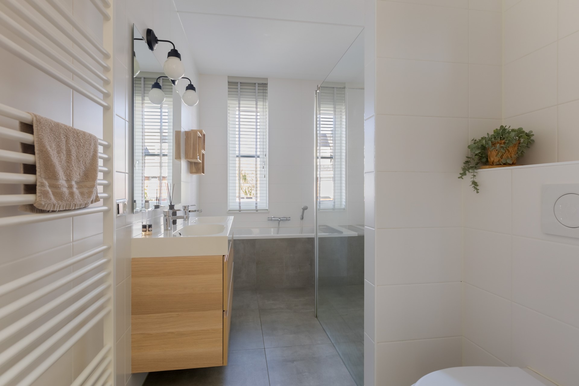Via de overloop bereik je 3 slaapkamers en de badkamer. De geheel betegelde badkamer is voorzien van een ruime inloopdouche, ligbad, dubbele wastafelmeubel en een toilet. Zowel de badkamer als de aangrenzende ouderslaapkamer liggen aan de achterzijde van de woning. De ouderslaapkamer beschikt over een royale inloopkast. Aan de voorzijde bevinden zich de twee overige slaapkamers. Alle kamers op deze verdieping zijn afgewerkt met een nette laminaatvloer.