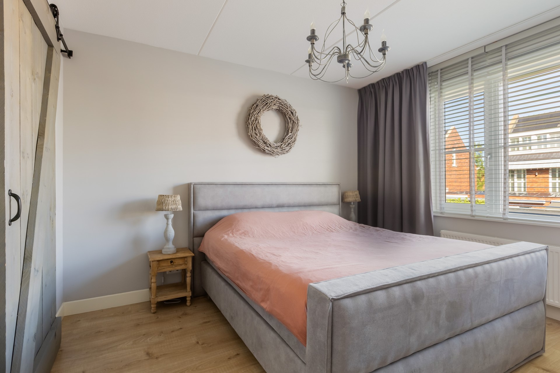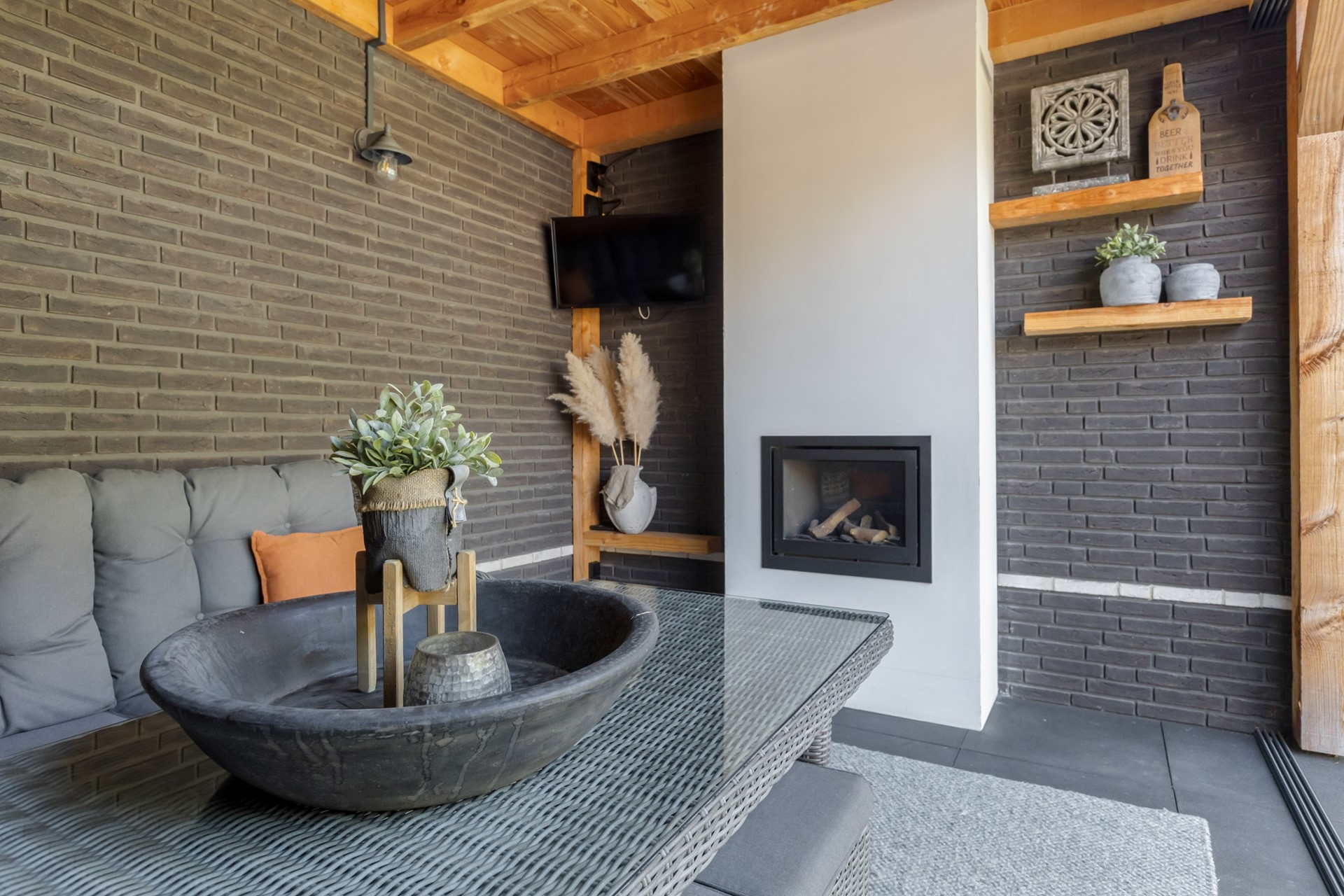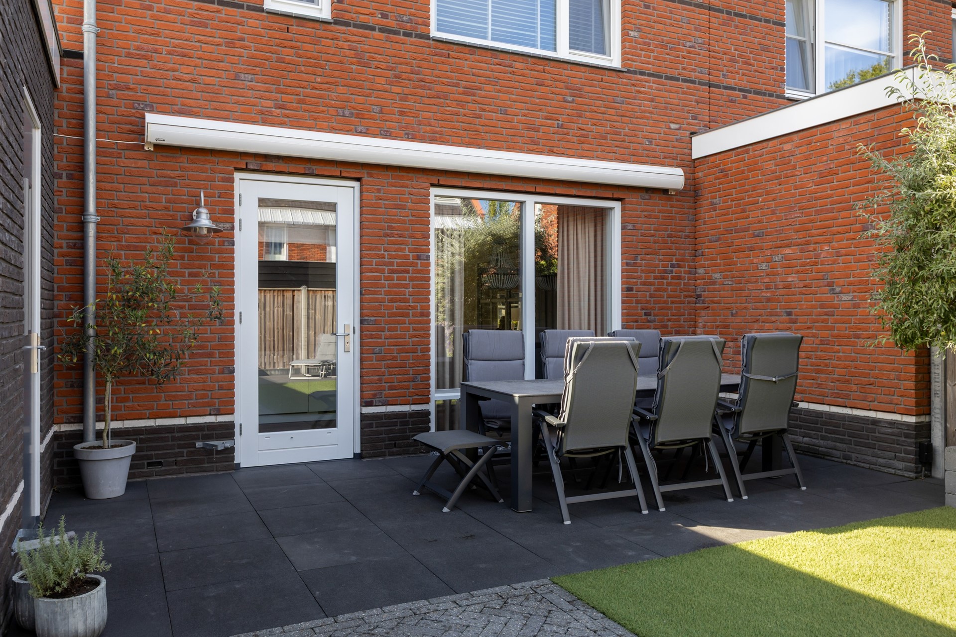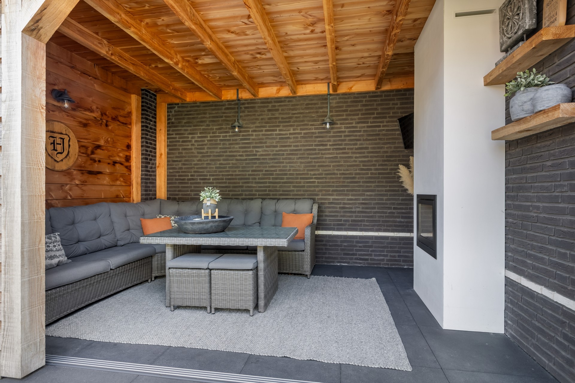 De onderhoudsvriendelijke achtertuin is oostelijk gelegen en ingericht met (sier)bestrating, groene borders en een gazon. In de veranda met gaskachel is een fijne plek gecreëerd om optimaal van het buitenleven te genieten. In de voormalige garage is een kapsalon ingericht, compleet met vloerverwarming, eigen cv-installatie en wateraansluiting, waardoor deze ruimte ook uitstekend geschikt is als thuiswerkplek of hobbyruimte. Daarnaast is er een aparte garage voor extra bergruimte. De tuin is zowel via deze garage als via de achterpoort bereikbaar. Naast een eigen oprit is er in de wijk ook voldoende parkeergelegenheid. Aan de overzijde van de woning is er tot slot een fijne speelruimte voor kinderen.