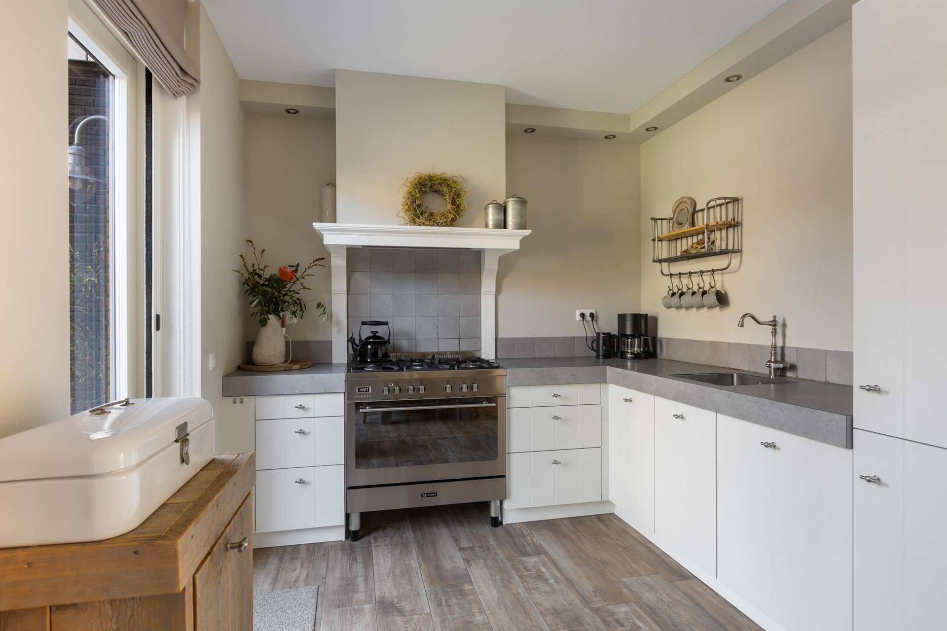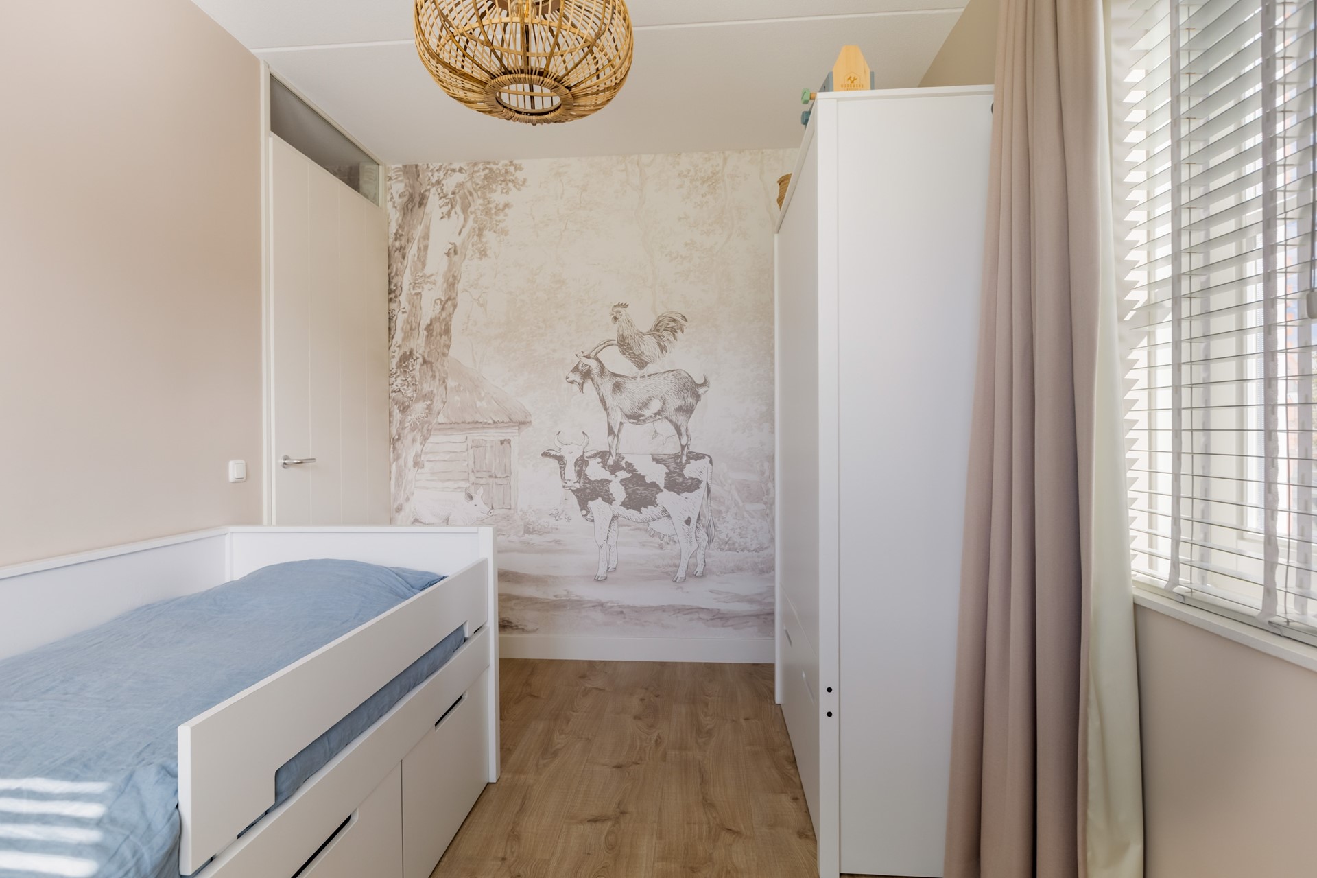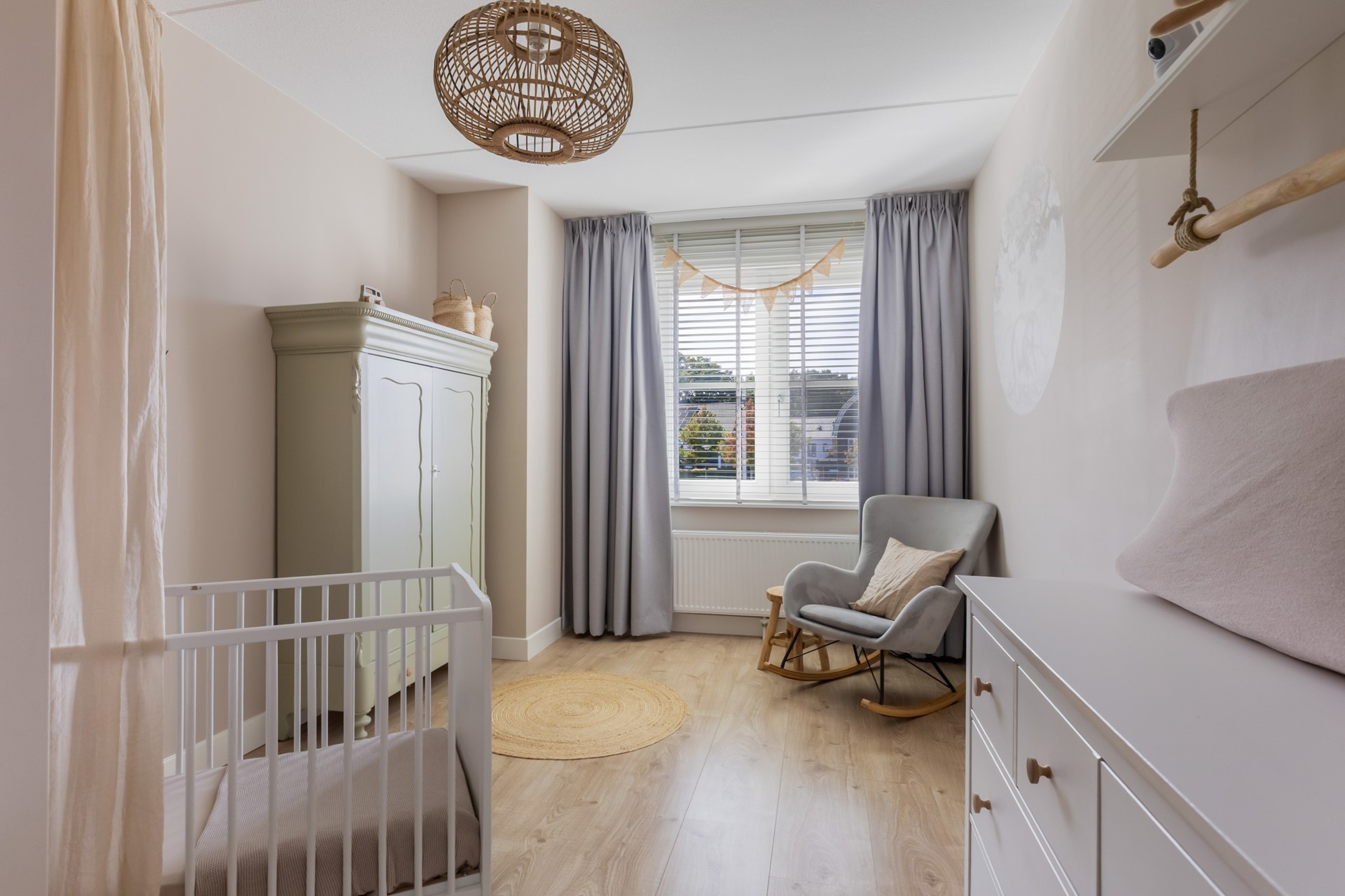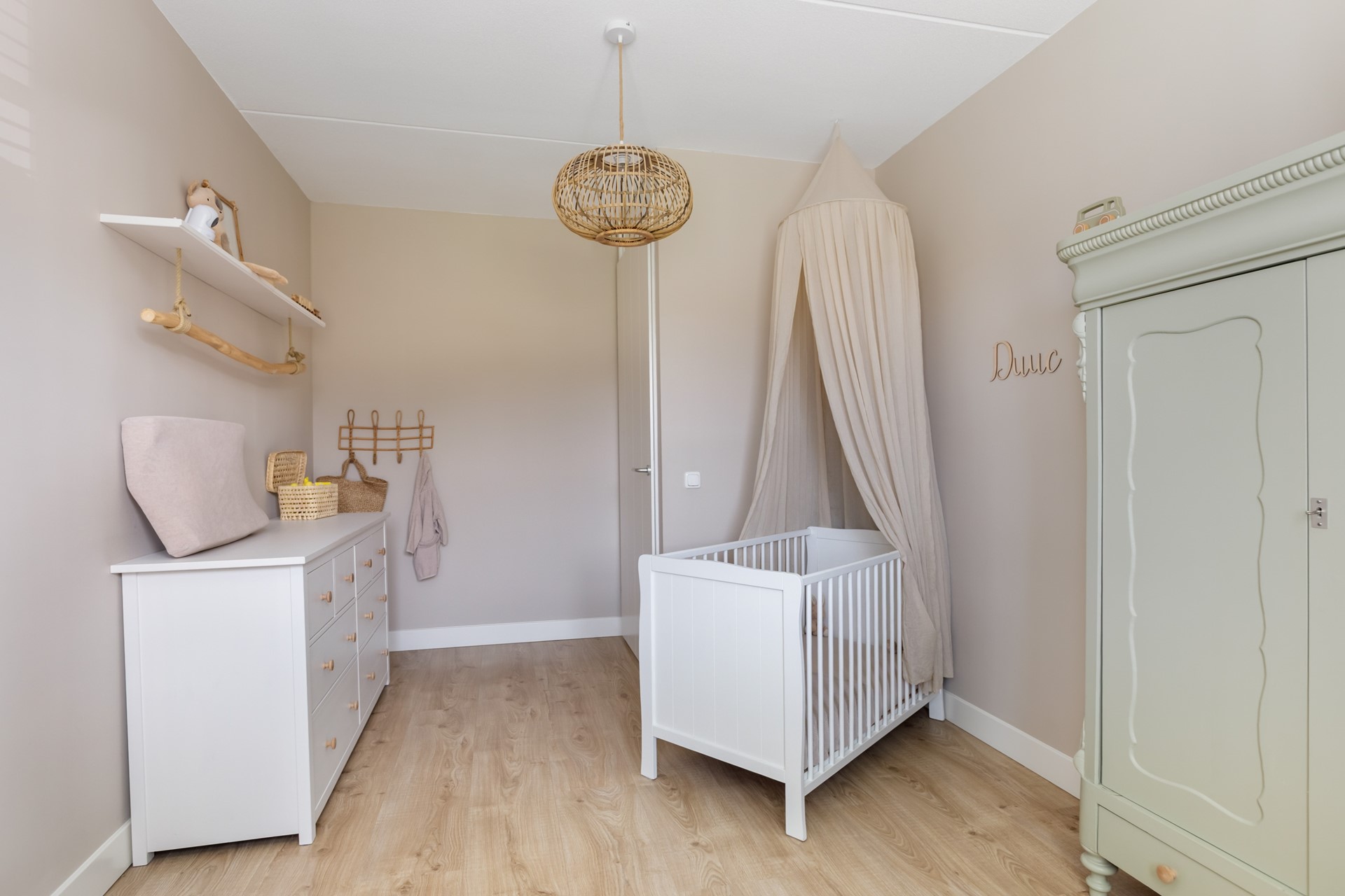 De onderhoudsvriendelijke achtertuin is oostelijk gelegen en ingericht met (sier)bestrating, groene borders en een gazon. In de veranda met gaskachel is een fijne plek gecreëerd om optimaal van het buitenleven te genieten. In de voormalige garage is een kapsalon ingericht, compleet met vloerverwarming, eigen cv-installatie en wateraansluiting, waardoor deze ruimte ook uitstekend geschikt is als thuiswerkplek of hobbyruimte. Daarnaast is er een aparte garage voor extra bergruimte. De tuin is zowel via deze garage als via de achterpoort bereikbaar. Naast een eigen oprit is er in de wijk ook voldoende parkeergelegenheid. Aan de overzijde van de woning is er tot slot een fijne speelruimte voor kinderen.