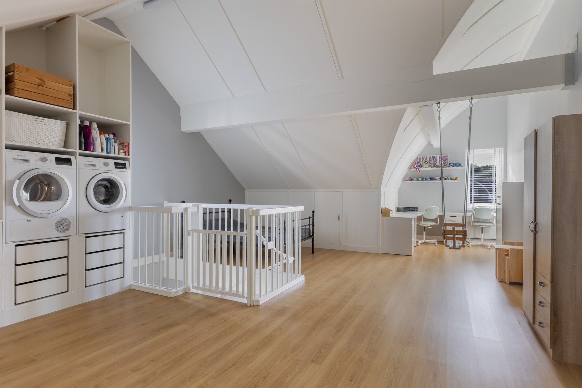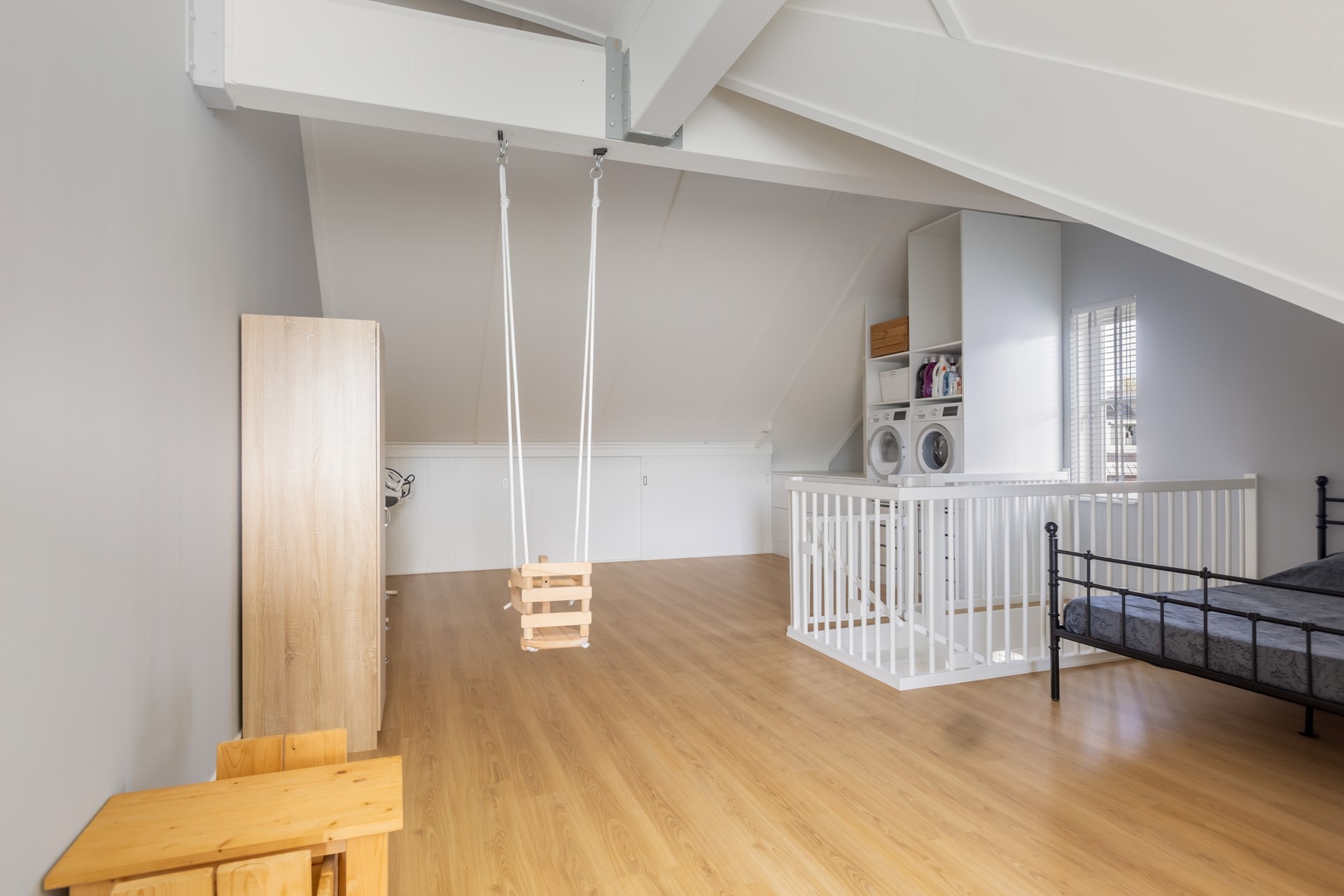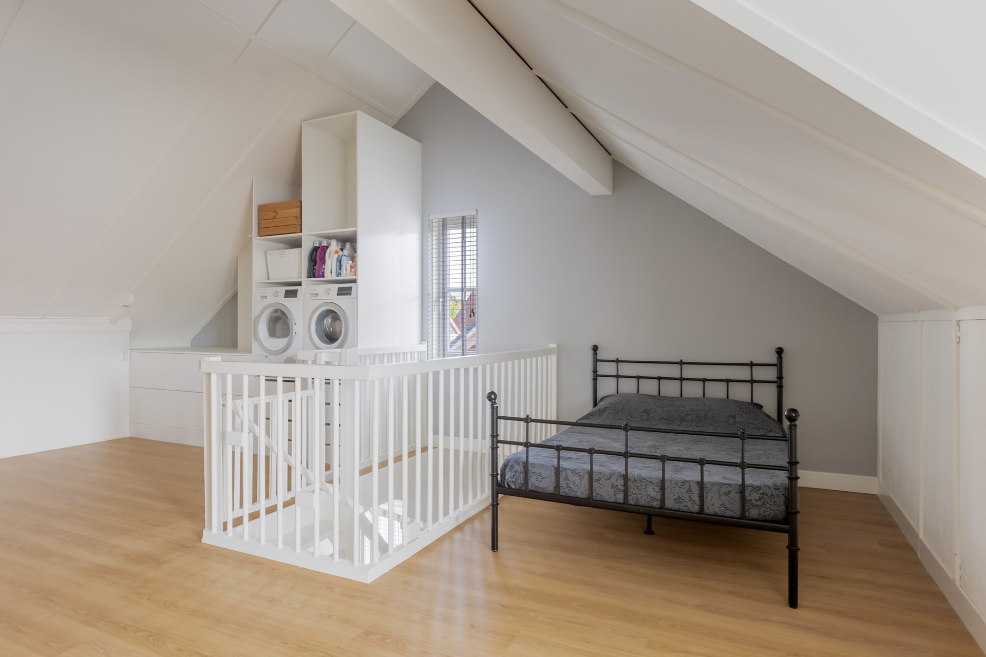 Via een vaste trap bereik je de royale zolderverdieping. Achter de knieschotten is volop bergruimte gecreëerd. Op deze verdieping vind je tevens de cv-installatie (Intergas, 2017) en de aansluitingen voor wasmachine en droger. Dankzij ramen in zowel de voor- als zijgevel valt er veel daglicht binnen, waardoor de ruimte zich uitstekend leent voor het realiseren van één of meerdere extra (slaap)kamers.