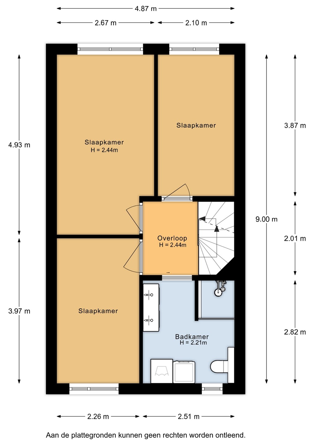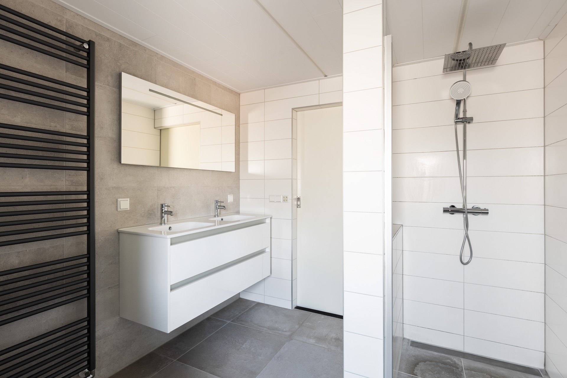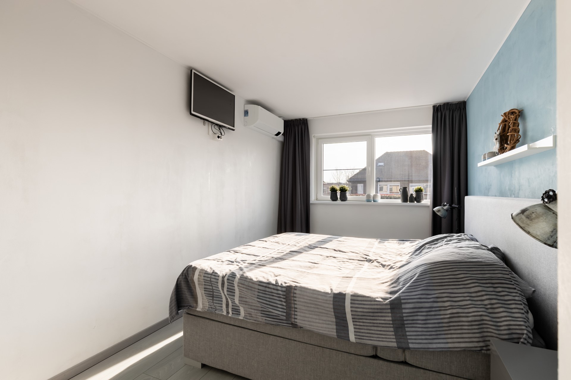Via de trapopgang bereik je de overloop van de eerste verdieping, die toegang geeft tot drie slaapkamers en de badkamer. De moderne badkamer, vernieuwd in 2020 en voorzien van ledstrips, beschikt over een inloopdouche, een dubbel wastafelmeubel, een wandcloset en designradiatoren. Tevens zijn hier de aansluitingen voor de wasmachine en droger gesitueerd. Naast de badkamer bevindt zich een slaapkamer. Aan de achterzijde van de woning zijn nog twee slaapkamers gelegen, waarvan de ouderslaapkamer is voorzien van airconditioning (2023).