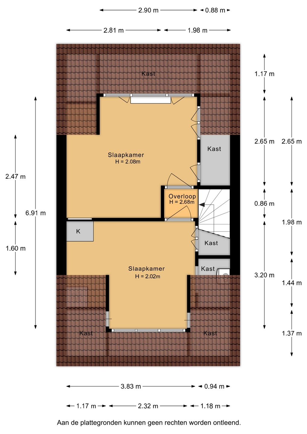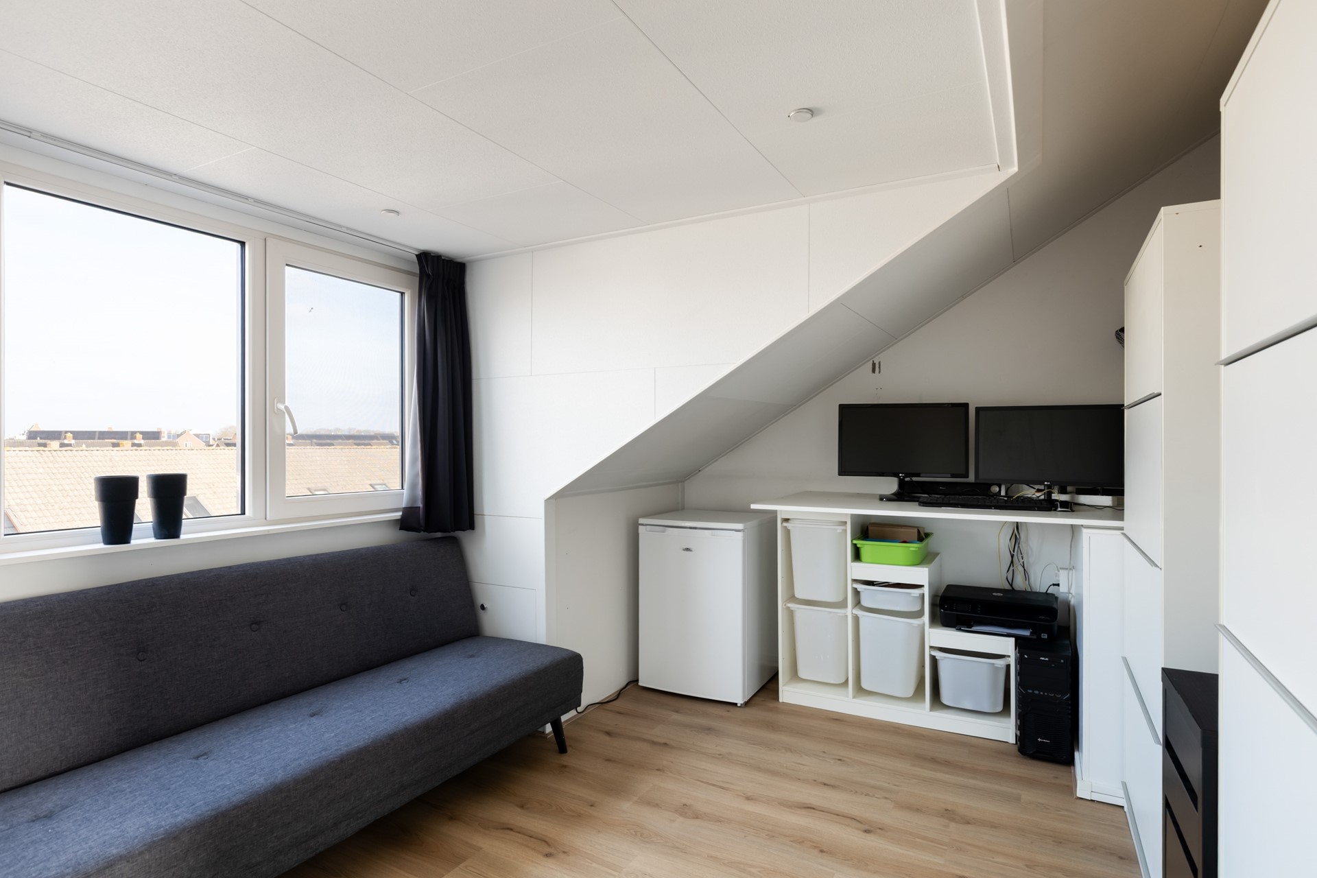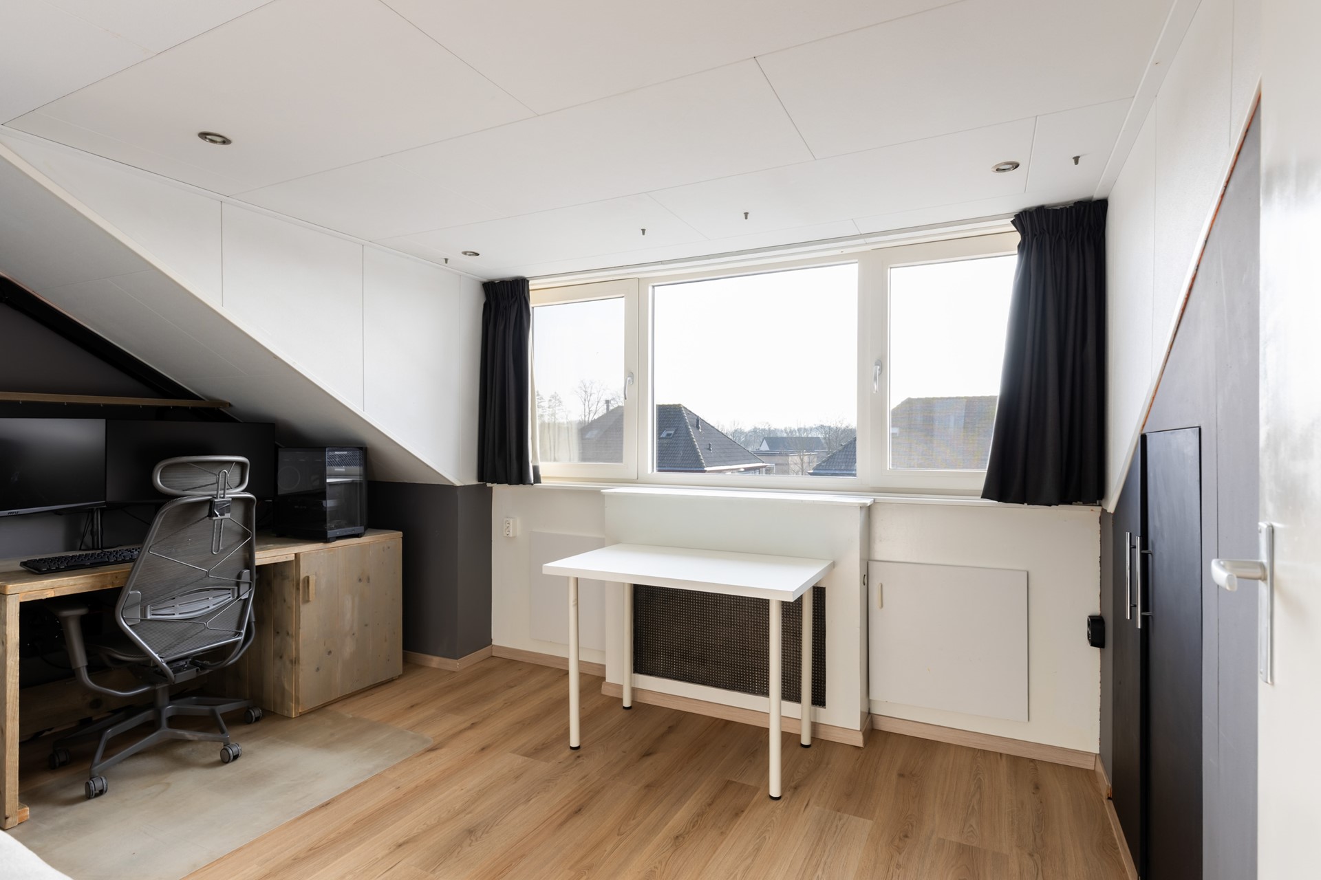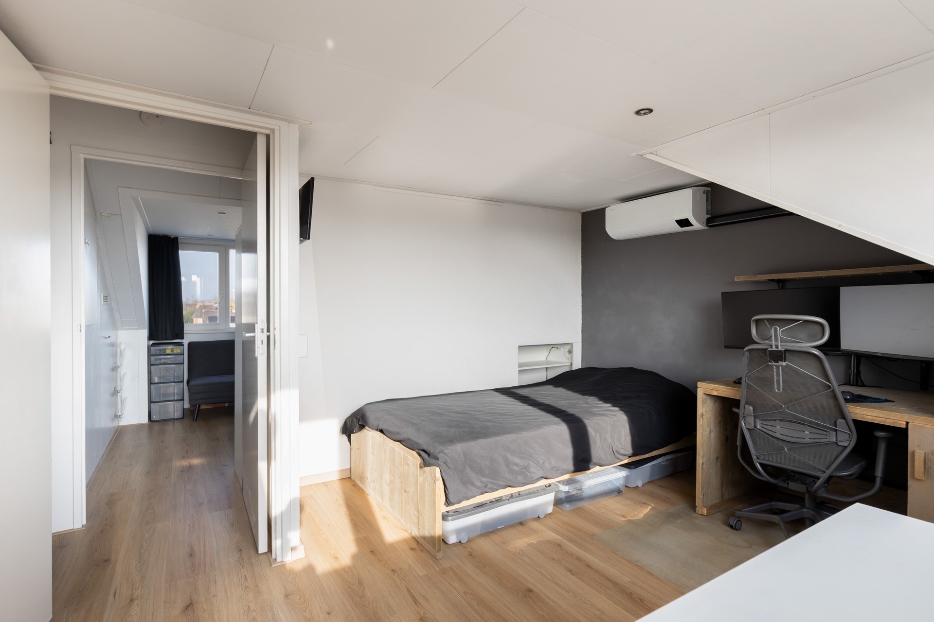Via een vaste trap bereik je de zolderverdieping. Dankzij de dakkapellen (voorzijde 2017, achterzijde 2022) zijn hier twee volwaardige slaapkamers gerealiseerd. Beide kamers beschikken over praktische bergruimte achter de knieschotten. Tot slot bevindt zich op deze verdieping ook de cv-installatie (Remeha, 2012).