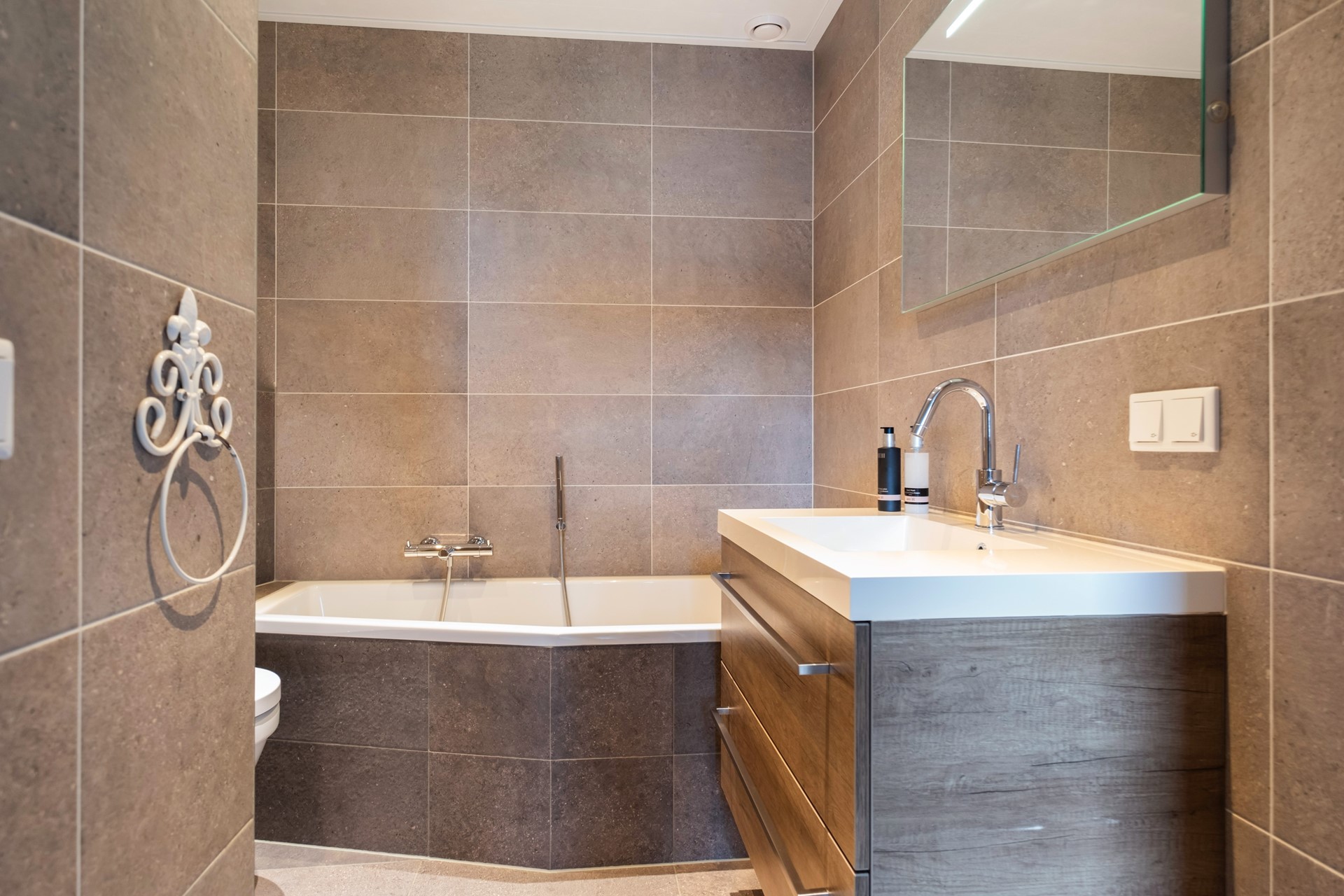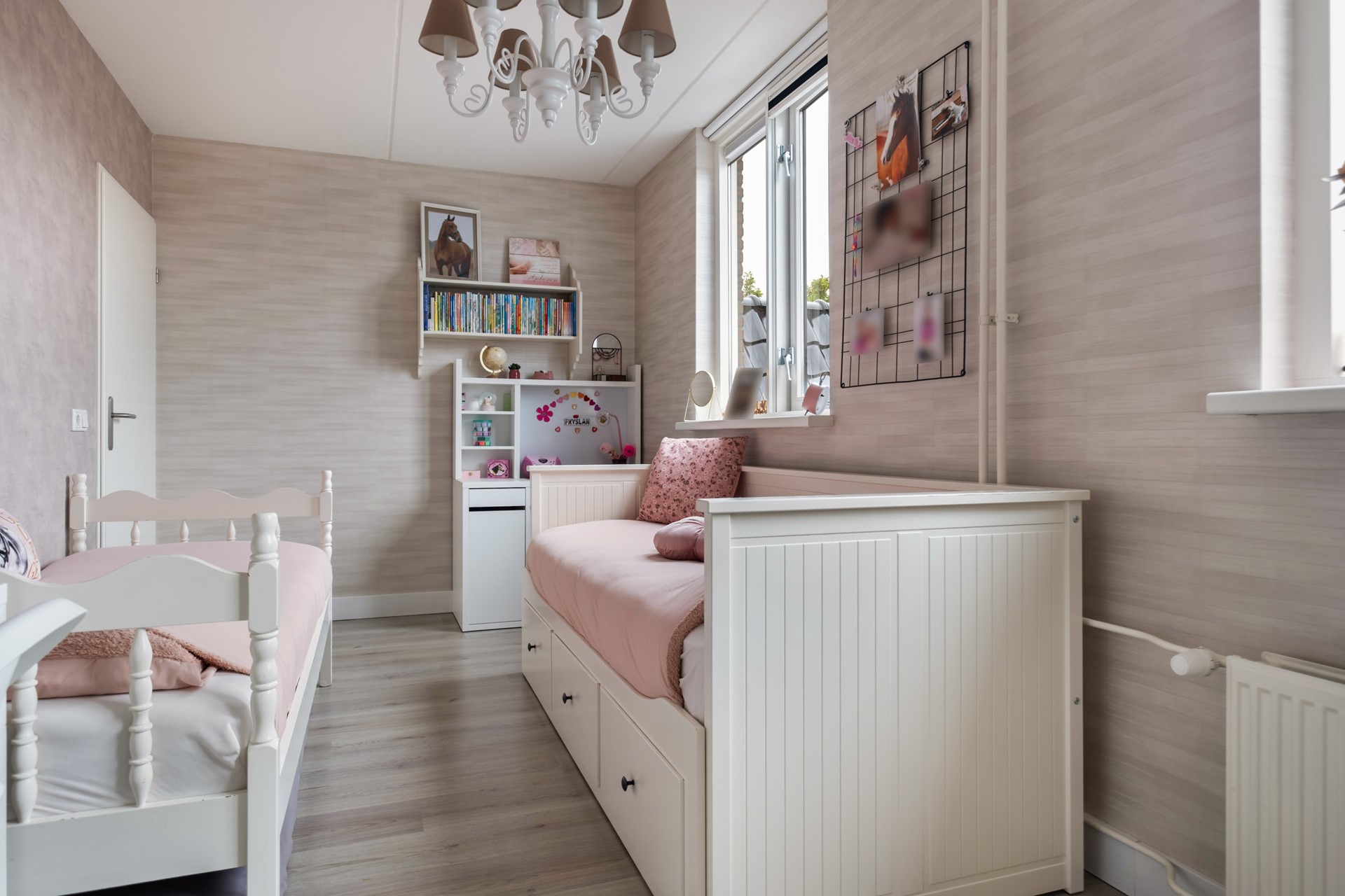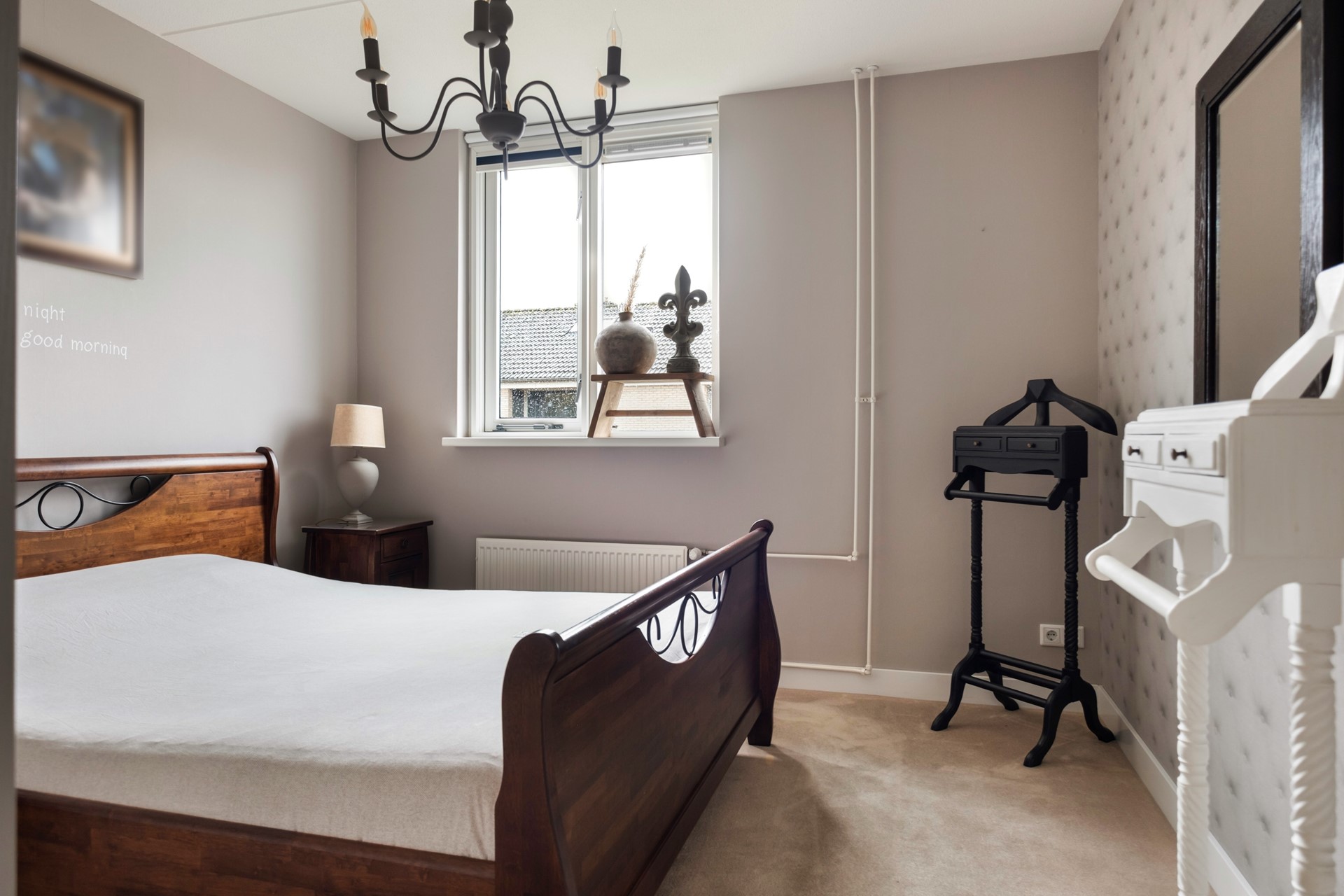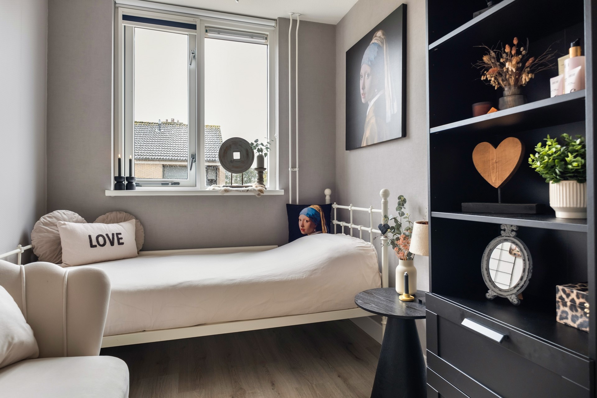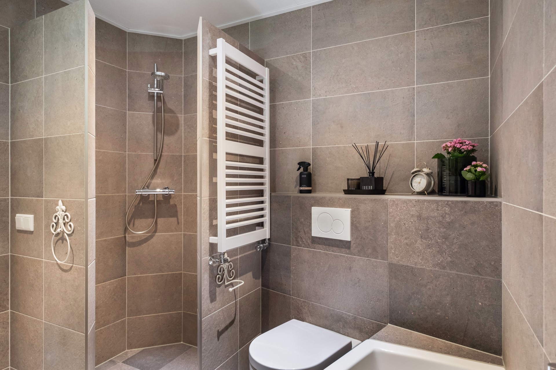 Op de eerste verdieping bevinden zich drie slaapkamers en de badkamer. De slaapkamer aan de achterzijde is over de gehele breedte van de woning gesitueerd en beschikt over een vaste kast en vloerbedekking. De badkamer is volledig betegeld en uitgerust met een douche, wastafelmeubel, toilet en vloerverwarming. Aan de voorzijde vind je nog twee nette slaapkamers, waaronder de ouderslaapkamer, beide met een vaste kast.
