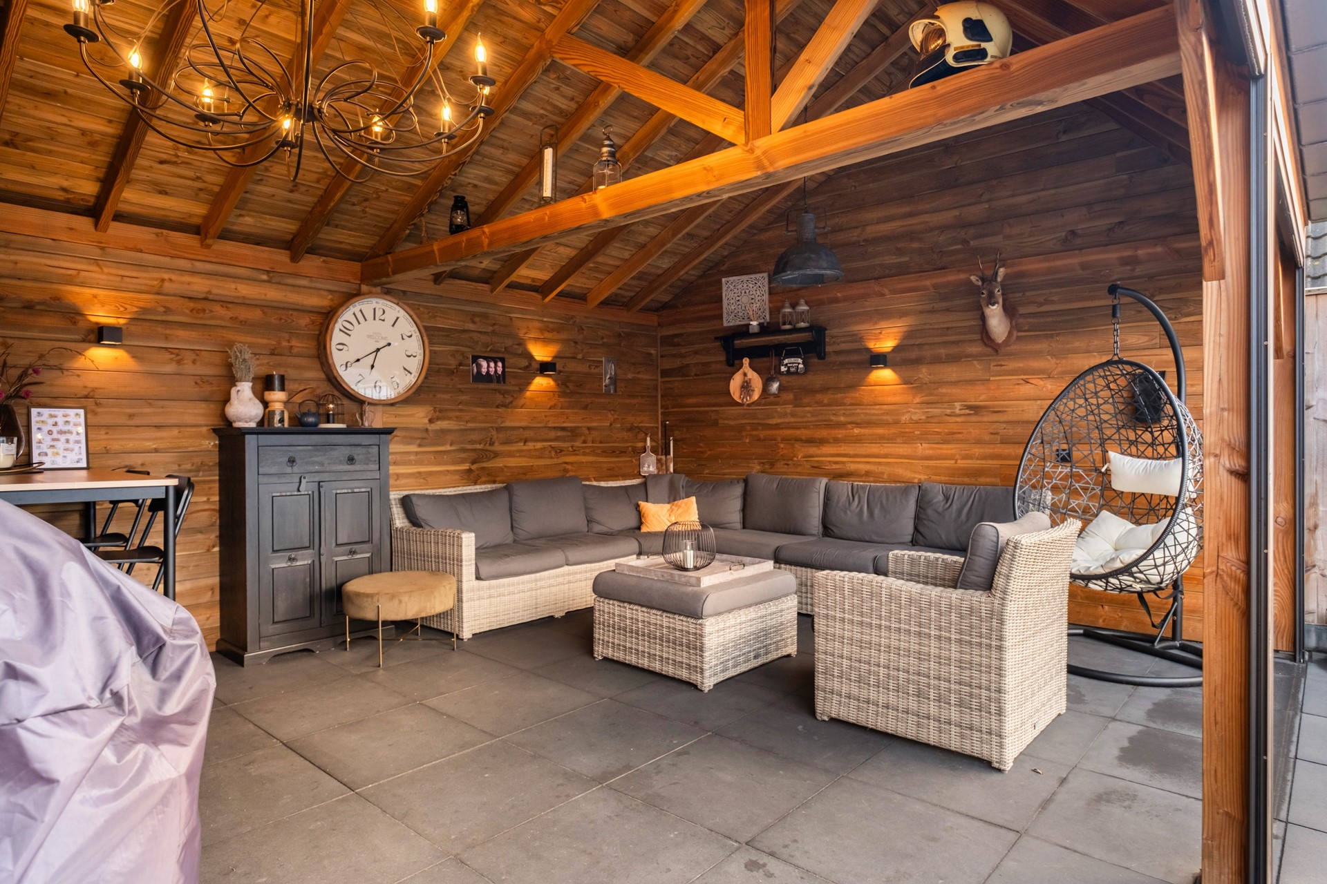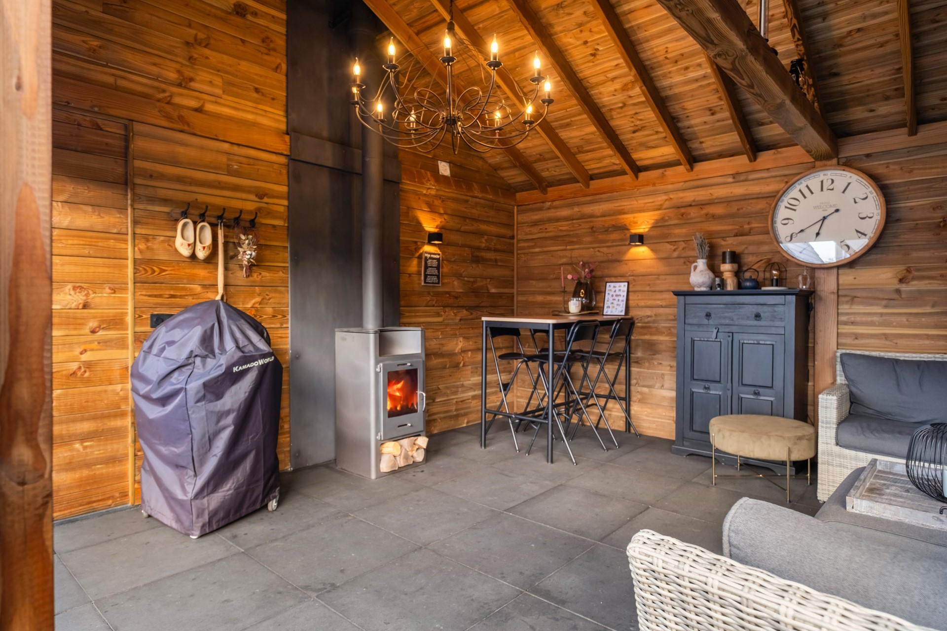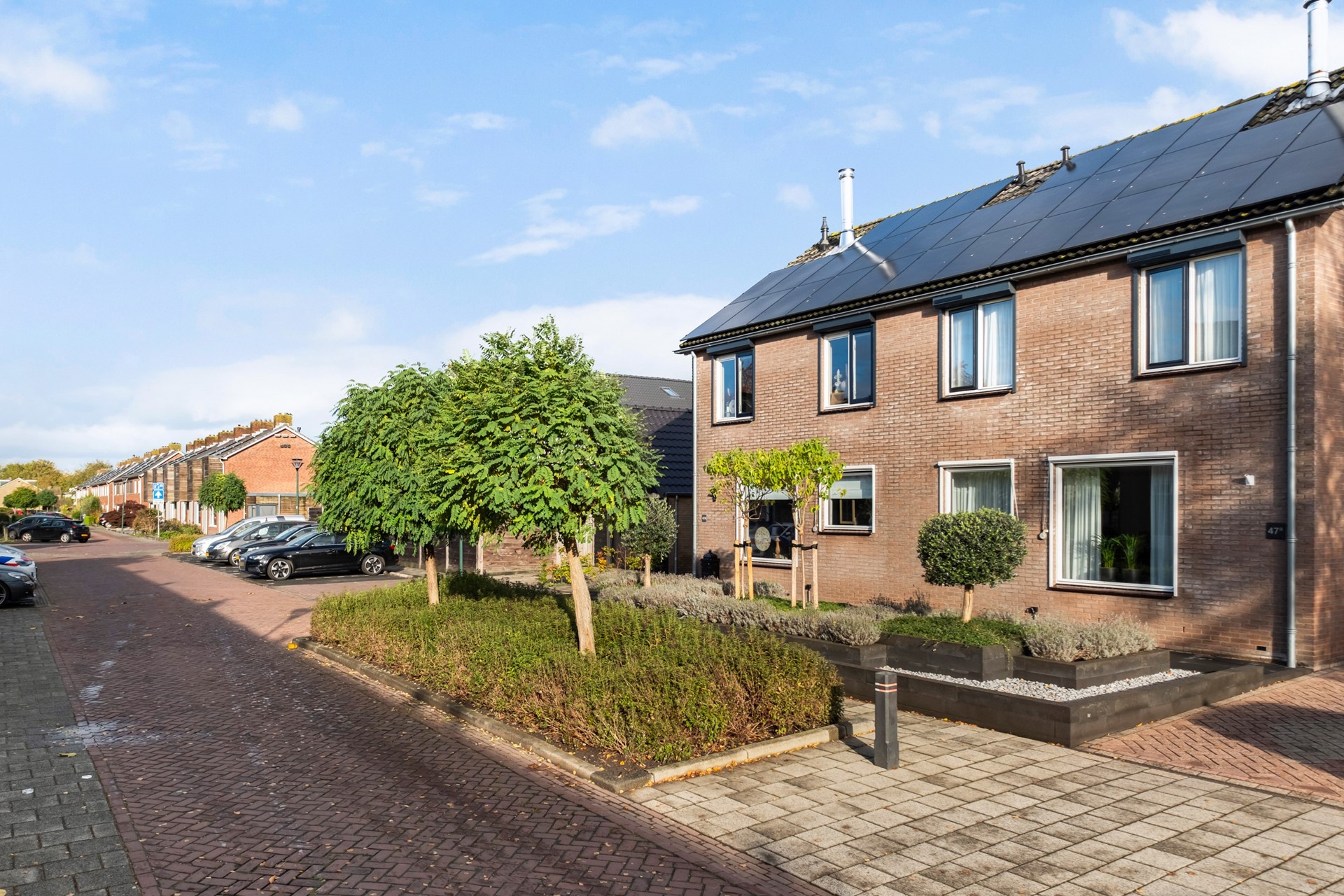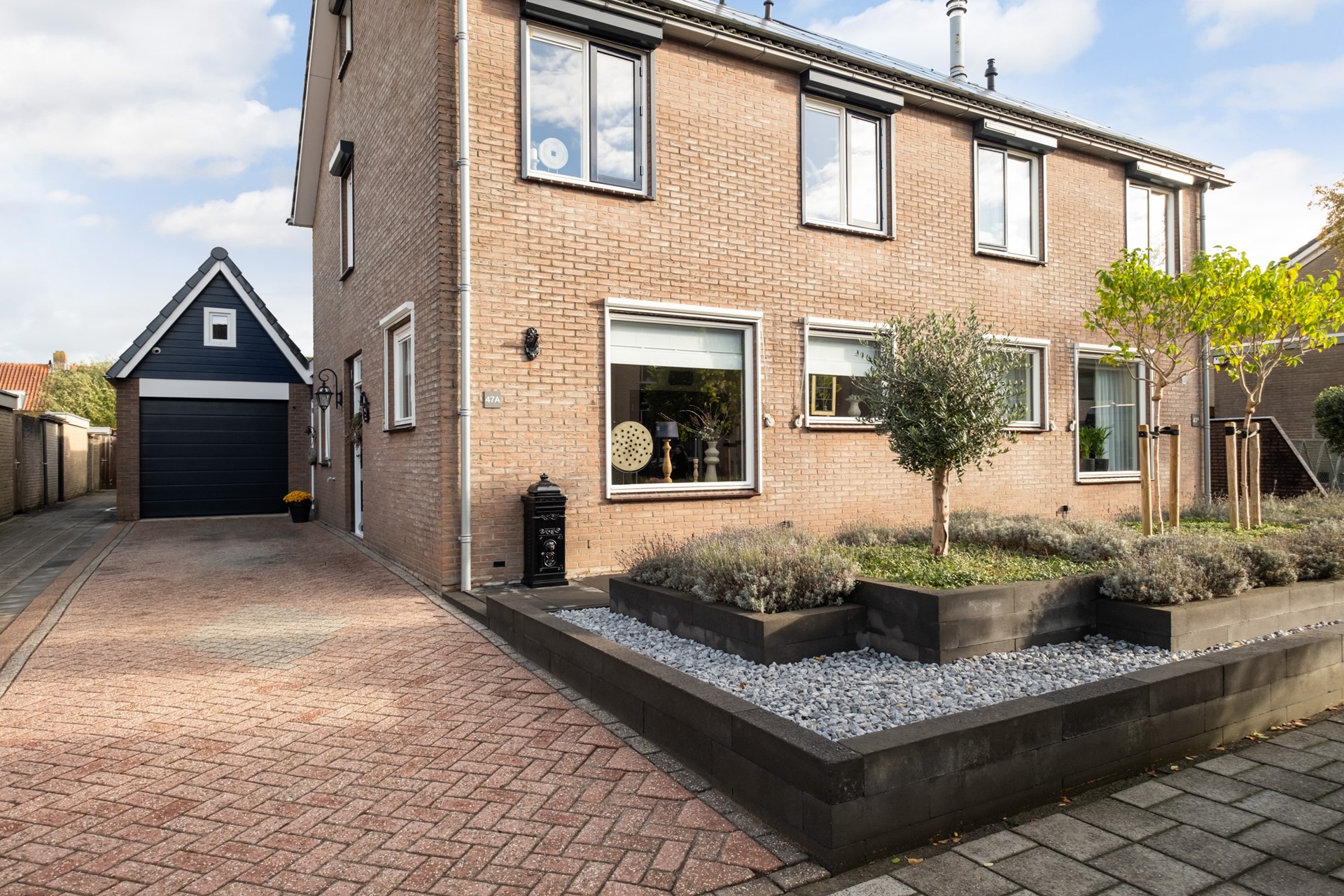 De fraai ingerichte achtertuin is een heerlijke plek om buiten te zijn. Er is een bestraat terras, (kunst)gazon, groene borders en een houthok. De sfeervolle veranda met screens en een gezellige houtkachel biedt op warme dagen een fijne, koele plek om te ontspannen en op koelere avonden een behaaglijke zitplek. De woning beschikt over 14 zonnepanelen en ramen met rolluiken en zonwering. Via de poort naast de woning is de tuin achterom bereikbaar. De oprit biedt ruimte voor meerdere auto’s, en in de wijk is daarnaast voldoende parkeergelegenheid. Ook aan speelruimte voor kinderen is geen gebrek.