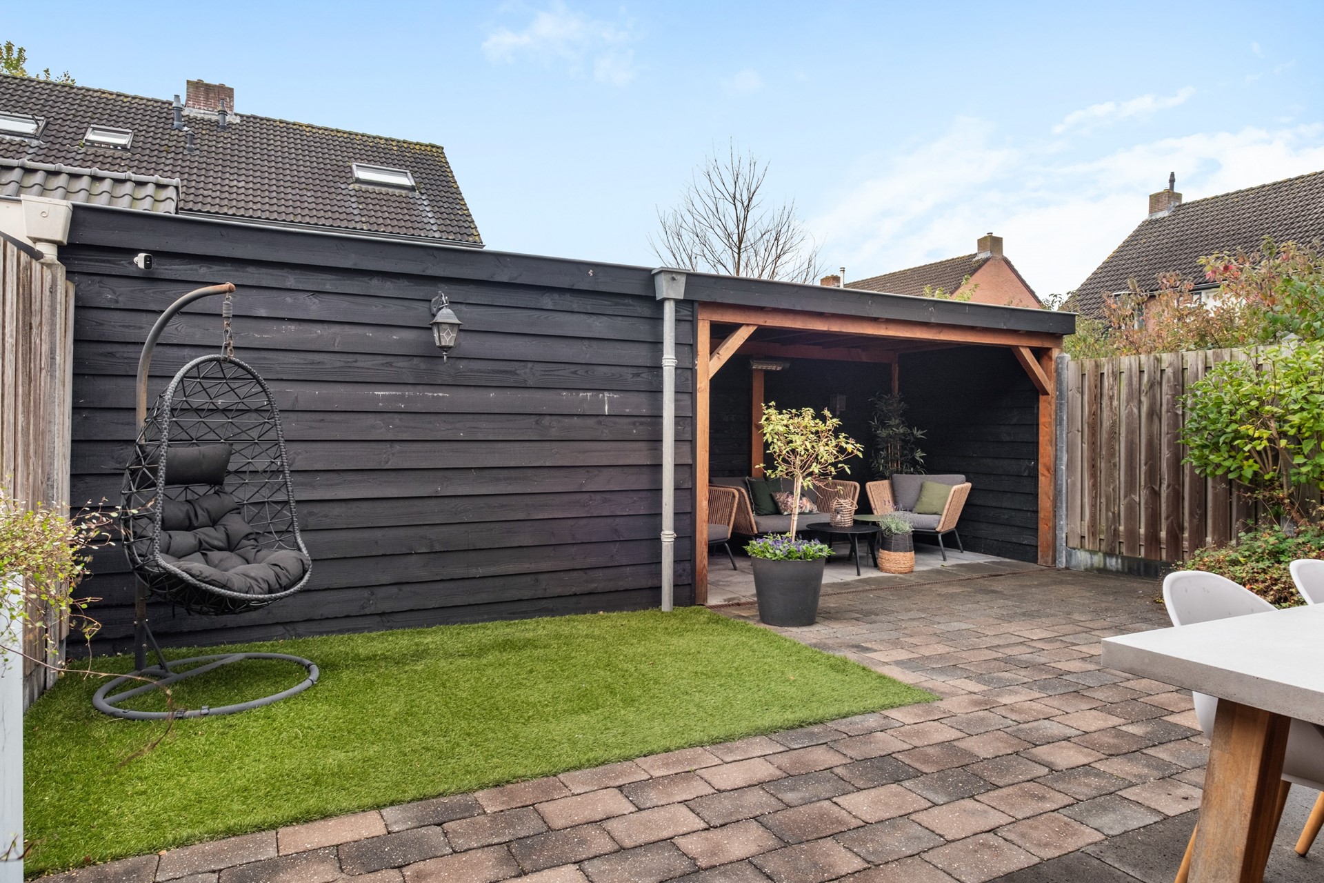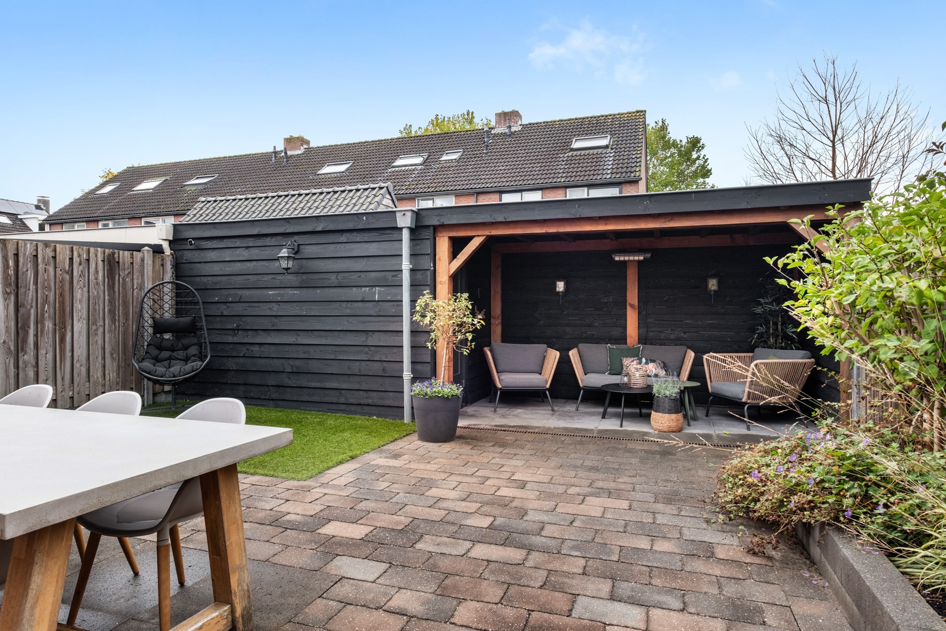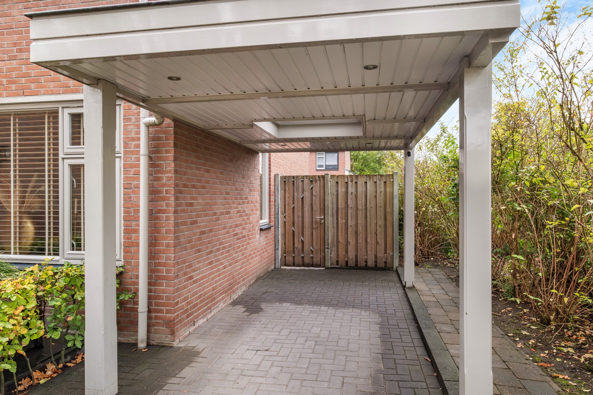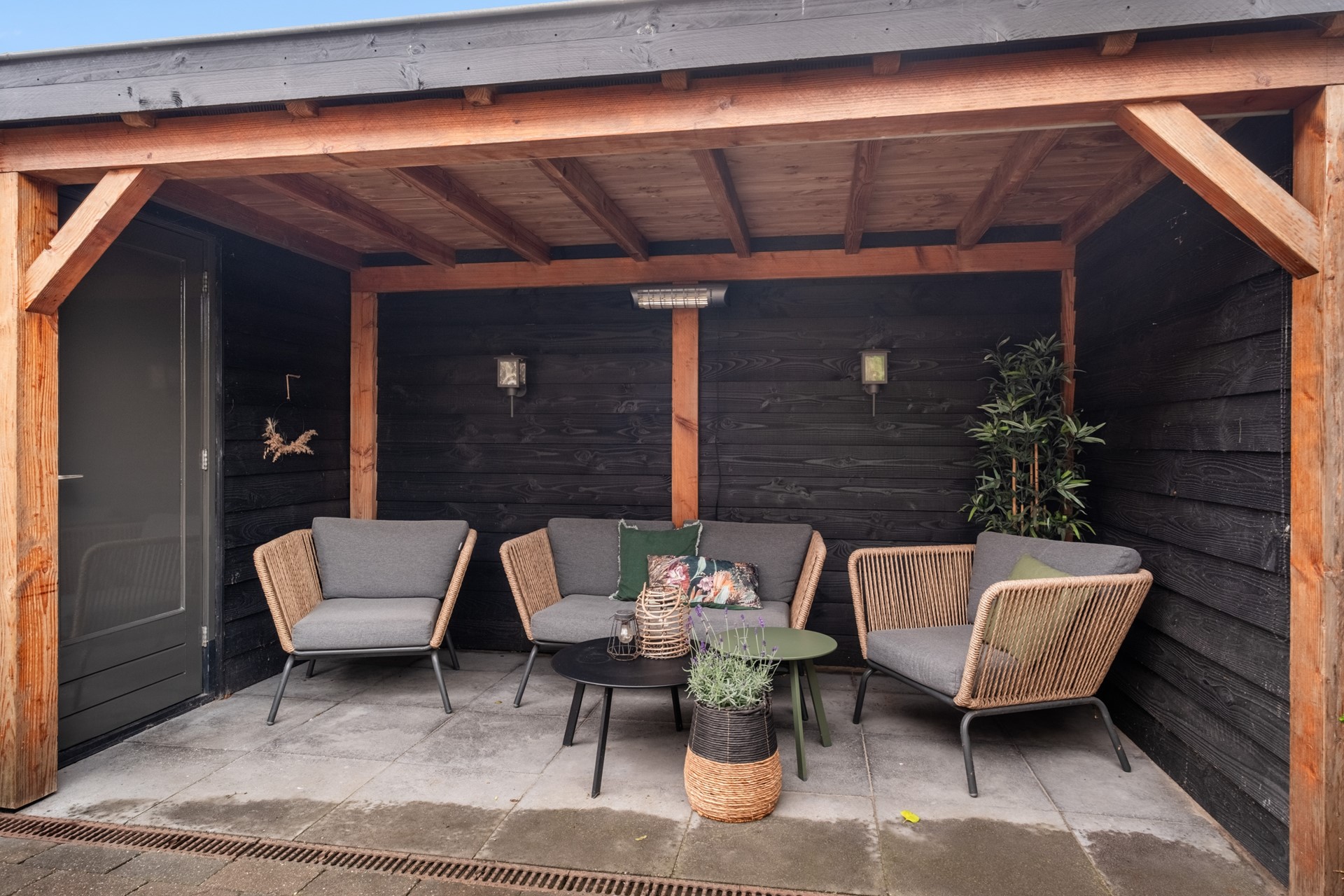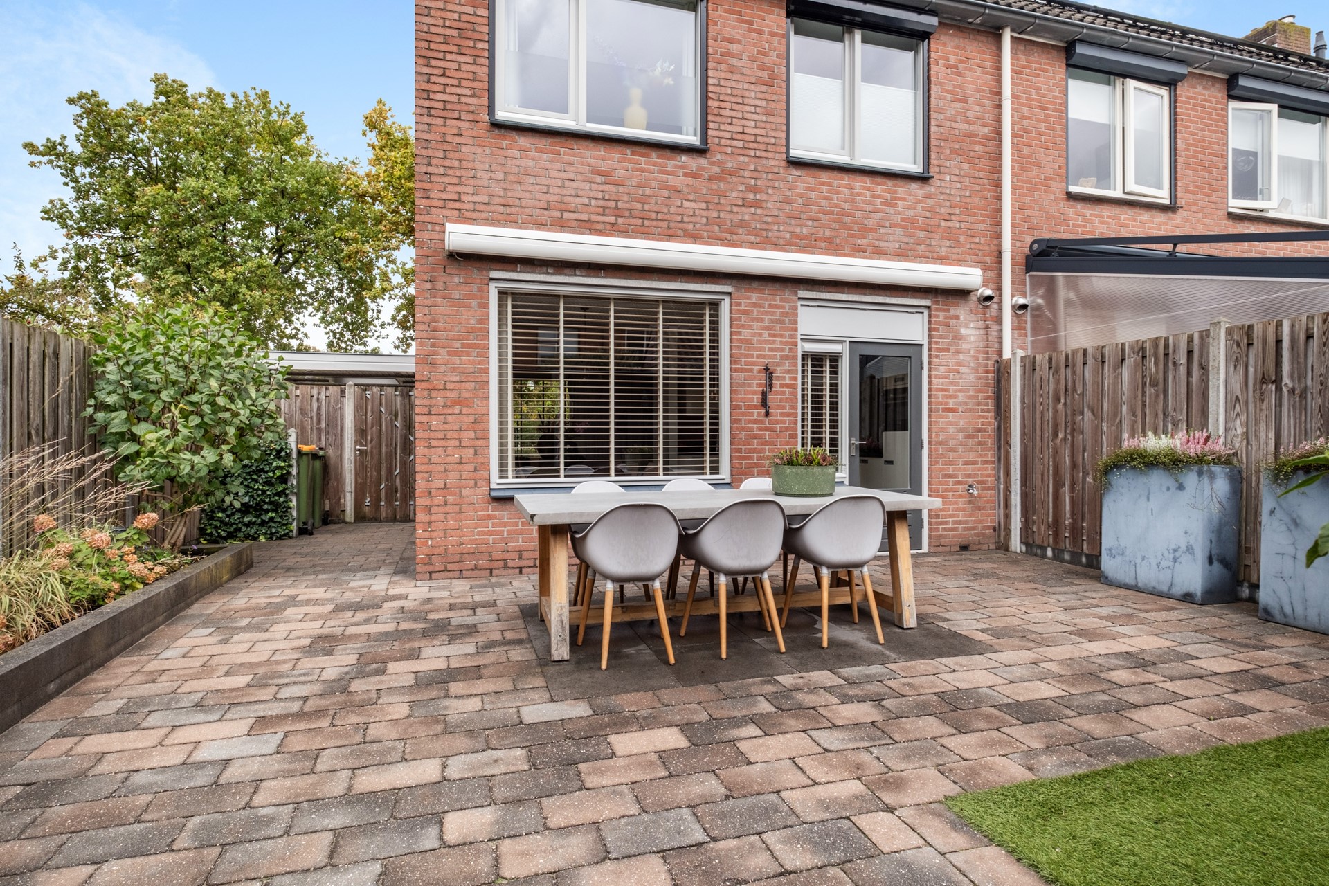 De sfeervolle achtertuin op het zuiden is verzorgd aangelegd en o.a. voorzien van een bestraat terras, (kunst)gazon, groene border en een houten berging voor praktische bergruimte. Onder de sfeervolle veranda kun je ten alle tijden comfortabel buiten zitten. De tuin is bovendien via een poort naast de woning bereikbaar. Over parkeren geen zorgen; er is een carport aanwezig en voldoende plaats op eigen terrein. Tot slot is er in de directe omgeving volop parkeergelegenheid en speelvoorzieningen aanwezig.