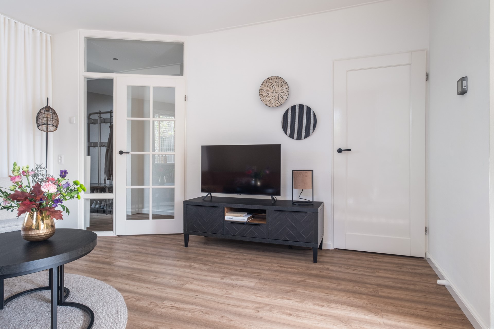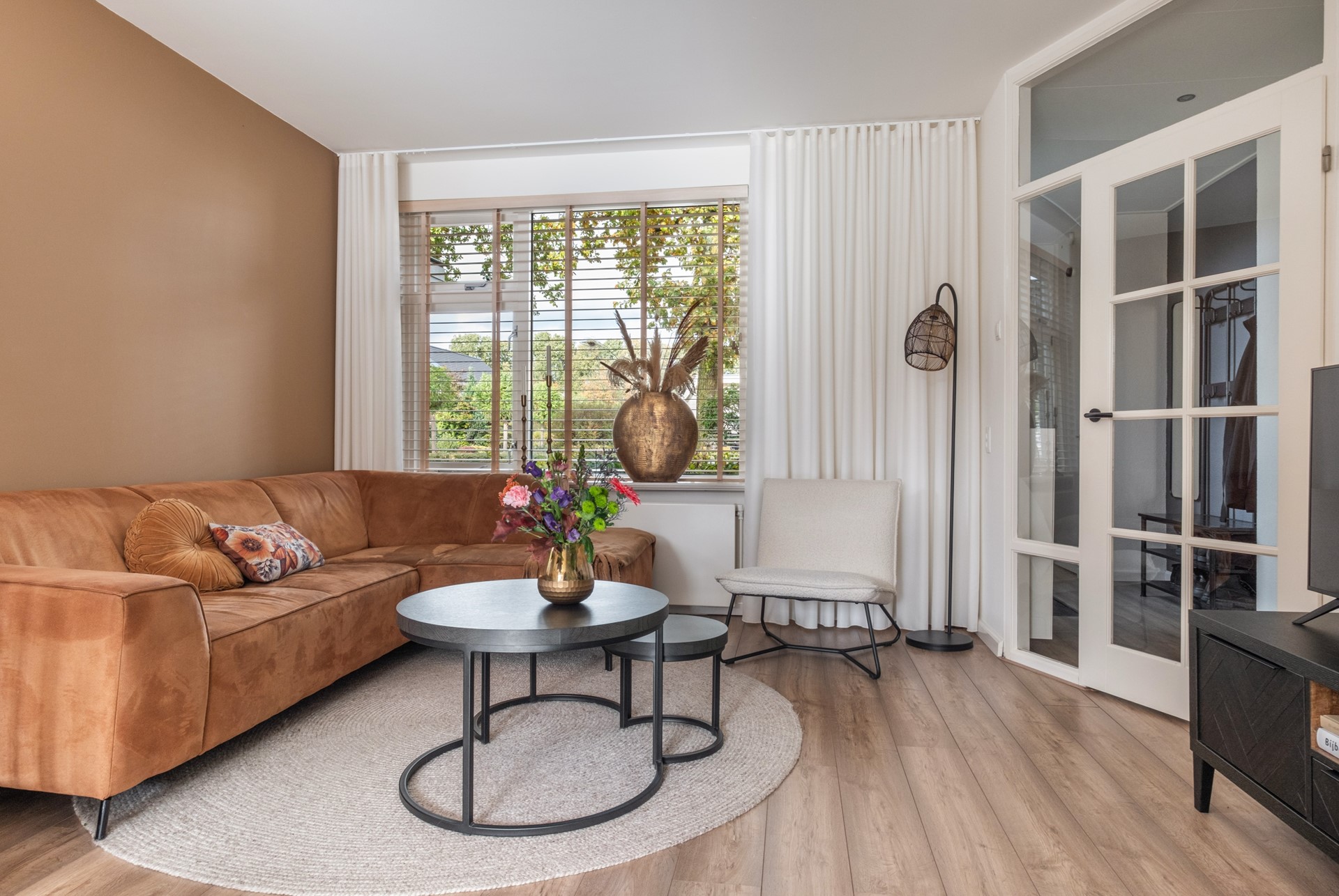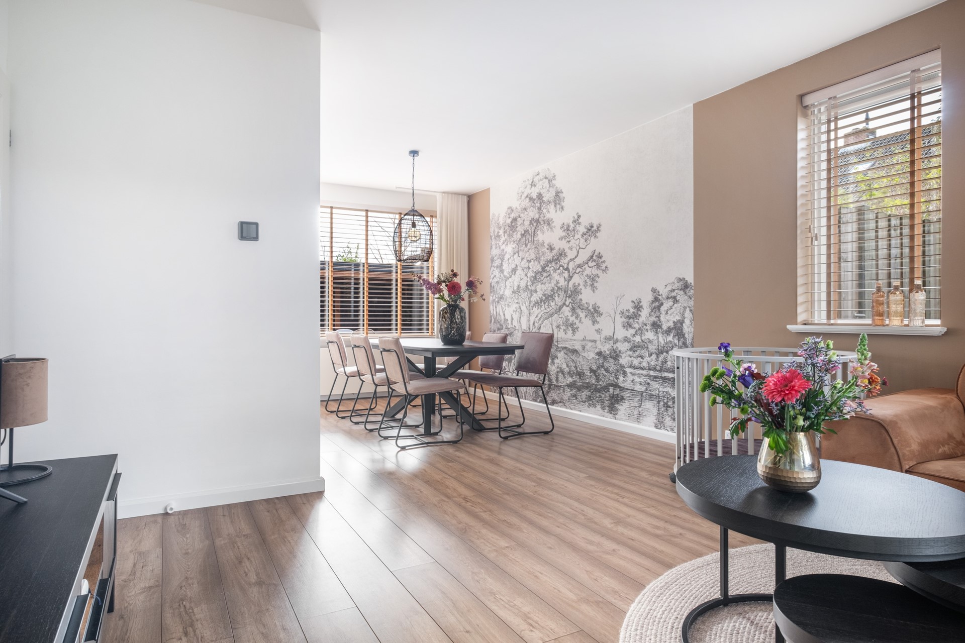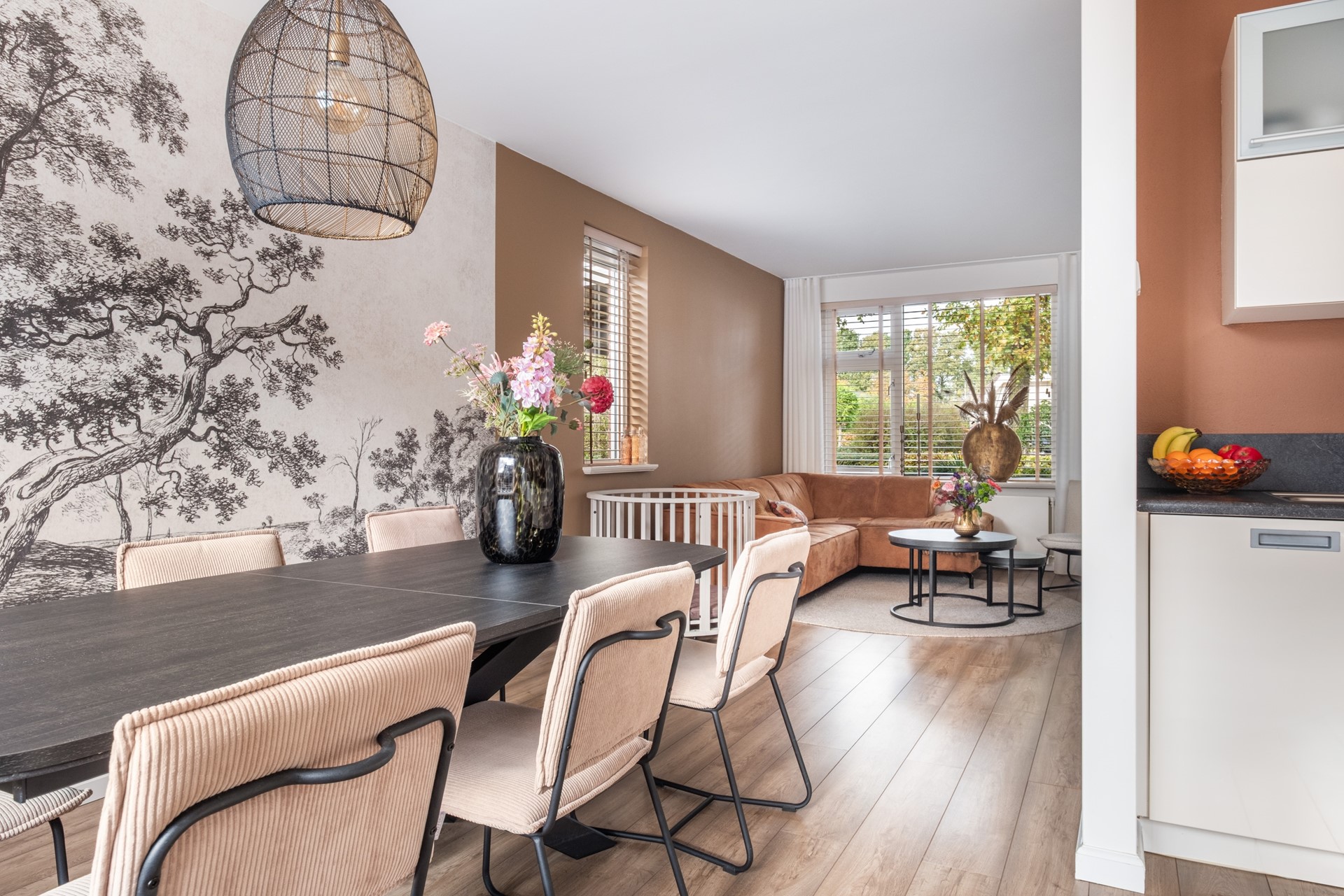 Via de entree kom je in de hal, die toegang biedt tot de toiletruimte met wandcloset en fontein (2023), de meterkast, de trapopgang naar de eerste verdieping en de woonkamer. De sfeervolle woonkamer bevindt zich aan de voorzijde van de woning en biedt plaats voor een royale zithoek. Daarnaast is er een praktische provisieruimte aanwezig. In het verlengde van de woonkamer is ruimte voor een gezellige eethoek en bevindt zich de keuken. De open keuken in hoekopstelling is uitgerust met een kookplaat, afzuigkap, combi-oven, koelkast en een vaatwasser. Vanuit de keuken heb je direct toegang tot de tuin. De gehele begane grond is afgewerkt met een nette laminaatvloer en de wanden en het plafond zijn glad afgewerkt.