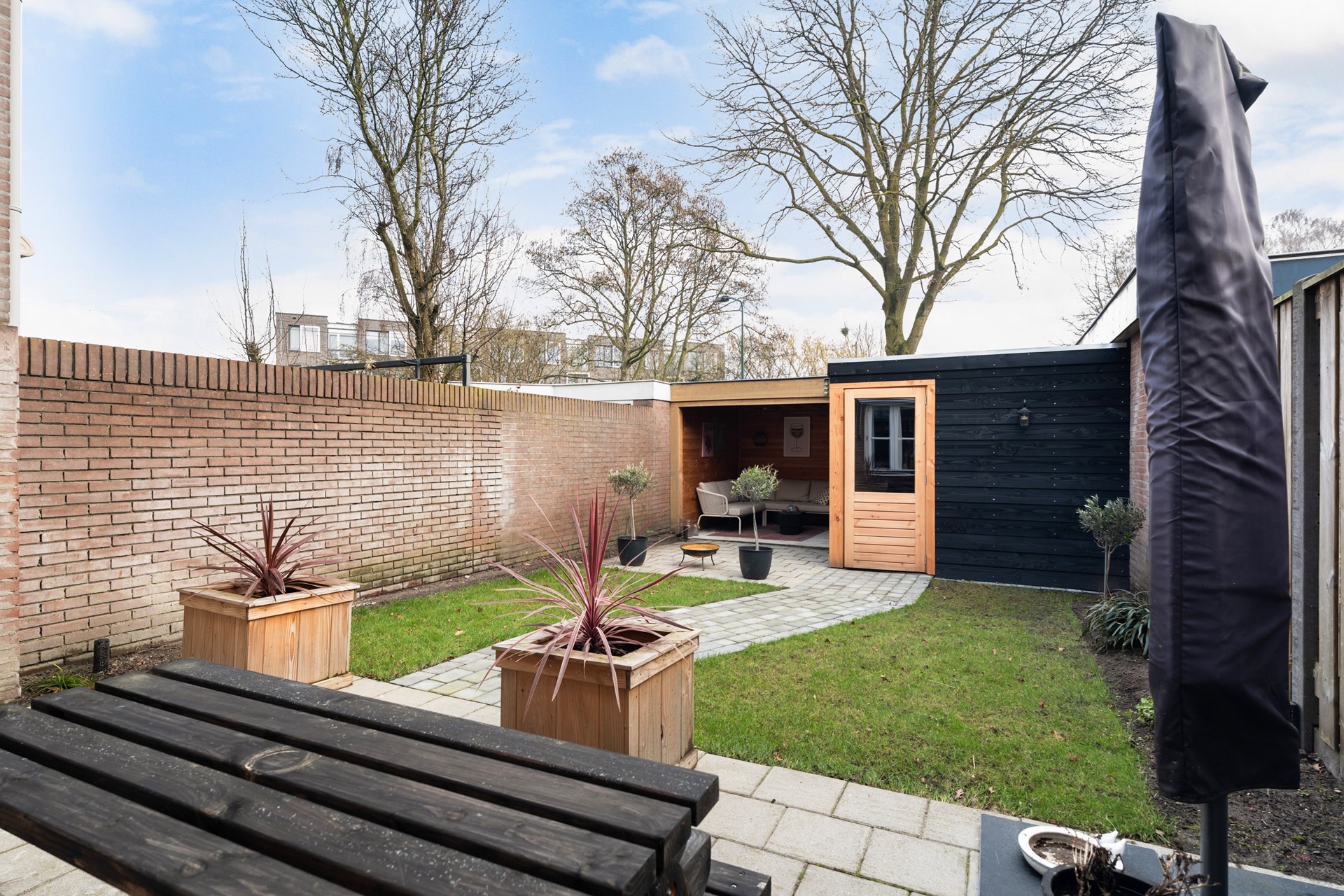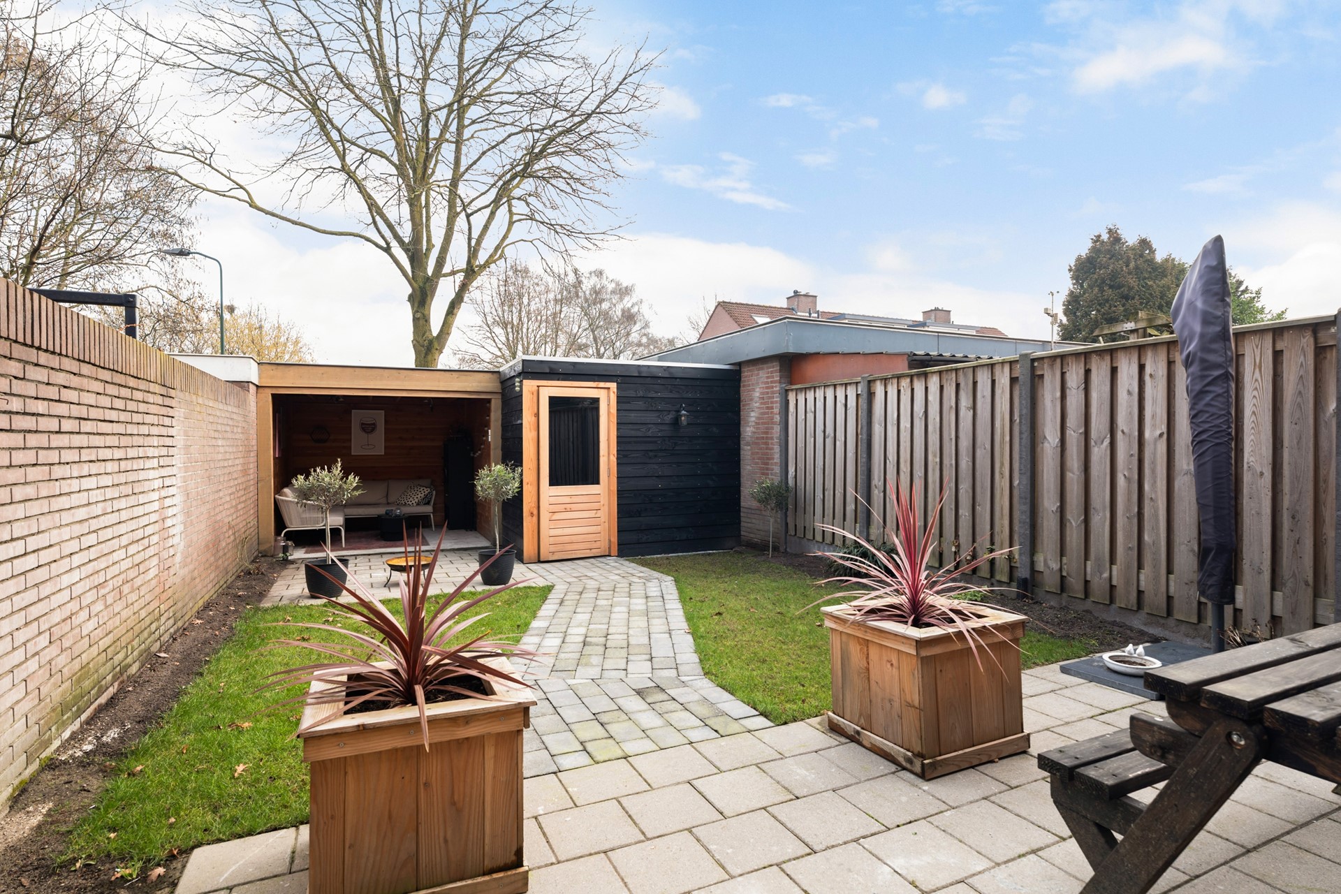 De achtertuin is gunstig gelegen op het zuidoosten en keurig aangelegd met een bestraat terras, een gazon en groene borders. Dankzij de zonnige ligging geniet je hier vrijwel de hele dag van zonlicht – perfect om optimaal van het buitenleven te genieten. Of je nu een gezellige zithoek op het terras wilt creëren of liever ontspant onder de sfeervolle veranda achter in de tuin, er is volop ruimte om de tuin naar wens in te richten. Achterin bevindt zich een ruime houten berging met voldoende plaats voor fietsen en andere spullen. Daarnaast is de tuin gemakkelijk bereikbaar via een praktische achterom. Aan de voor- en achterzijde van de woning zijn bovendien diverse parkeerplaatsen aanwezig, wat zorgt voor extra gemak.