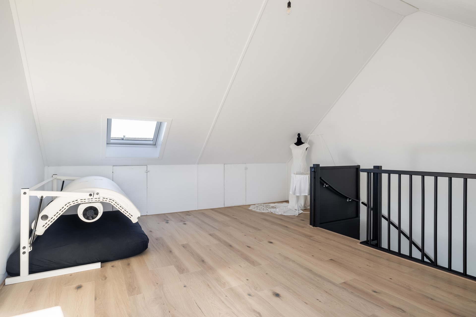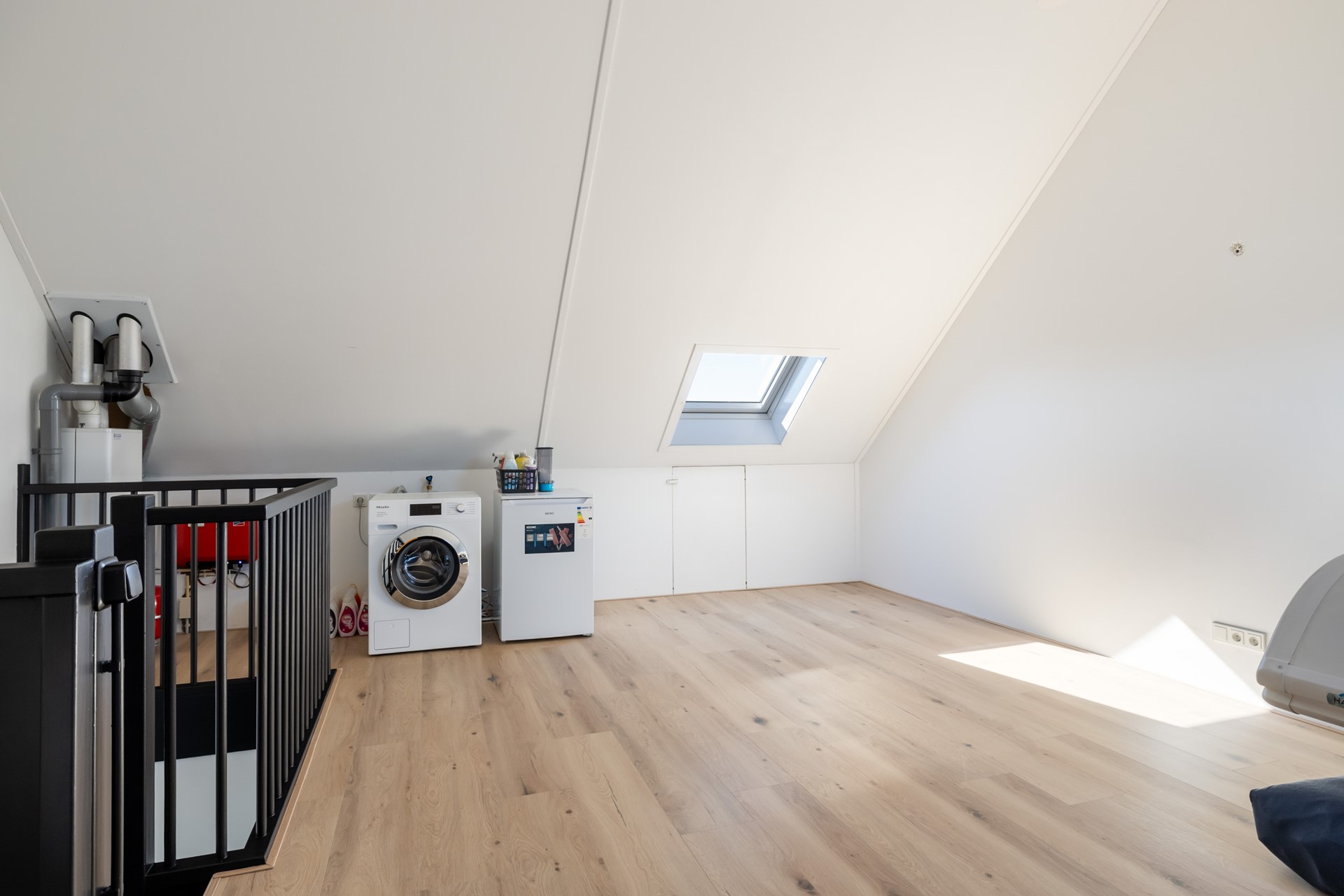 Via een vaste trap kom je op de tweede verdieping, waar een open zolderruimte met Velux-dakramen voor prettig daglicht zorgt. Deze verdieping biedt veel praktische bergruimte achter de knieschotten en beschikt daarnaast over de cv-installatie (Intergas 2020) en de aansluiting voor de wasmachine. Dankzij de royale opzet biedt deze verdieping bovendien volop mogelijkheden. Zo kan hier eenvoudig een extra slaapkamer(s) worden gerealiseerd, waardoor je de indeling geheel naar eigen wens kunt aanpassen.