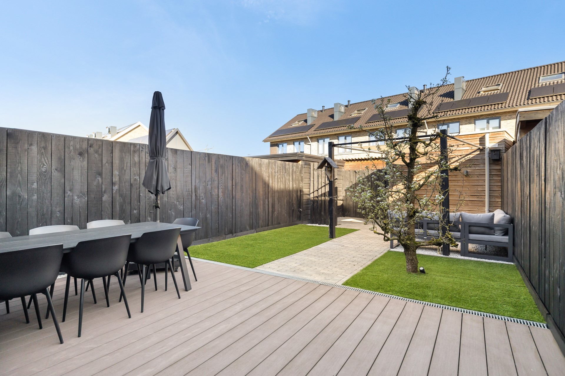 De achtertuin ligt op het noorden, is verzorgd aangelegd en biedt meerdere fijne zitplekken om op verschillende momenten van de dag van buiten te genieten. De tuin is bovendien via een achterom bereikbaar en beschikt over een berging. Aan de voorzijde van de woning heb je vrij uitzicht en is er in de omgeving voldoende parkeergelegenheid en speelruimte aanwezig.