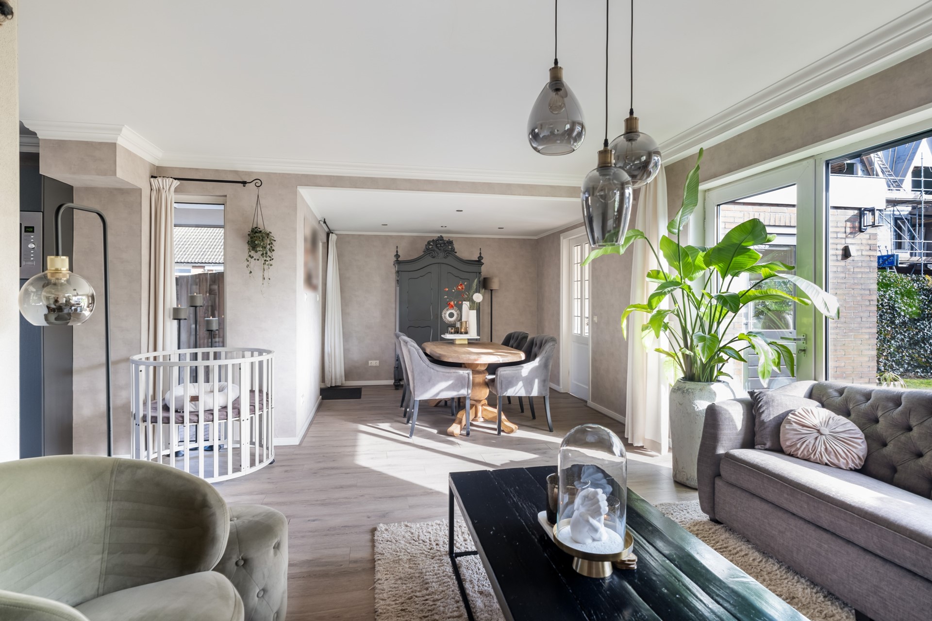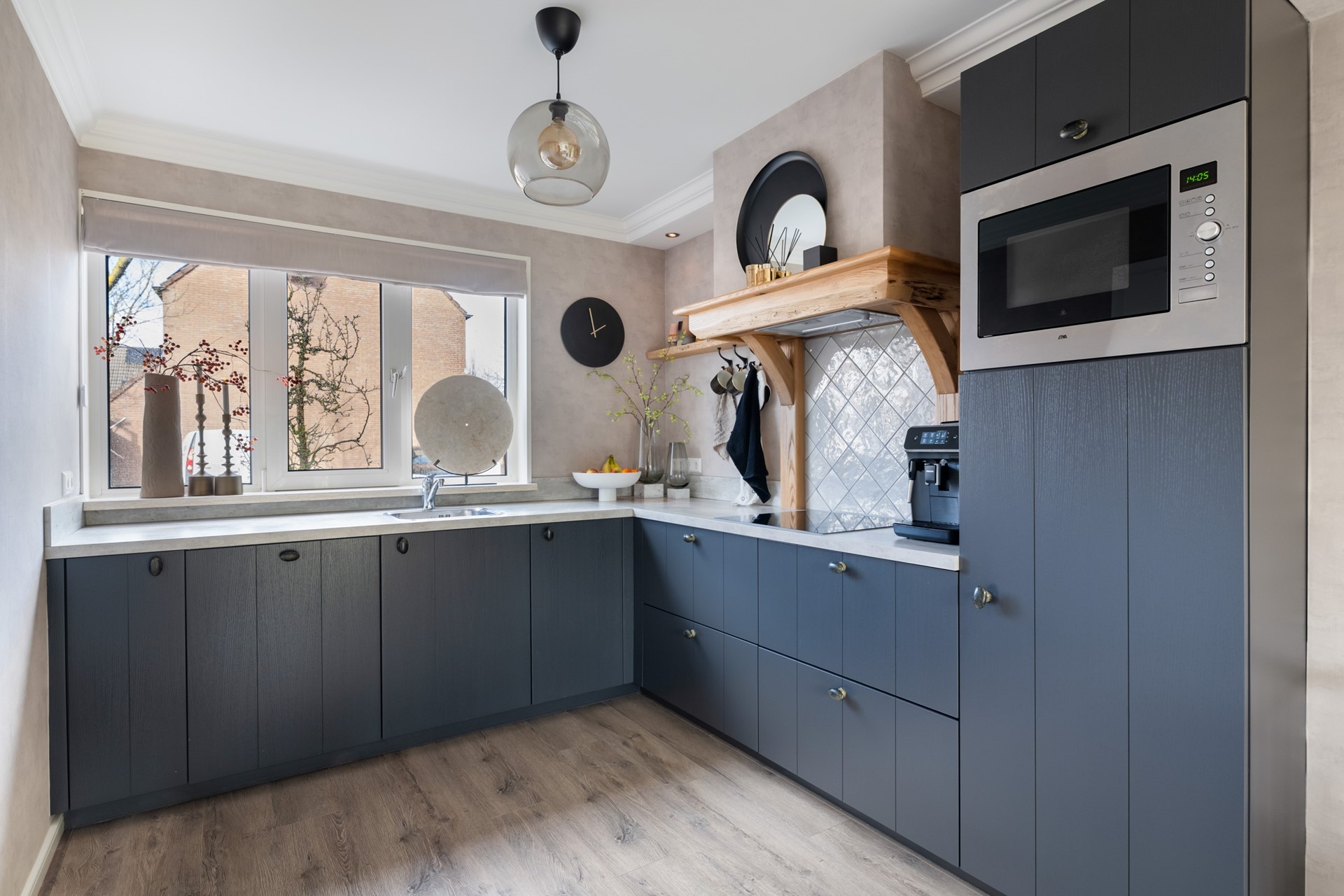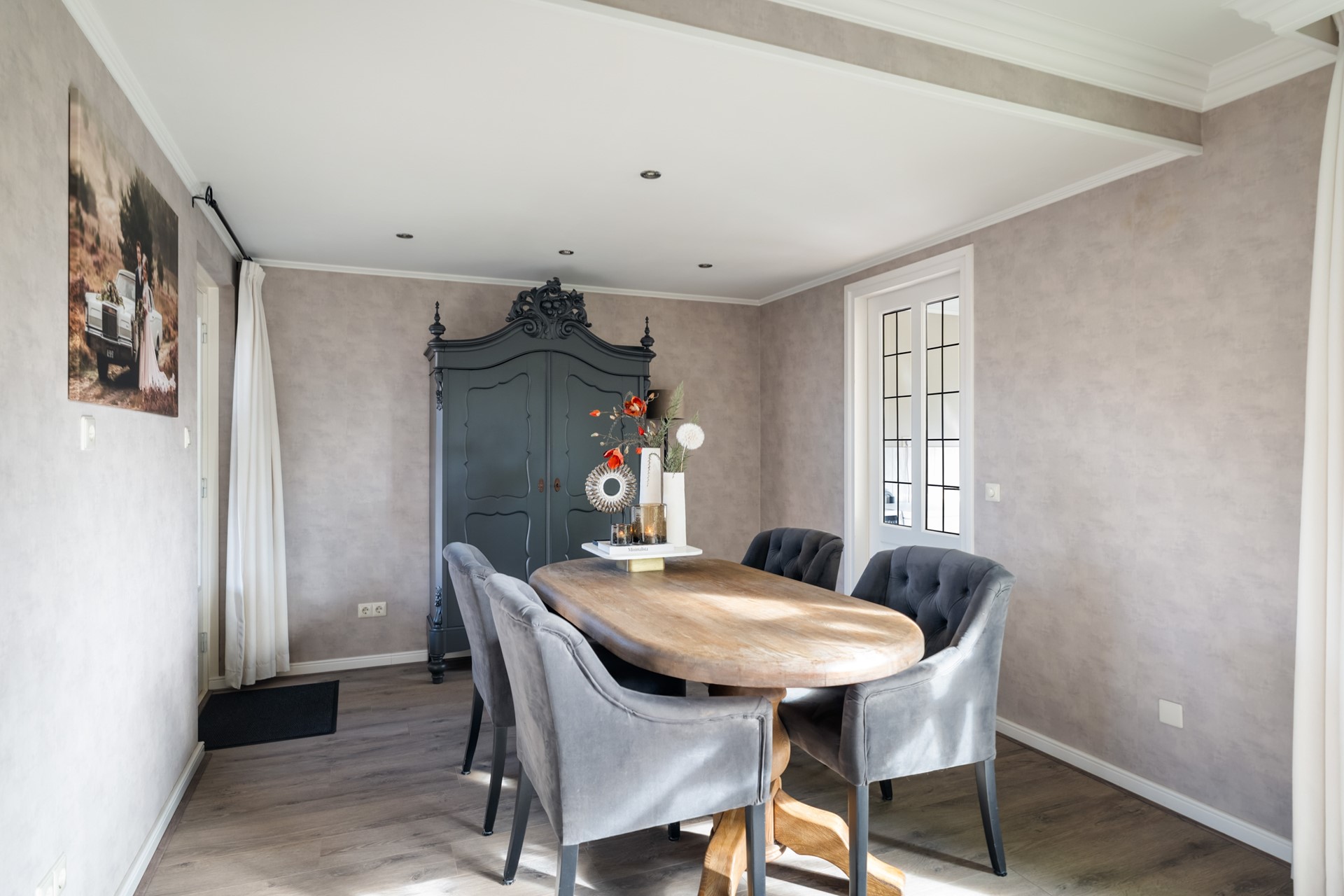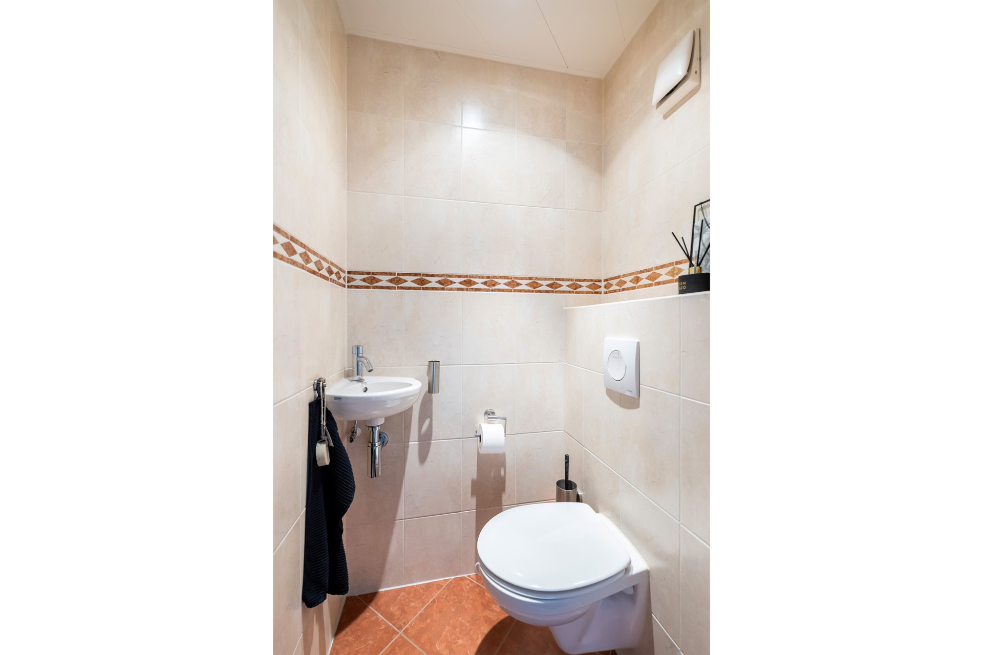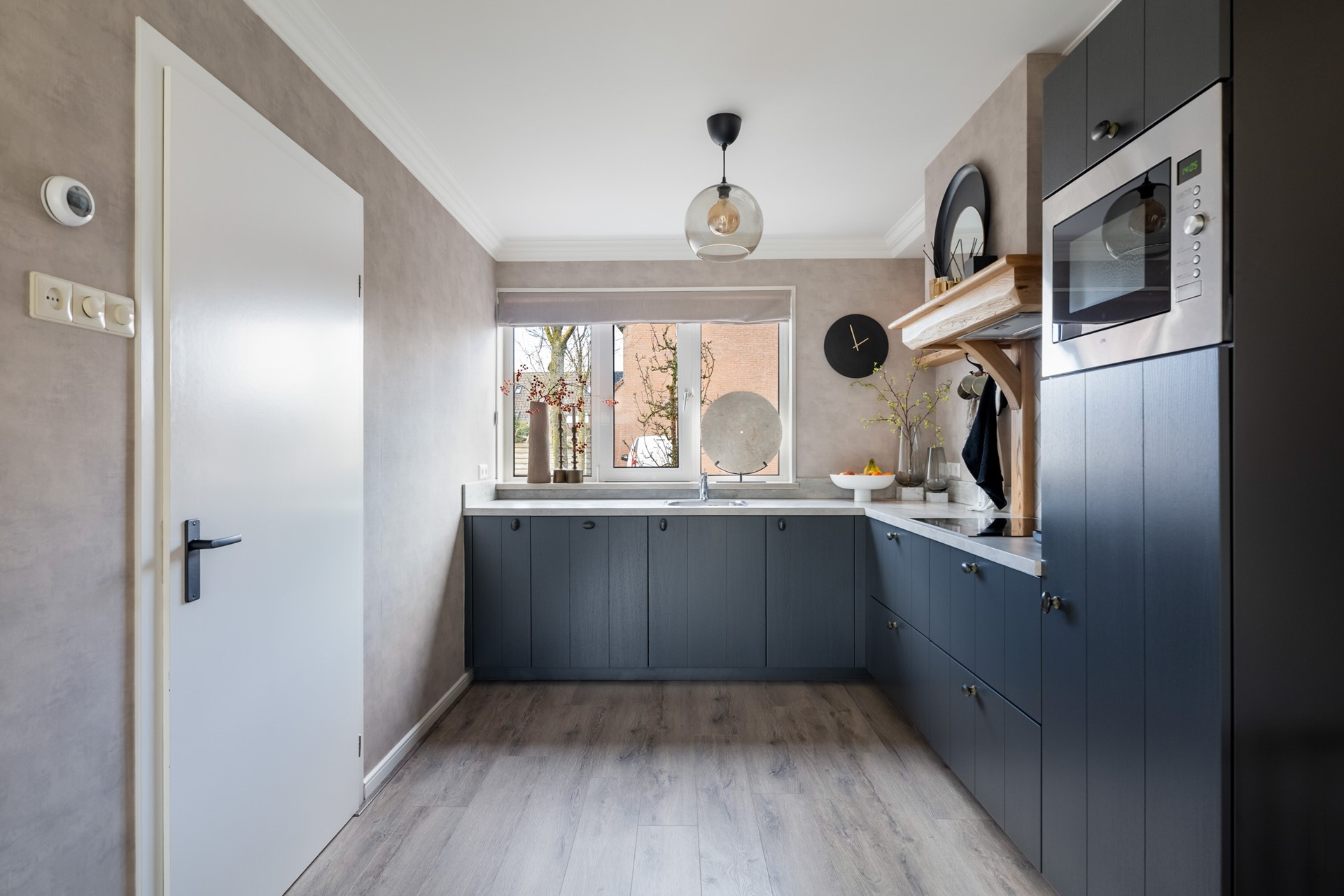 Via de entree stap je binnen in de hal, die toegang geeft tot de meterkast (voorzien van glasvezelaansluiting), de toiletruimte met wandcloset, de trapopgang naar de eerste verdieping en de keuken. De keuken is aan de voorzijde van de woning gesitueerd en uitgevoerd in een praktische hoekopstelling. Deze is voorzien van diverse inbouwapparatuur, waaronder een inductiekookplaat, afzuigkap, combi-oven, koelkast en vaatwasser. De woonkamer bevindt zich aan de achterzijde van de woning en beschikt over een sfeervolle houtkachel. De ruimte staat in open verbinding met de keuken en biedt voldoende plaats voor een gezellige eethoek. De begane grond is strak afgewerkt en voorzien van vloerverwarming en een strak plafond met inbouwspots. In de bijkeuken vind je de aansluiting voor de wasmachine en een uitstortgootsteen. Vanuit deze ruimte heb je tevens toegang tot de achtertuin.