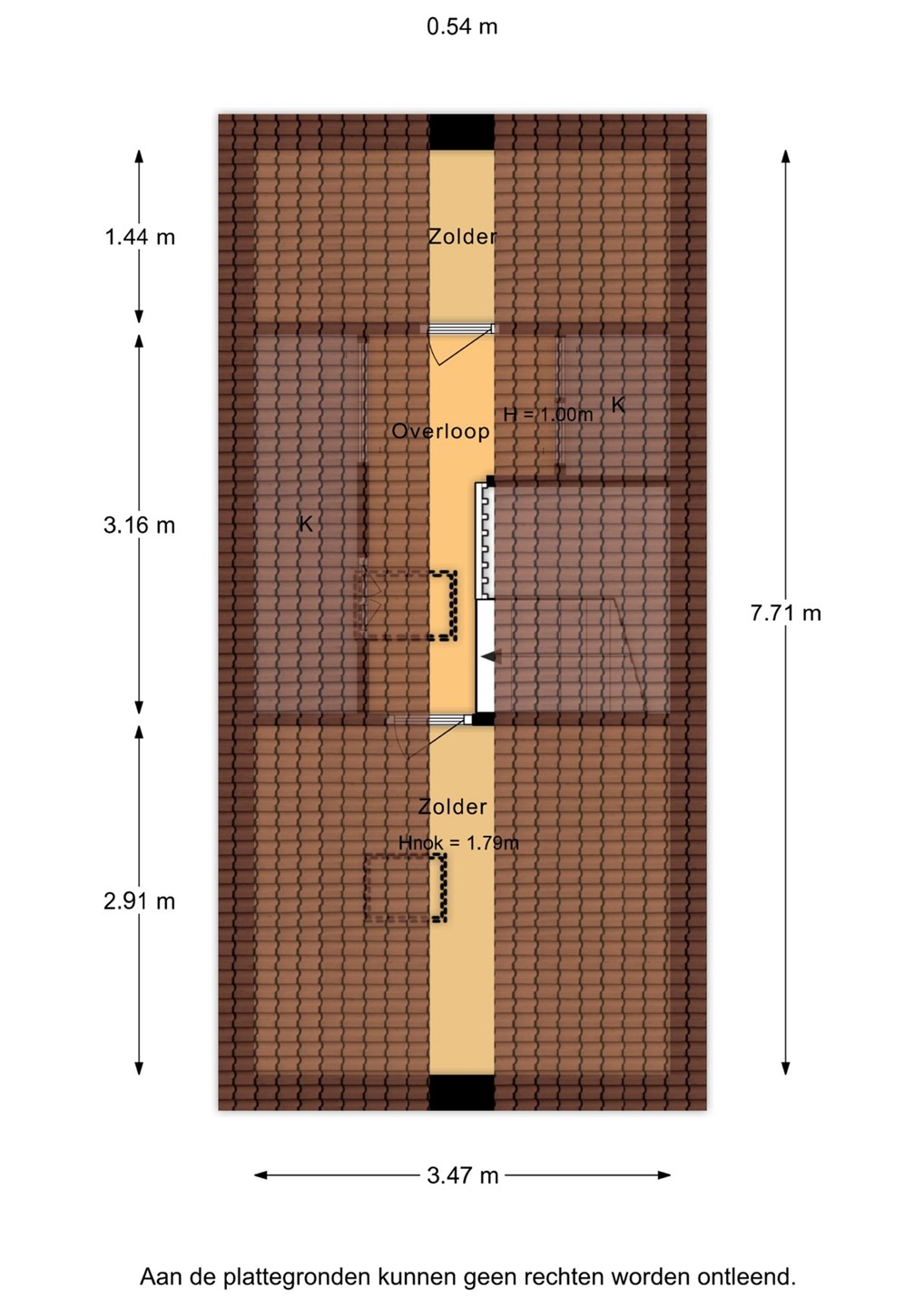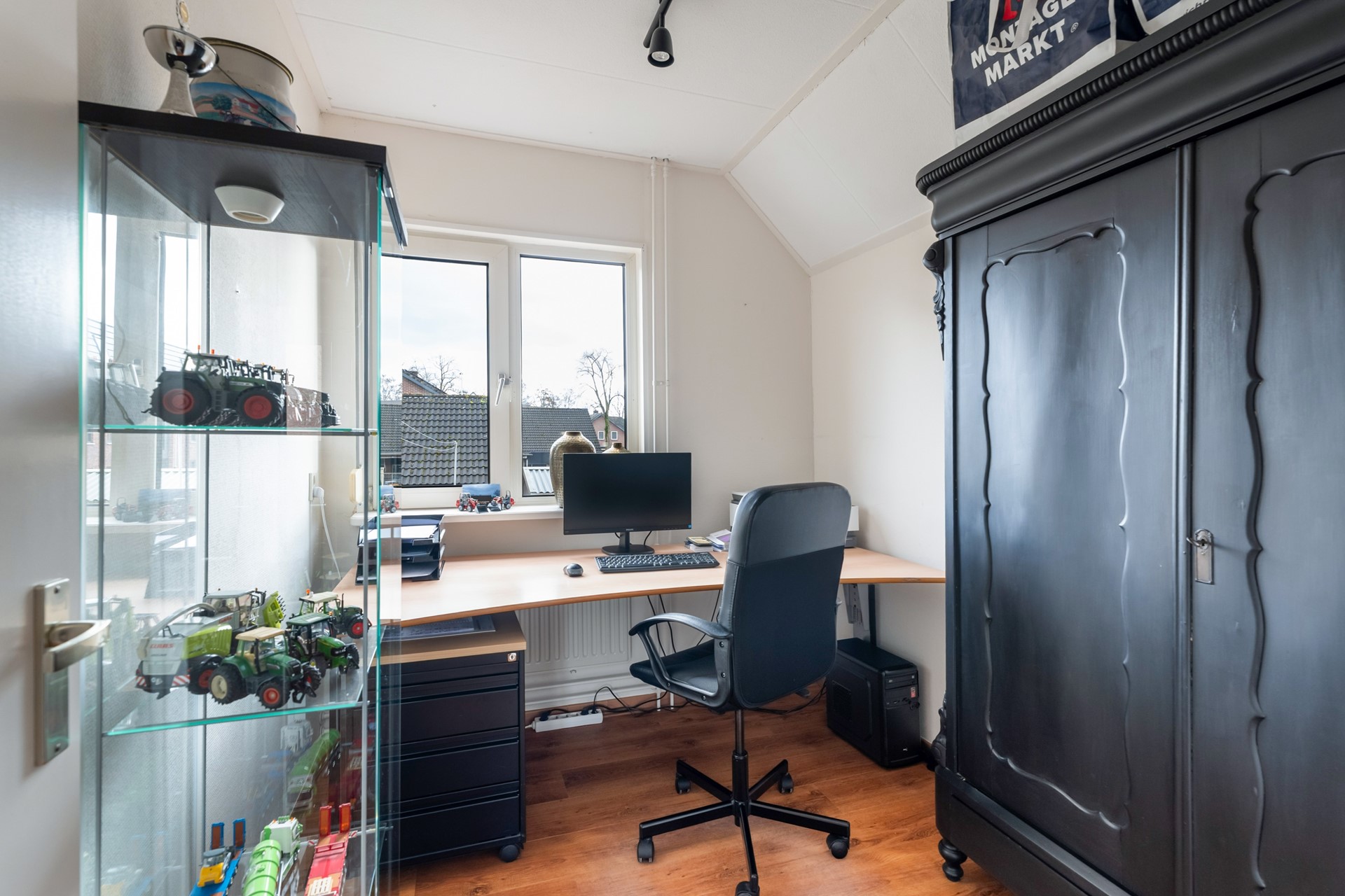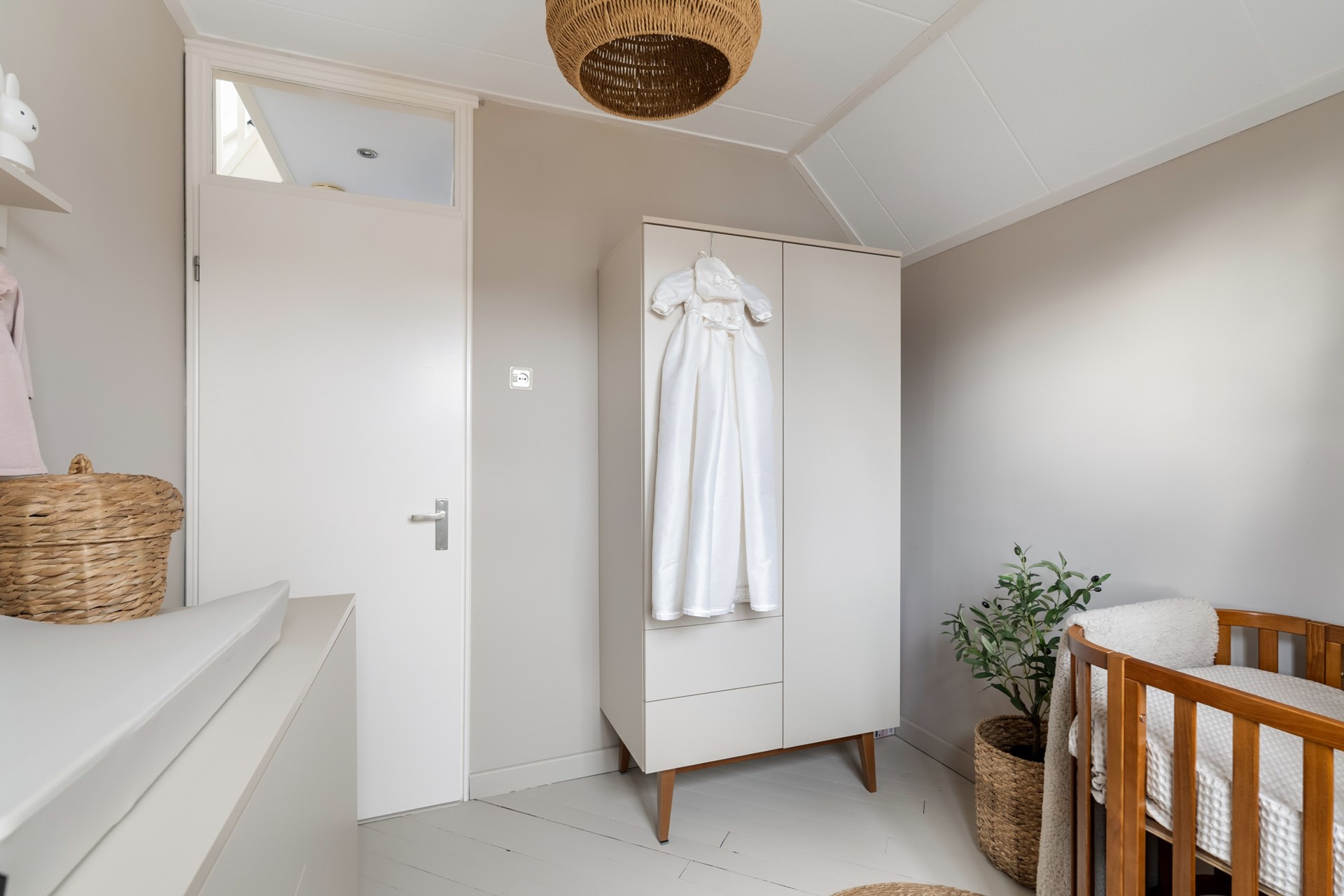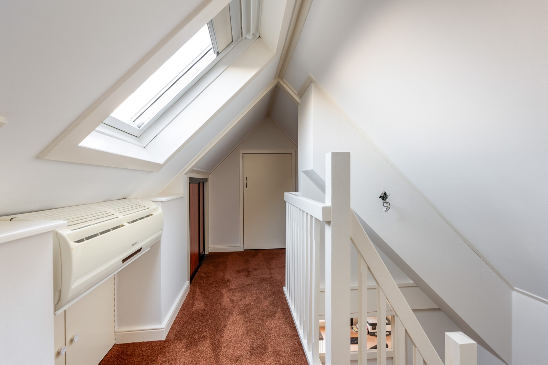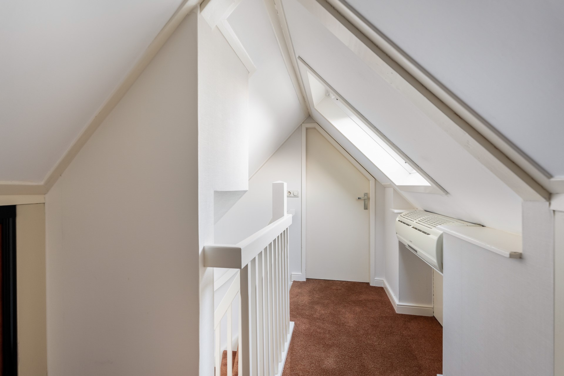 Via een vaste trap is de zolderverdieping te bereiken. Deze verdieping is opgedeeld in twee delen: aan de voorzijde bevindt zich een slaapkamer met Velux dakraam, die zich dankzij het natuurlijk lichtinval ook uitstekend leent als hobbyruimte of werkkamer. Aan de achterzijde is een praktische bergruimte gesitueerd. Dankzij de vaste kasten op de overloop biedt deze verdieping bovendien volop opbergmogelijkheden.