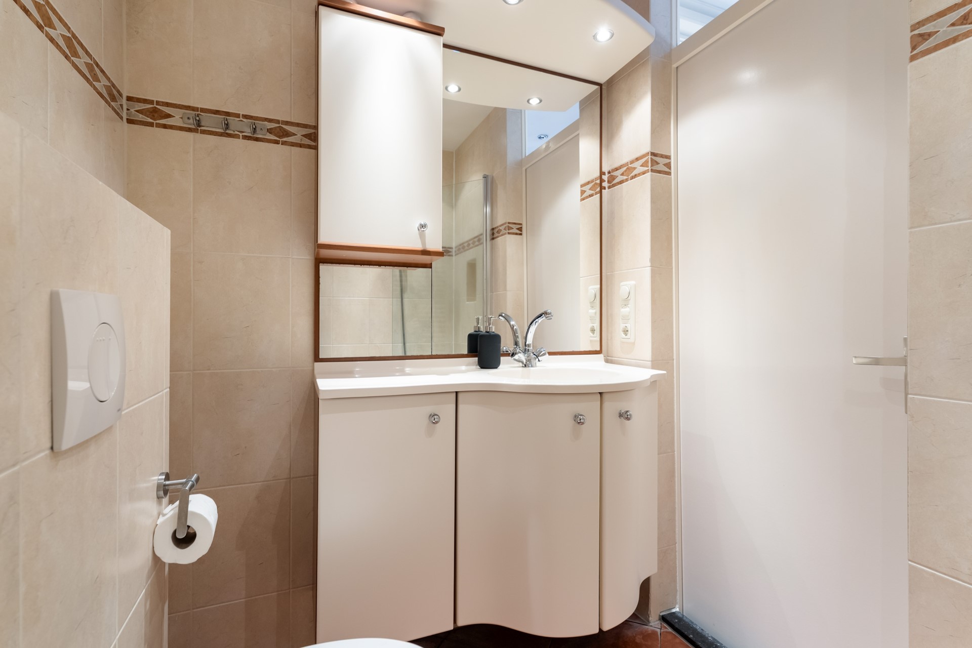 Via de overloop zijn drie slaapkamers en de badkamer te bereiken. De badkamer is voorzien van een ligbad met douche, toilet en een wastafelmeubel. De ouderslaapkamer is royaal van opzet en strekt zich uit over de volledige breedte van de woning. De overige twee slaapkamers bevinden zich aan de achterzijde van de woning. Op de overloop is de recent vernieuwde cv-installatie gesitueerd (Remeha, 2026).