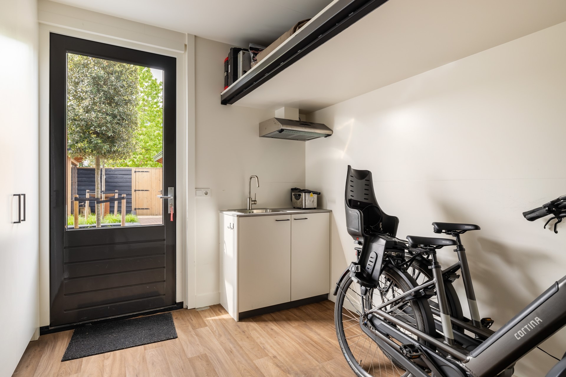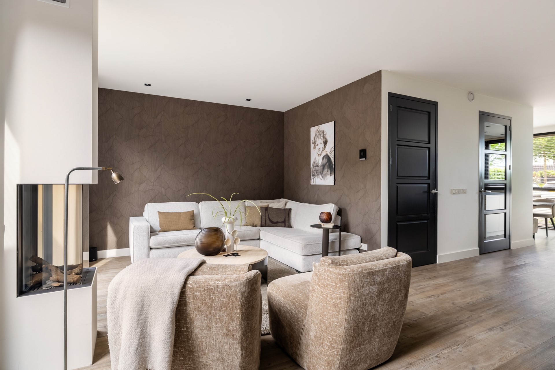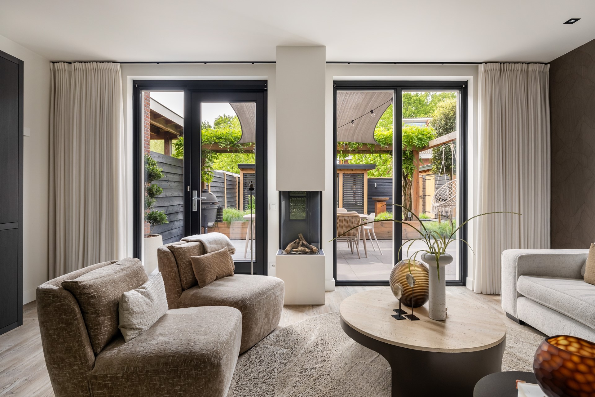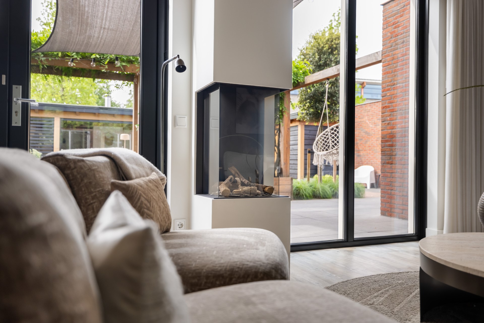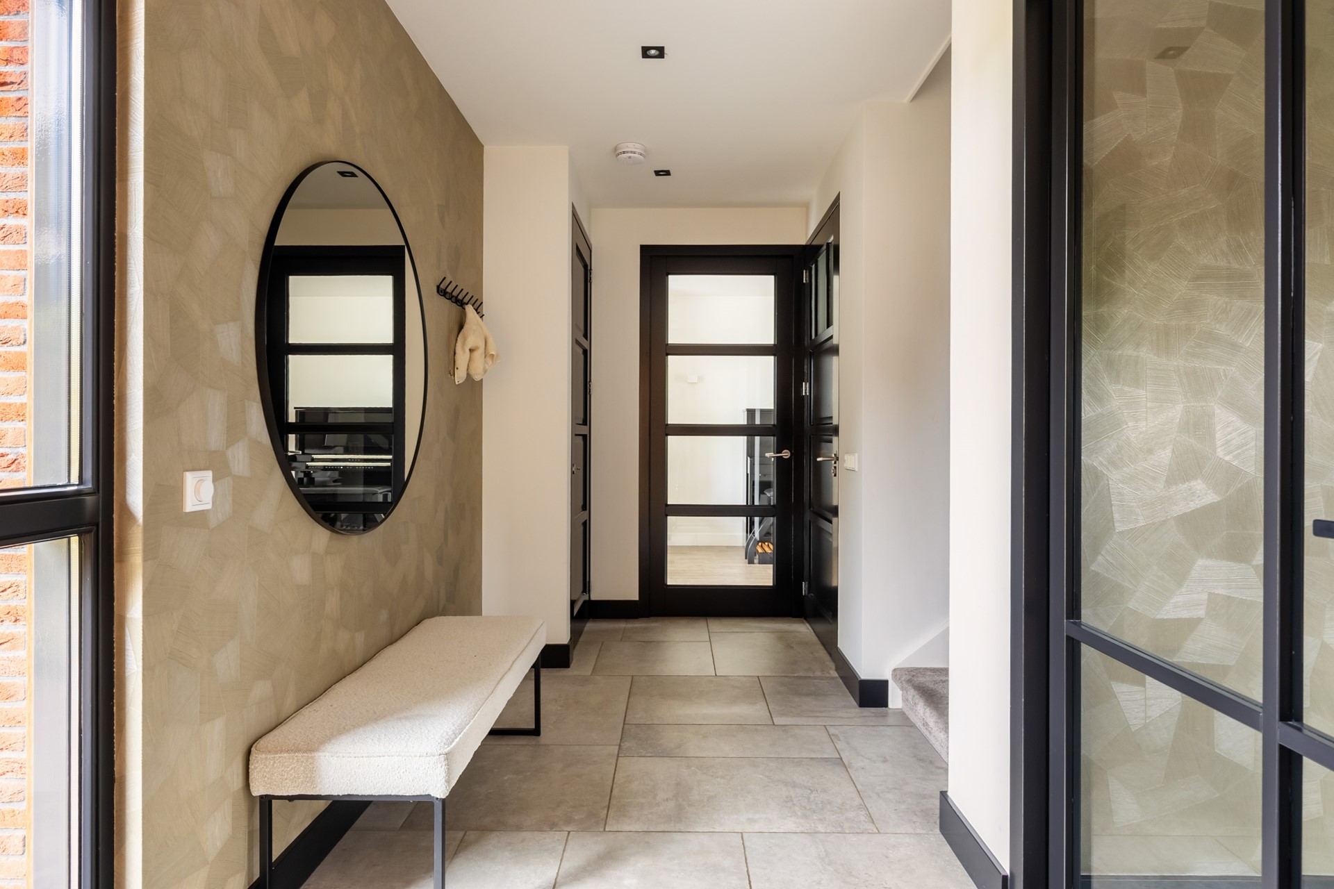 Via de overdekte entree bereik je de ruime hal, die je toegang geeft tot de werkkamer, trapopgang naar de eerste verdieping, toiletruimte met wandcloset en fontein, meterkast (glasvezelaansluiting aanwezig) en de woonkamer. Deze gezellige woonkamer beschikt over een sfeervolle gashaard, grote raampartijen en directe toegang tot de achtertuin. De luxe keuken (2025) is aan de voorzijde van de woning gesitueerd en uitgerust van een kook- en spoelschiereiland. Daarnaast is de keuken voorzien van een inductiekookplaat (Bora downdraft), wijnklimaatkast, Quooker, koelkast, vriezer, vaatwasser en combi-oven. De werkkamer, bereikbaar vanuit de hal, is strak afgewerkt en uitgerust van inbouwspots en een vaste kastenwand. Grenzend aan de werkkamer is de bijkeuken met een praktisch keukenblok voorzien van wasbak en afzuigkap. Hier is ook voldoende ruimte om je fiets(en) te bergen. Tot slot is de gehele begane grond strak afgewerkt, voorzien van een pvc-vloer en vloerverwarming.