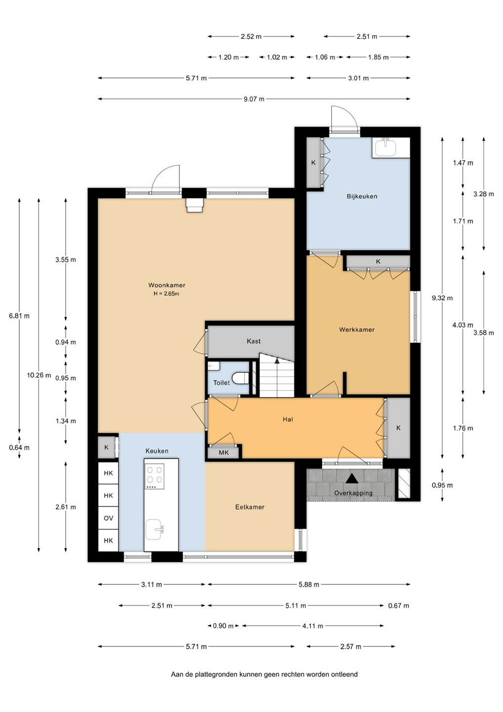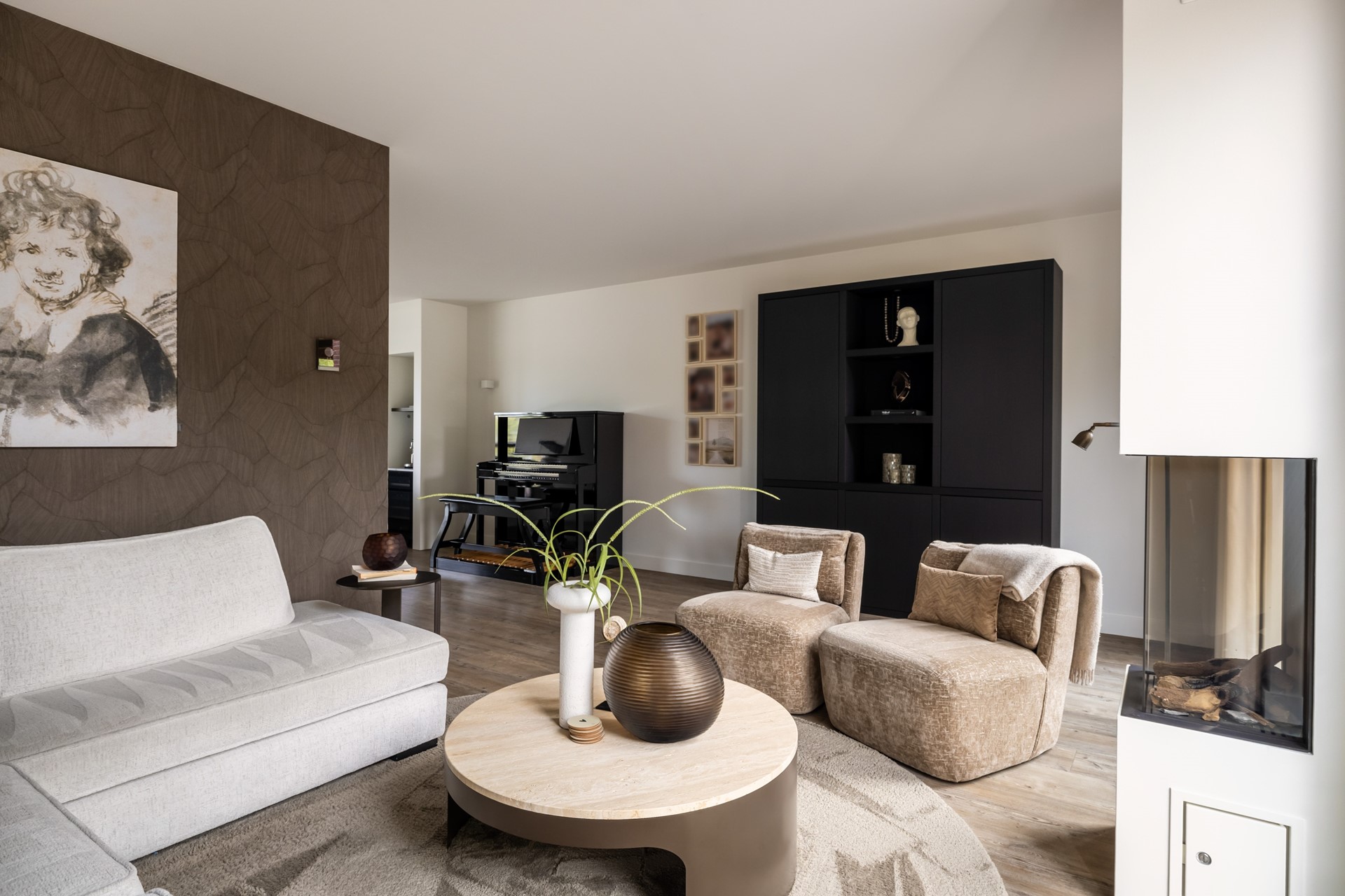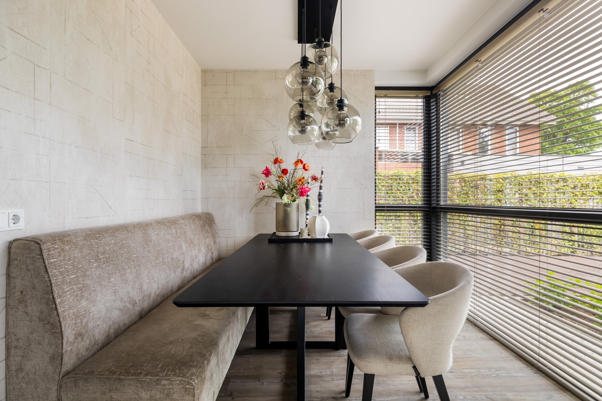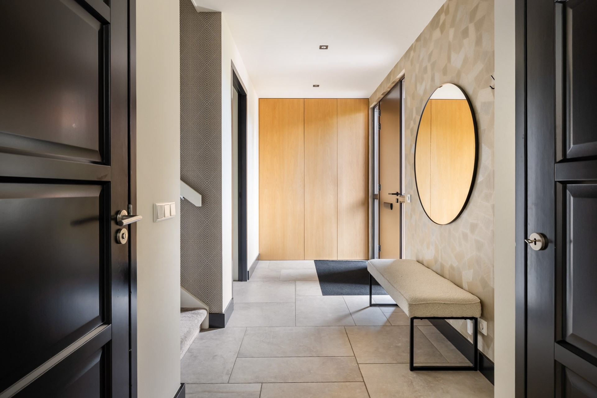 Via de overdekte entree bereik je de ruime hal, die je toegang geeft tot de werkkamer, trapopgang naar de eerste verdieping, toiletruimte met wandcloset en fontein, meterkast (glasvezelaansluiting aanwezig) en de woonkamer. Deze gezellige woonkamer beschikt over een sfeervolle gashaard, grote raampartijen en directe toegang tot de achtertuin. De luxe keuken (2025) is aan de voorzijde van de woning gesitueerd en uitgerust van een kook- en spoelschiereiland. Daarnaast is de keuken voorzien van een inductiekookplaat (Bora downdraft), wijnklimaatkast, Quooker, koelkast, vriezer, vaatwasser en combi-oven. De werkkamer, bereikbaar vanuit de hal, is strak afgewerkt en uitgerust van inbouwspots en een vaste kastenwand. Grenzend aan de werkkamer is de bijkeuken met een praktisch keukenblok voorzien van wasbak en afzuigkap. Hier is ook voldoende ruimte om je fiets(en) te bergen. Tot slot is de gehele begane grond strak afgewerkt, voorzien van een pvc-vloer en vloerverwarming.