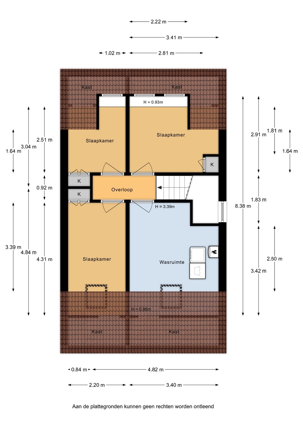 Via een vaste trap kom je op de overloop van de tweede verdieping, waar ook airconditioning aanwezig is. Op deze verdieping vind je nog drie slaapkamers en een handige wasruimte. In de wasruimte zitten de aansluitingen voor de wasmachine en droger, en hier staat ook de cv-installatie (Nefit, 2014). De slaapkamer aan de voorzijde heeft een dakraam, terwijl de twee slaapkamers aan de achterkant beschikken over een ruime kunststof dakkapel, wat zorgt voor veel extra licht en ruimte. Alle drie de slaapkamers zijn voorzien van een praktische kastenwand, ideaal voor extra opbergruimte.