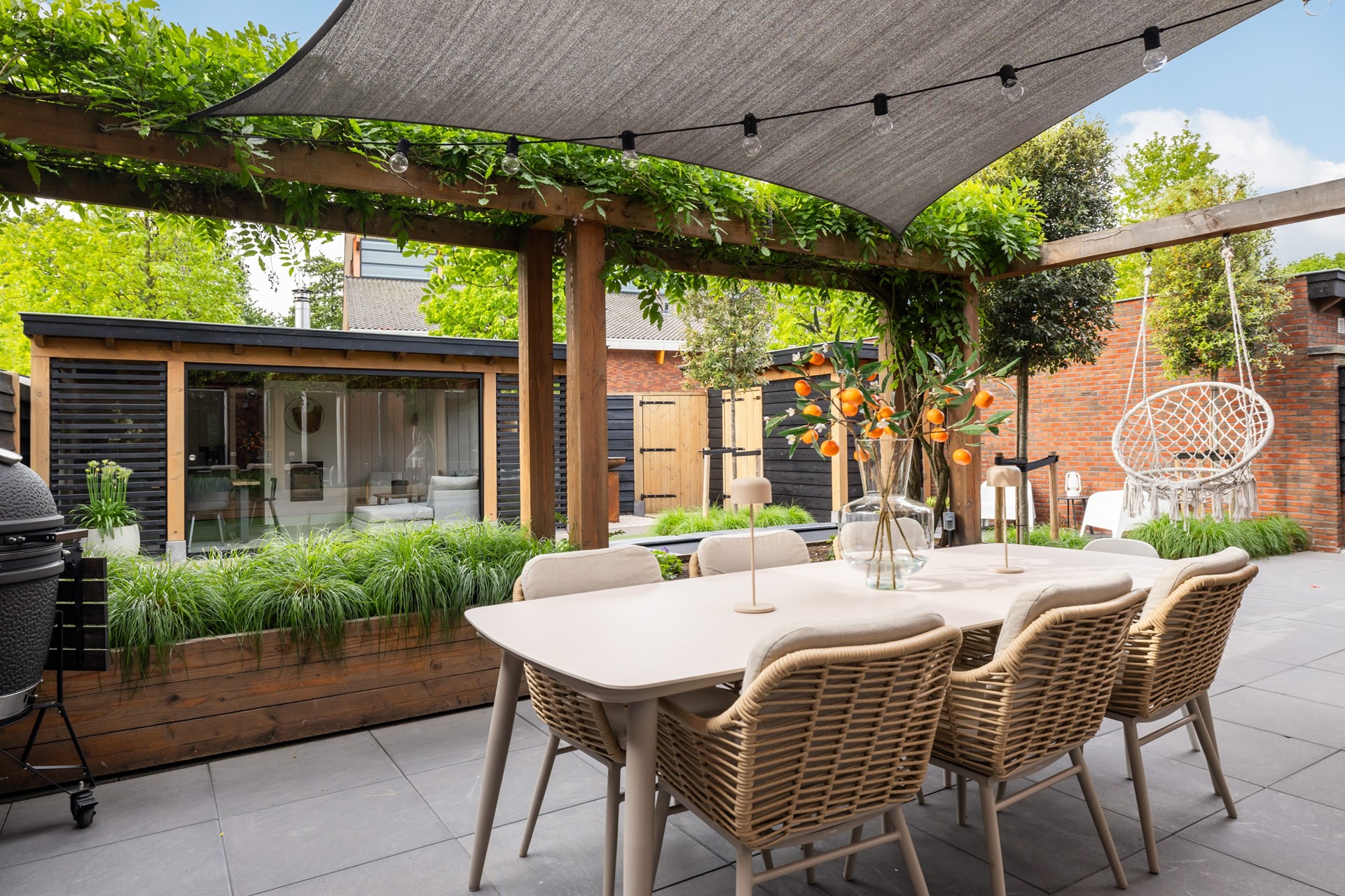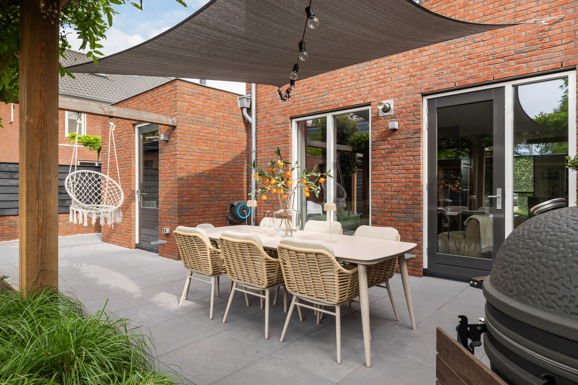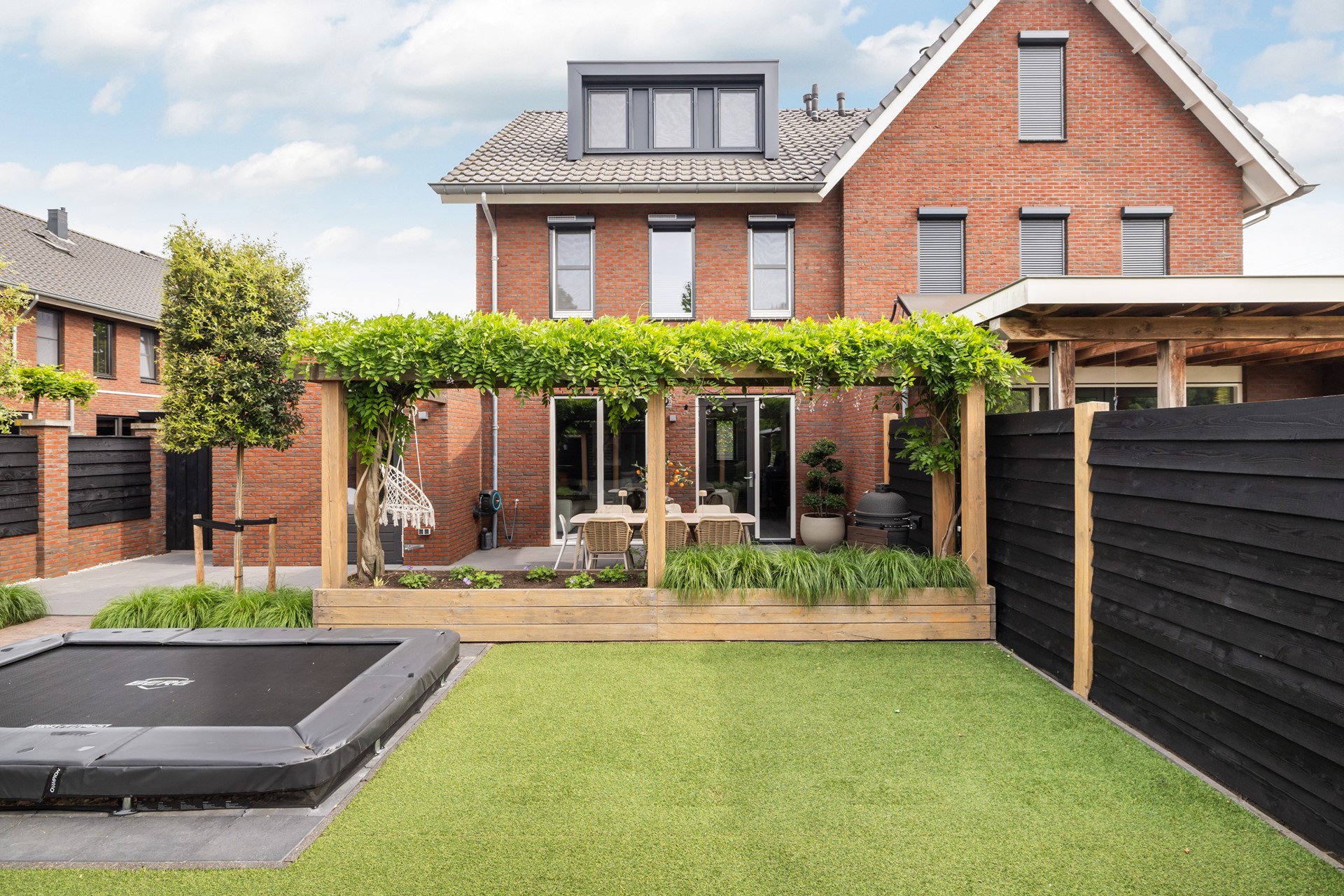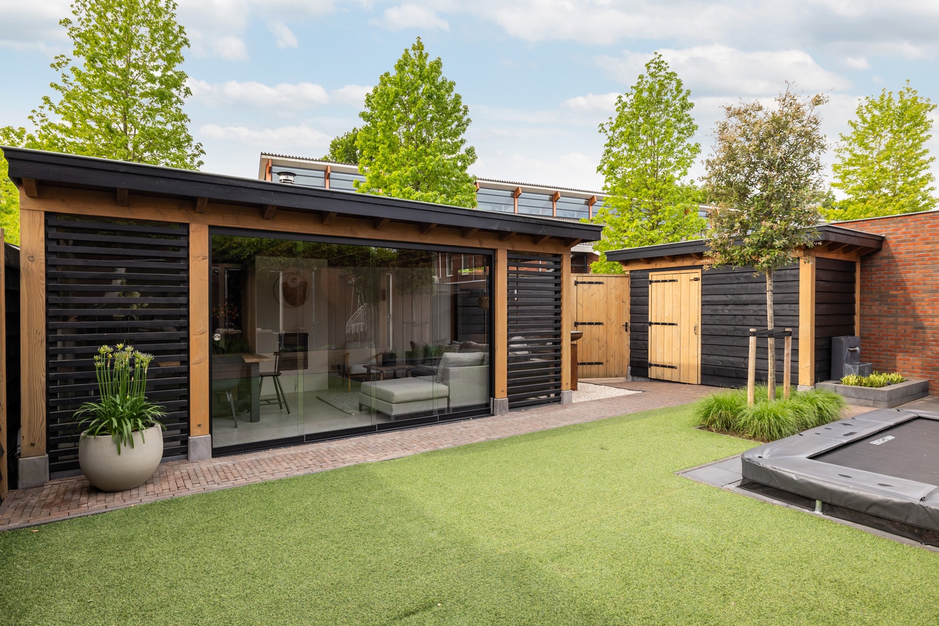 De prachtige achtertuin voelt als een verlengstuk van je woning en is een heerlijke plek om het hele jaar door van te genieten. De tuin is gelegen op het zuiden en fraai aangelegd met groene borders, kunstgras, een bestraat terras en sierbestrating. Een echte eyecatcher is de gezellige veranda met glazen pui. Hier vind je een keukenblok met wasbak en een sfeervolle houtkachel – de perfecte plek om te ontspannen. Naast de veranda is er een houten berging, ideaal voor het opbergen van tuingereedschap en andere spullen. En tot slot kun je je auto gewoon parkeren op eigen oprit of in de kindvriendelijke buurt.