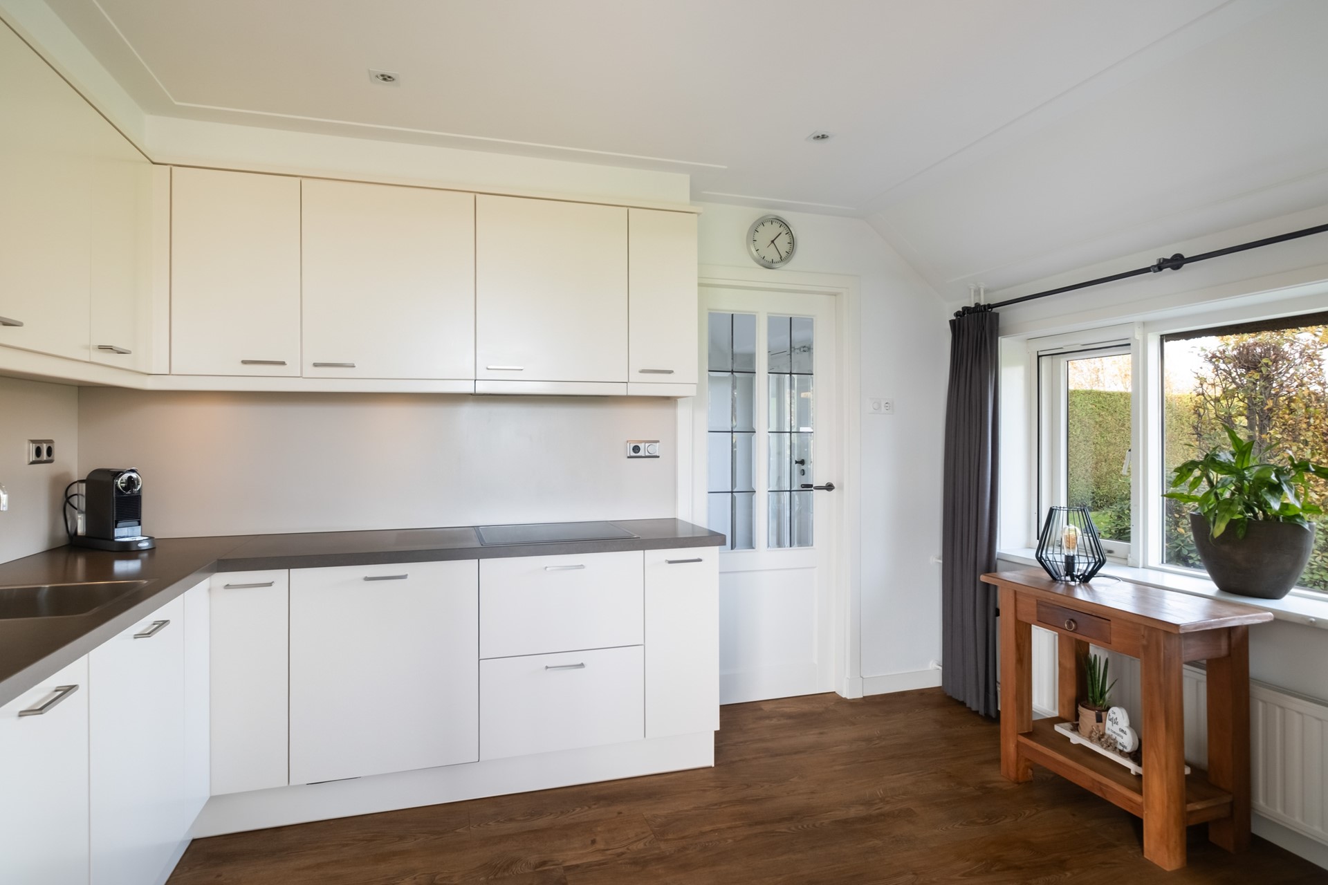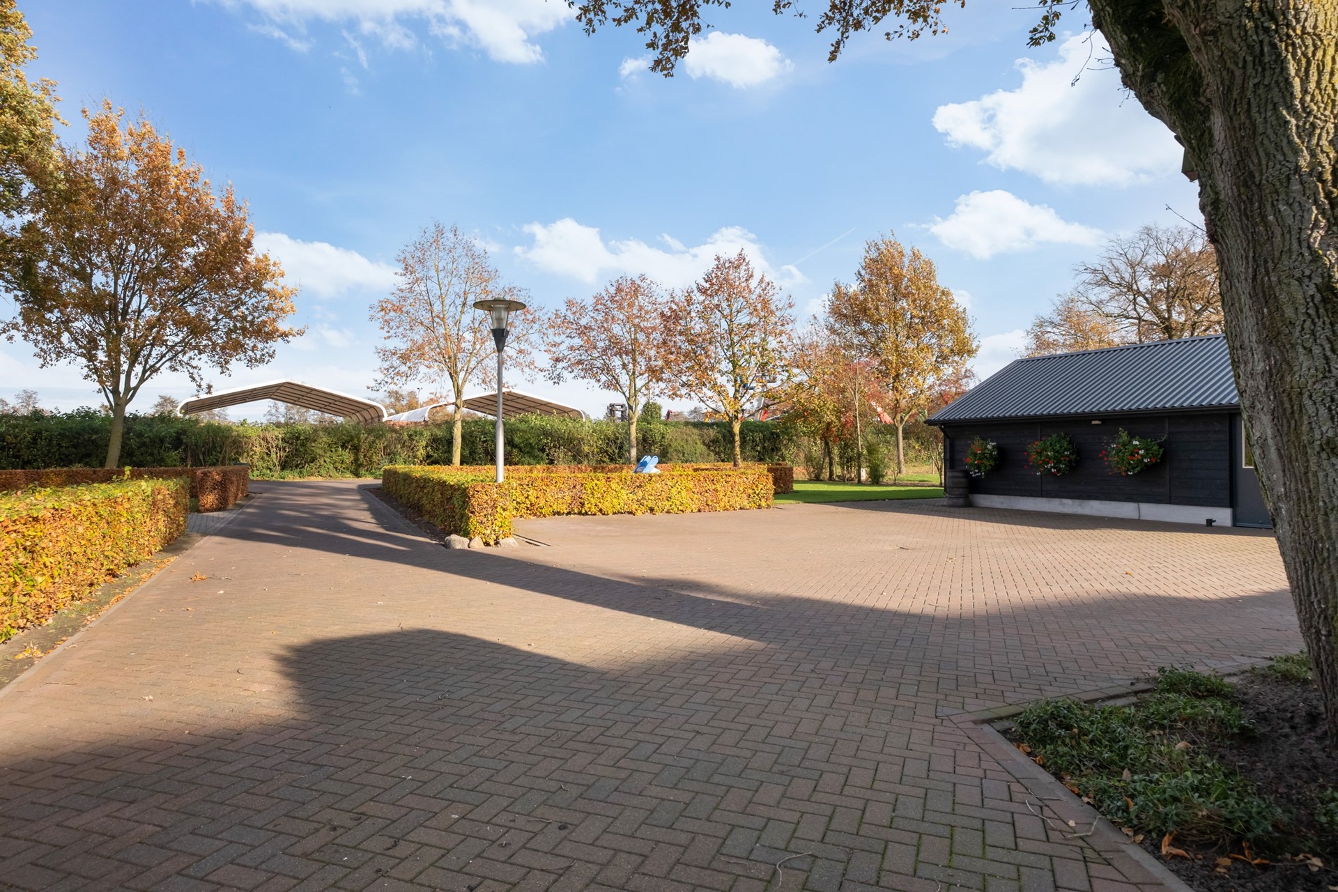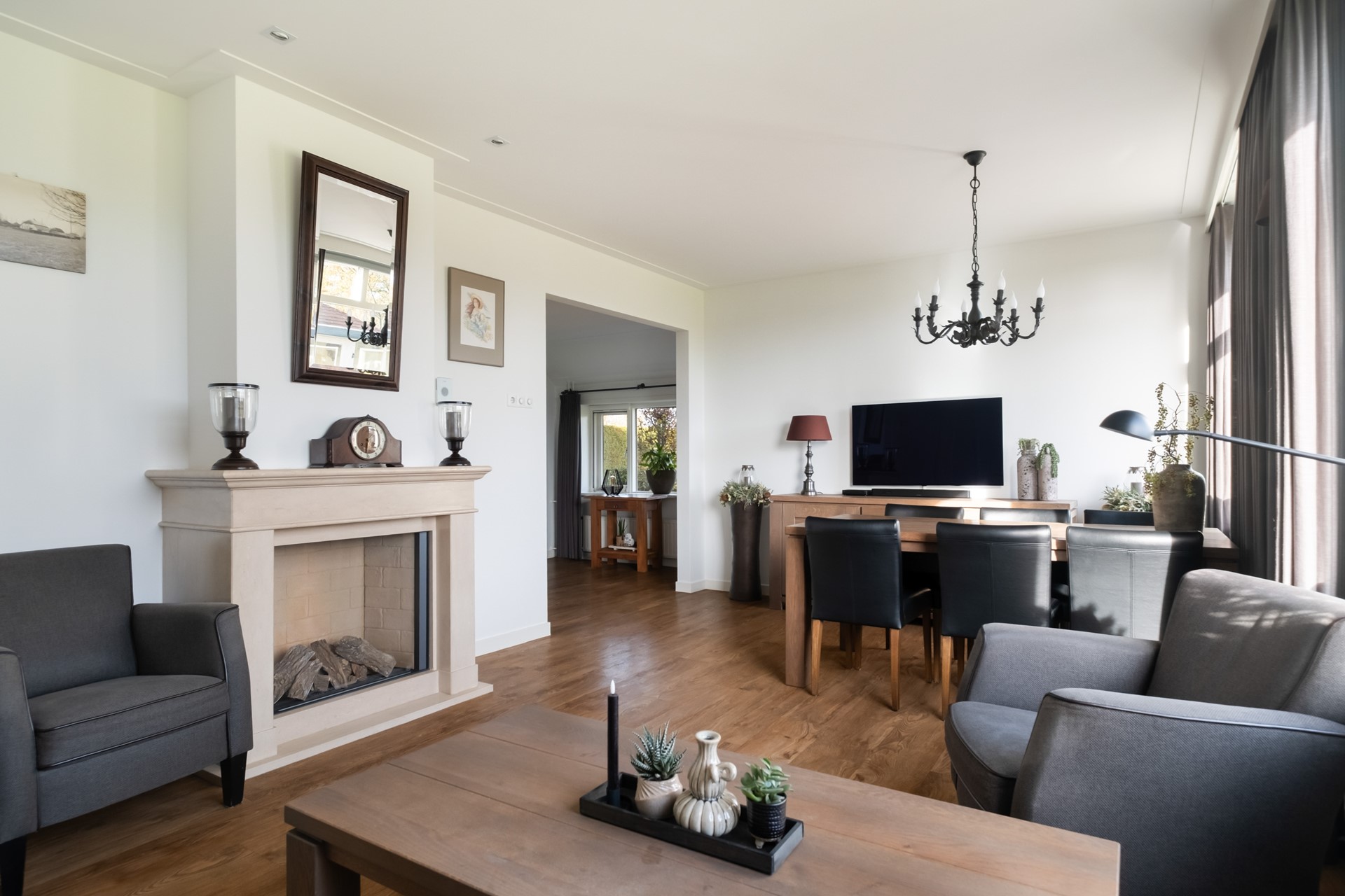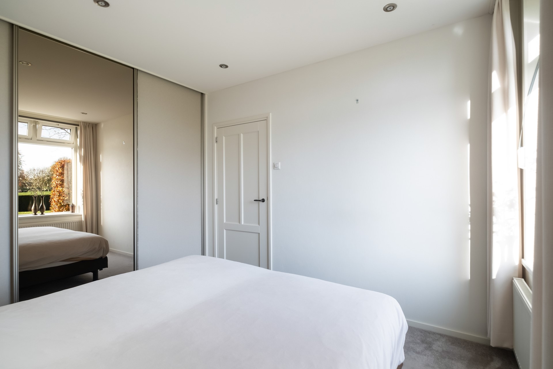 De royale tuin en de ruime opzet rondom de woning zijn zonder twijfel grote pluspunten van dit object. Dankzij de open ligging geniet je hier van veel privacy en een vrij uitzicht. De tuin is fraai aangelegd met onder andere een bestraat terras, tuinhuis, een ruim gazon en diverse groene borders. De royale garage biedt volop ruimte voor opslag of hobby’s en is dankzij de elektrische deur ook ideaal om de auto binnen te parkeren. Bovendien is er op het eigen terrein meer dan voldoende parkeergelegenheid, zodat je je hierover geen zorgen hoeft te maken.