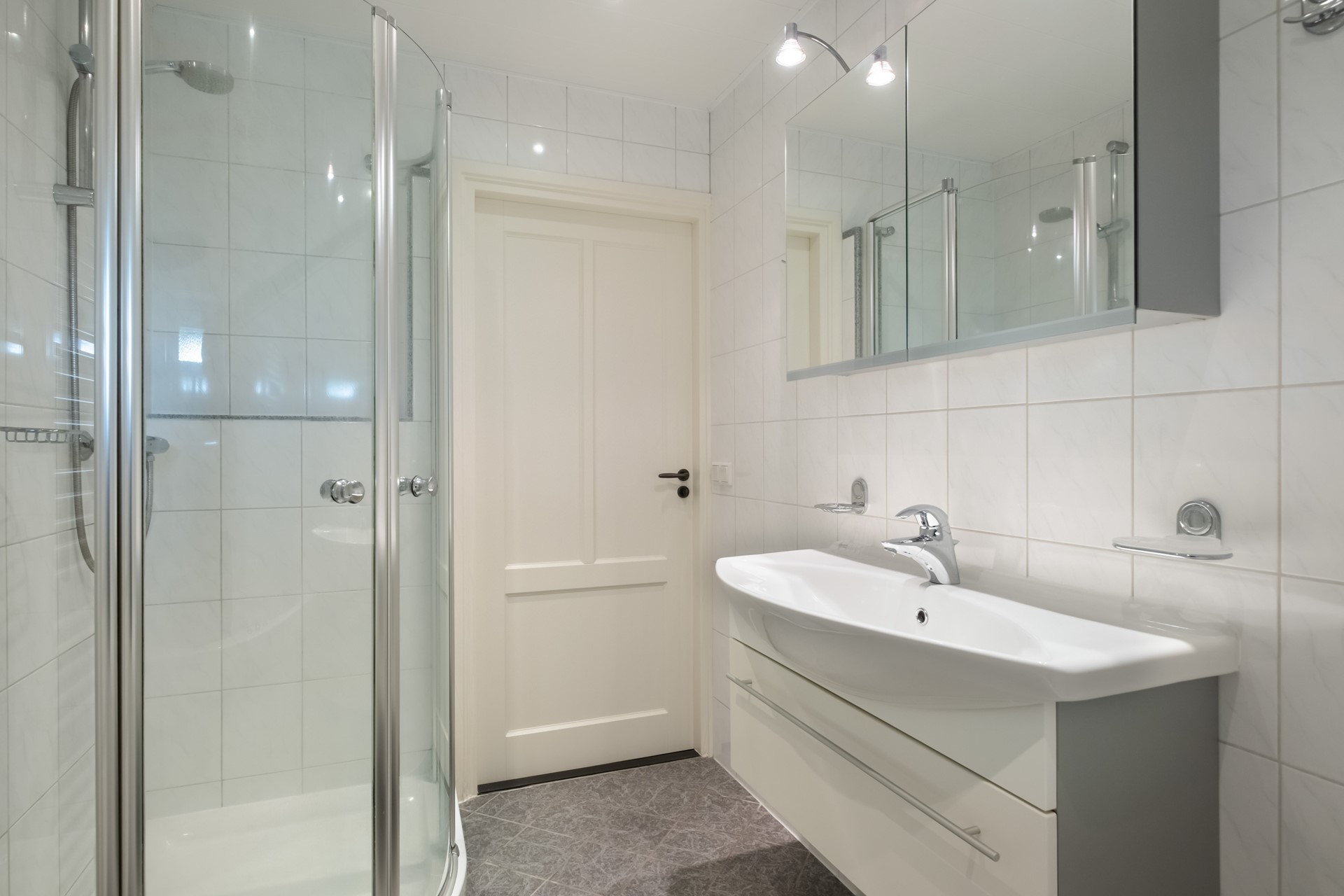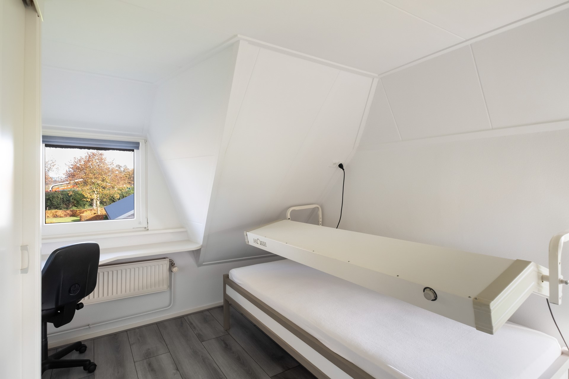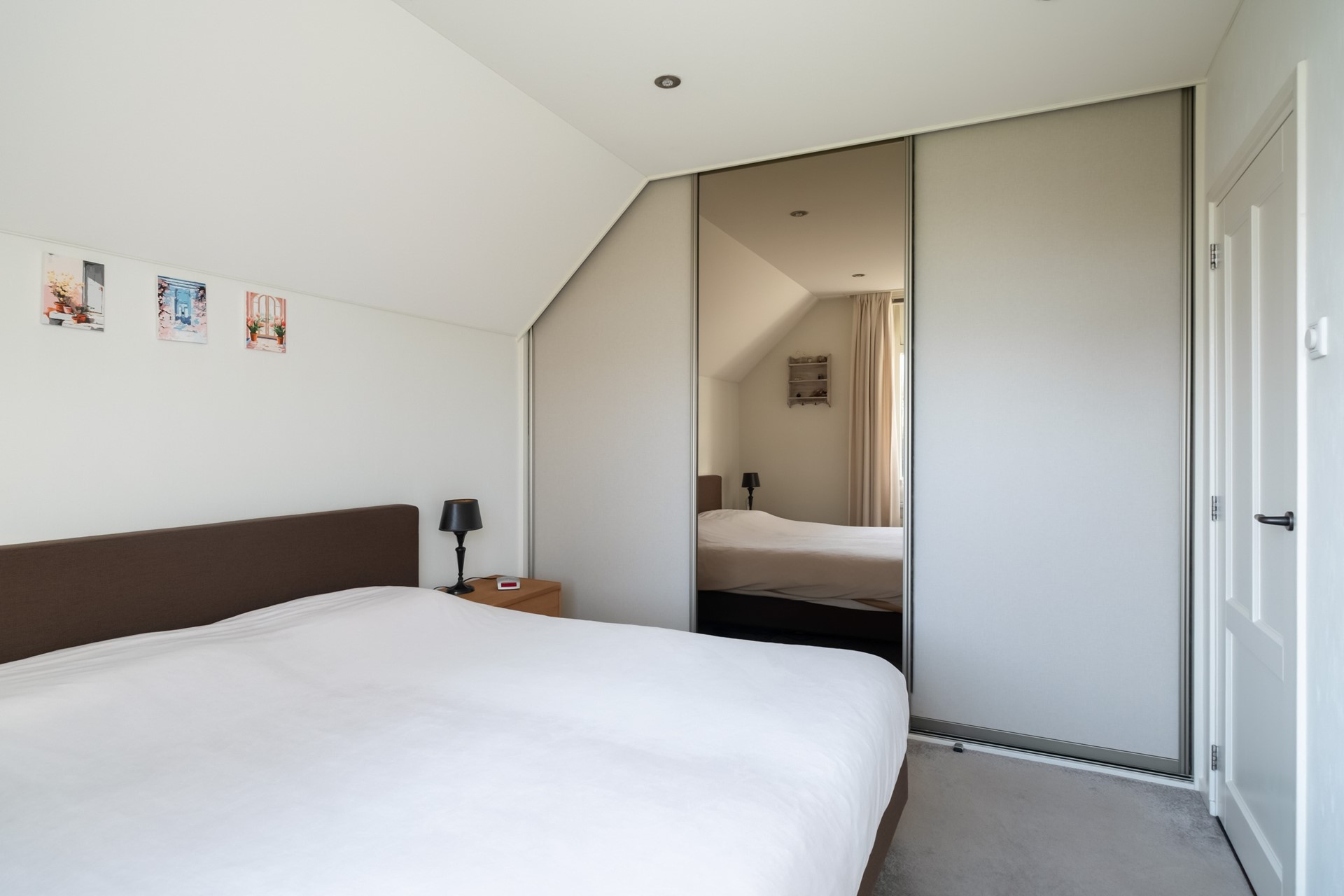 Via de trapopgang bereik je de overloop op de eerste verdieping, voorzien van vaste kasten. Vanuit hier zijn drie keurig afgewerkte slaapkamers toegankelijk. Alle slaapkamers beschikken over vaste kasten en een laminaatvloer. Twee slaapkamers bevinden zich aan de voorzijde van de woning, waarvan één is uitgerust met een dakkapel. De derde slaapkamer ligt aan de achterzijde en is voorzien van een Velux-dakraam.