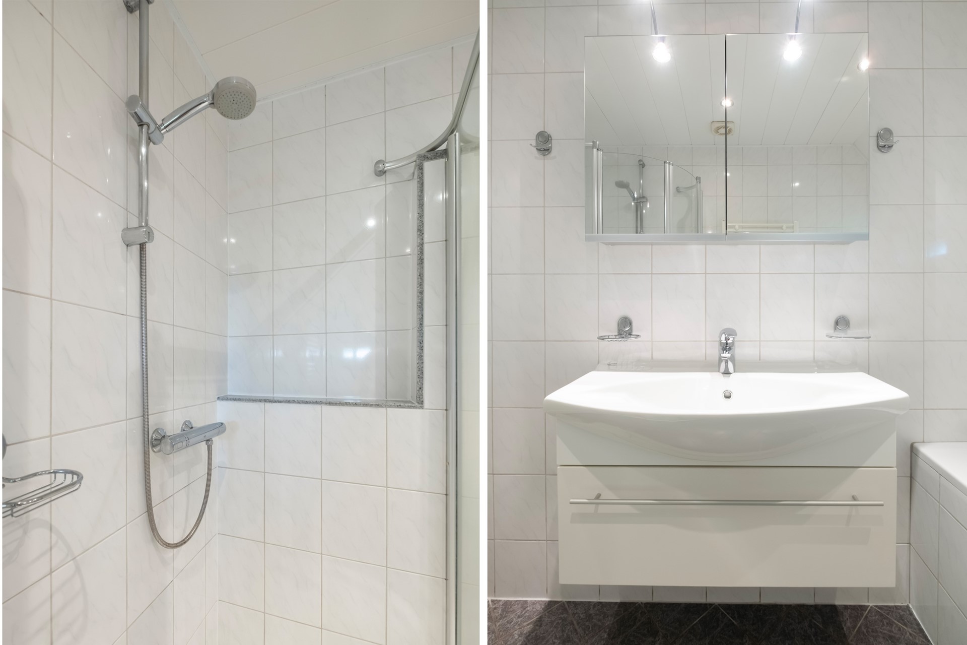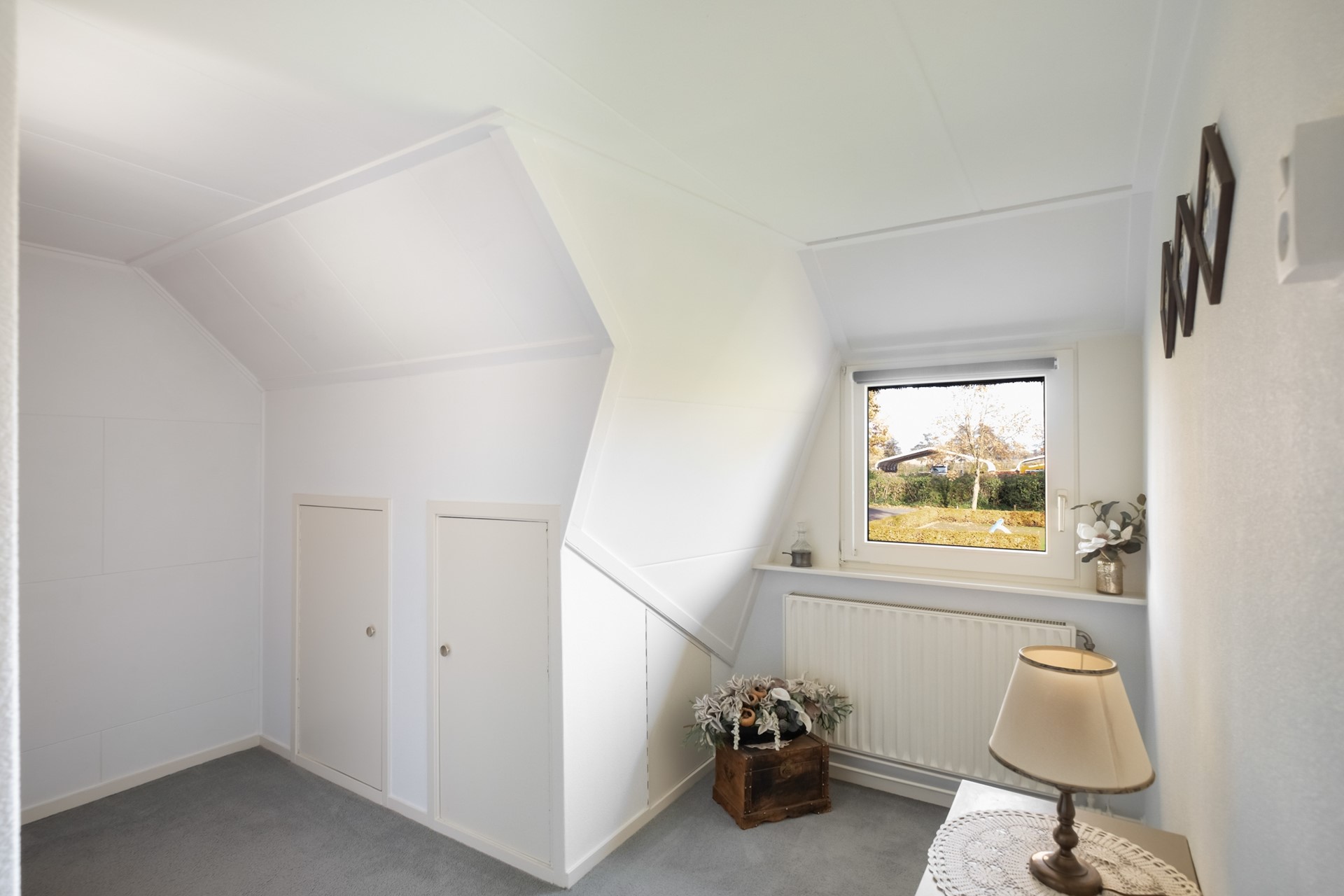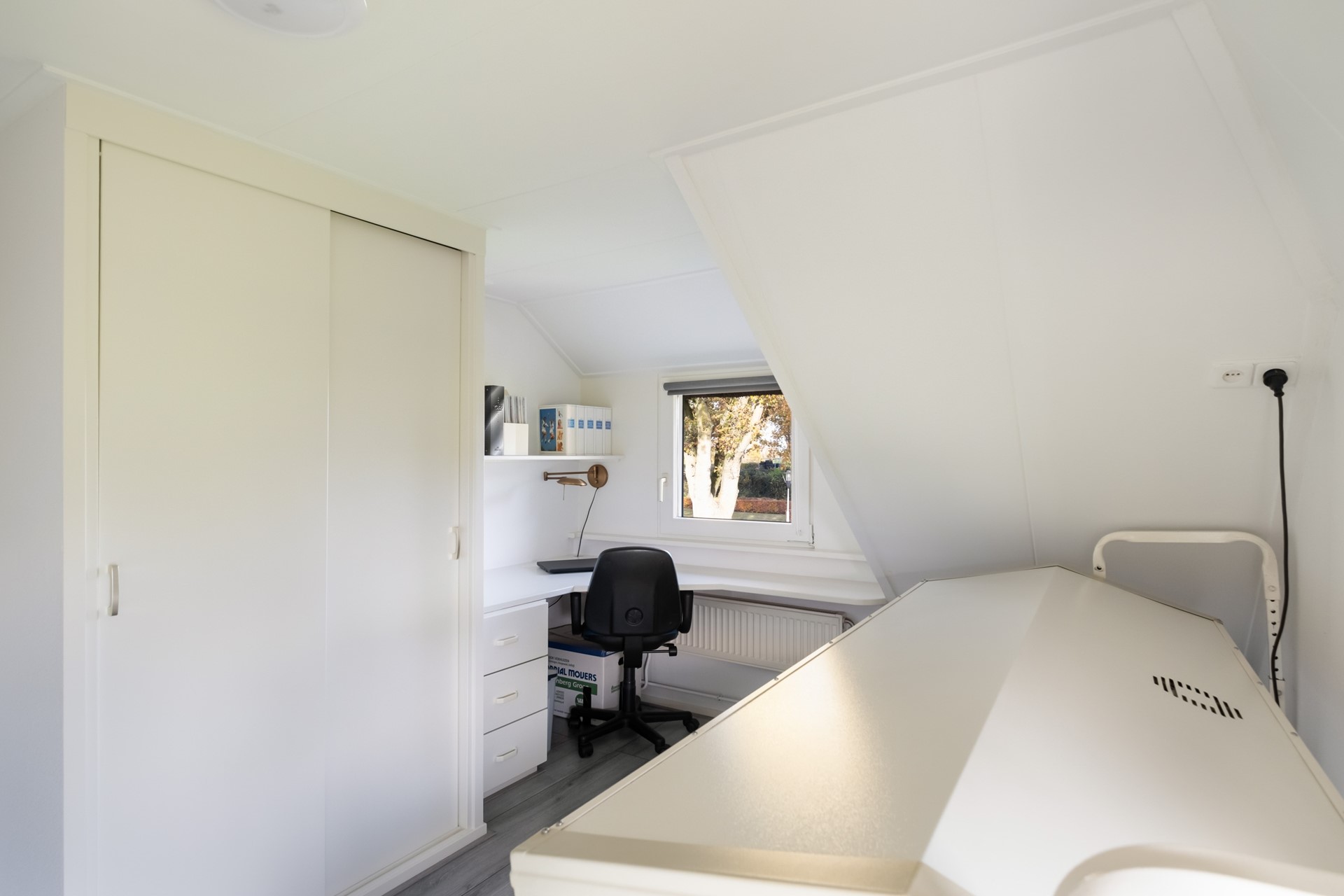 Via de trapopgang bereik je de overloop op de eerste verdieping, voorzien van vaste kasten. Vanuit hier zijn drie keurig afgewerkte slaapkamers toegankelijk. Alle slaapkamers beschikken over vaste kasten en een laminaatvloer. Twee slaapkamers bevinden zich aan de voorzijde van de woning, waarvan één is uitgerust met een dakkapel. De derde slaapkamer ligt aan de achterzijde en is voorzien van een Velux-dakraam.
