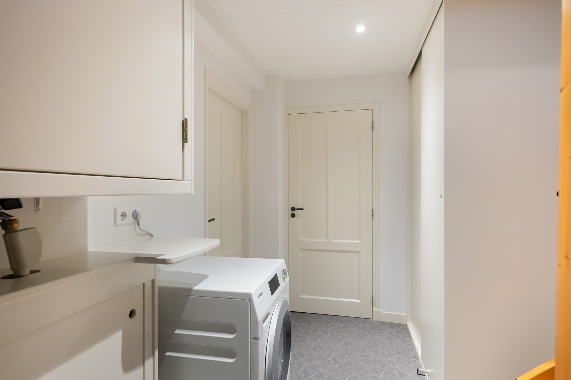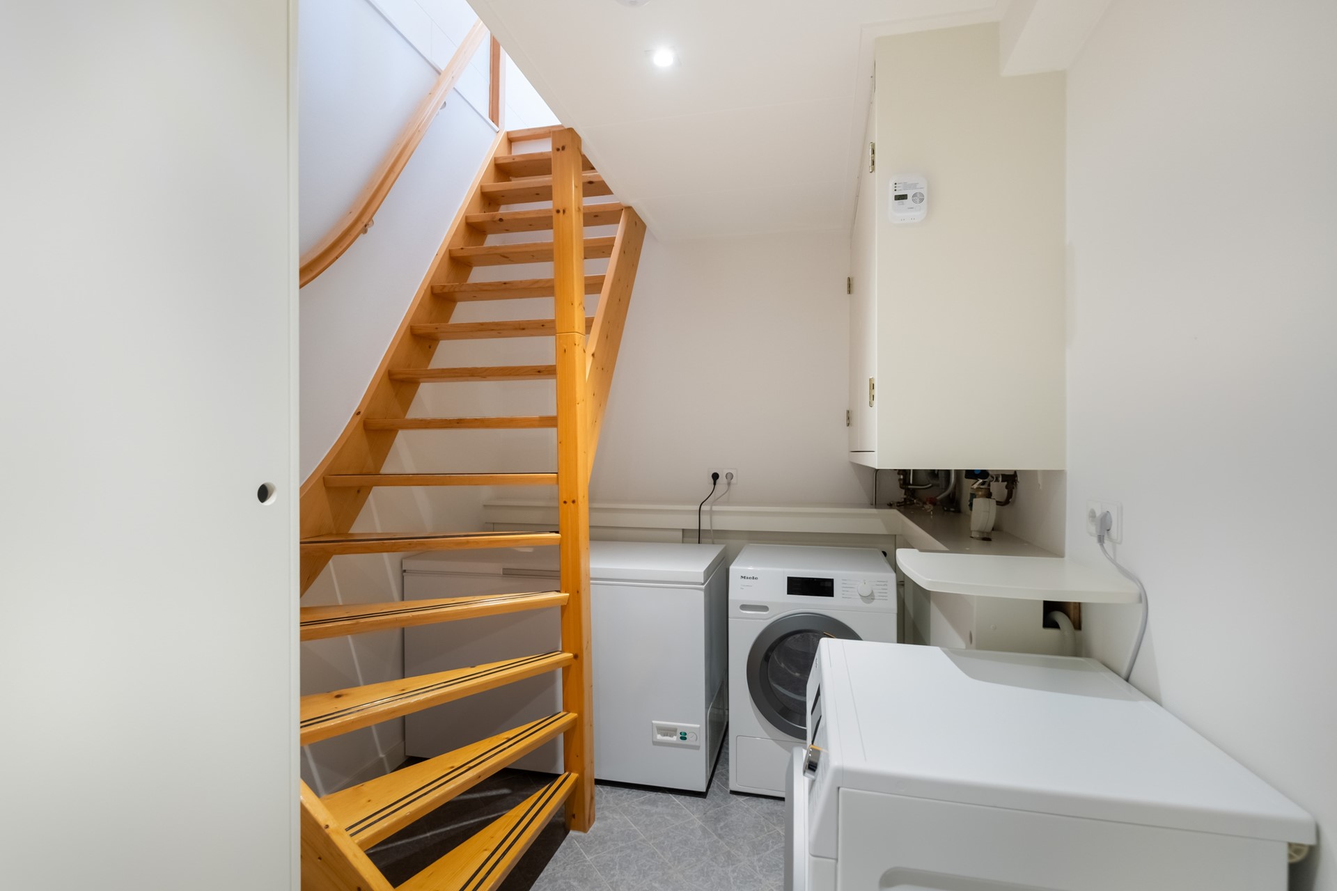 Via de entree kom je in de hal, die toegang geeft tot een bergkast, de toiletruimte met wandcloset en fontein, en de keuken. De halfopen keuken in hoekopstelling heeft een neutrale kleurstelling en is uitgerust met een inductiekookplaat, afzuigkap, Quooker, afwasmachine, koelkast en een oven (2025). Daarnaast beschikt de keuken over een diepe opbergkast/meterkast. De sfeervolle woon- en eetkamer vormt een knusse ruimte met een gezellige gashaard. Vanuit de woonkamer bereik je de slaapkamer op de begane grond en een tweede hal. De slaapkamer is voorzien van een praktische vaste kastenwand. In de hal bevinden zich de aansluitingen voor de wasmachine en droger, evenals de cv-installatie (Nefit, 2019). Vanuit deze hal zijn ook de badkamer en de trapopgang naar de eerste verdieping toegankelijk. De geheel betegelde badkamer met elektrische vloerverwarming is uitgerust met een douchecabine, wastafelmeubel en whirlpool. Tot slot is de volledige begane grond voorzien van vloerverwarming, een glad plafond en inbouwspots.