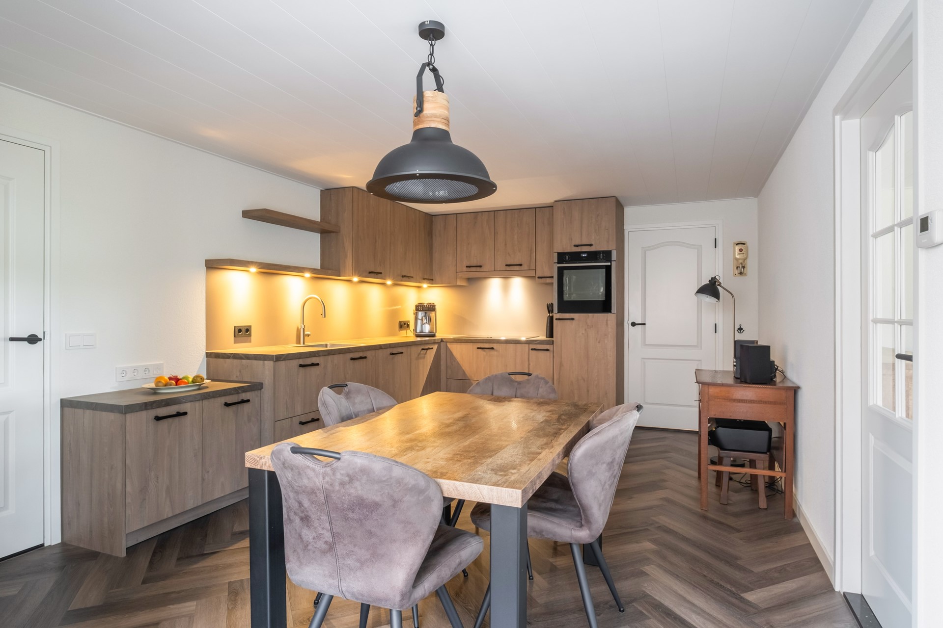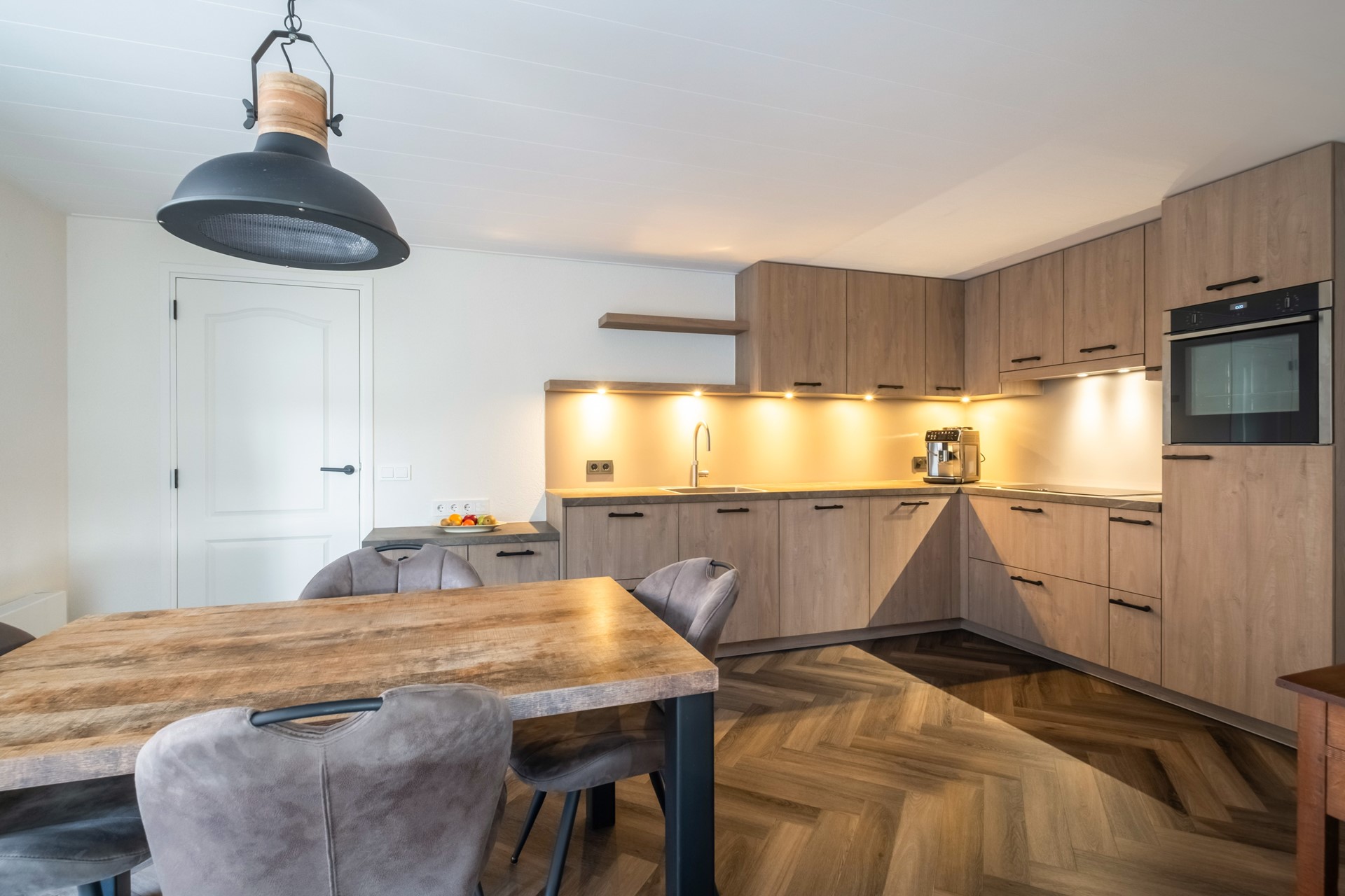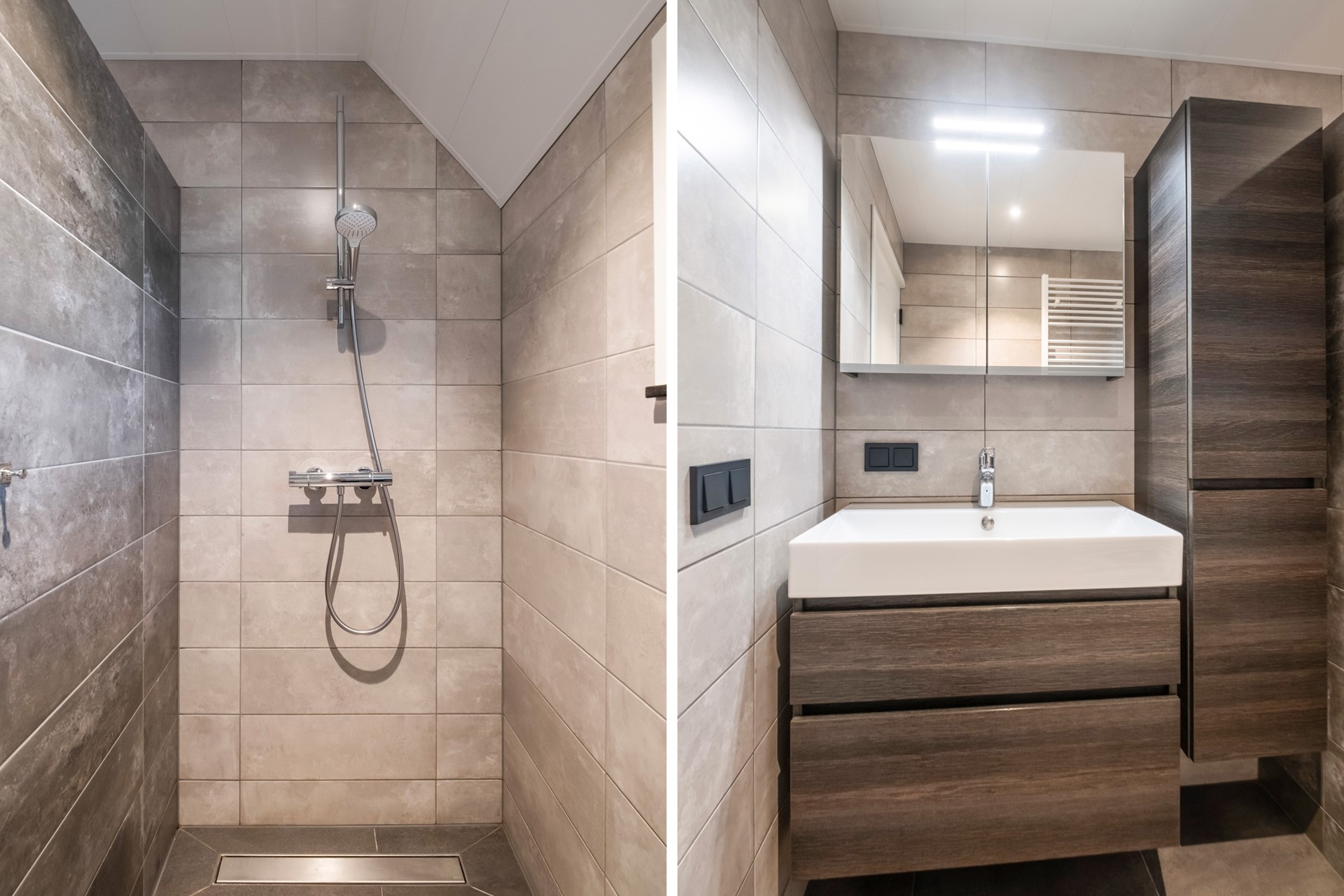 Via de entree kom je in de hal met meerdere inbouwkasten, trapopgang naar de verdieping en toegang tot de woonkeuken. Deze ruime woonkeuken met erker biedt voldoende ruimte voor een gezellige eettafel. De hoekopstelling beschikt over diverse inbouwapparatuur, te weten: een kookplaat, afzuigkap, oven, koelkast, vaatwasser en een Quooker heetwaterkraan. Vervolgens is de woonkamer en de bijkeuken te bereiken. In de bijkeuken vind je de aansluitingen voor een wasmachine en droger. Vanuit hier is zowel de toiletruimte als de badkamer met wastafelmeubel en inloopdouche bereikbaar. In 2020 is de begane grond volledig gemoderniseerd en dat is terug te zien aan de gladde wandafwerking, moderne keuken en badkamer en een visgraat pvc-vloer.